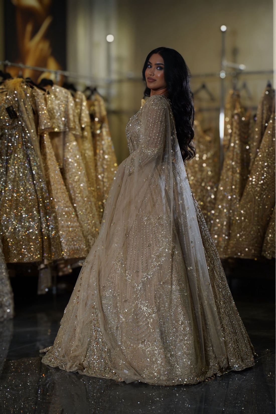 Champagne Gold Heavy Crystal & Zardosi Bridal Lehenga