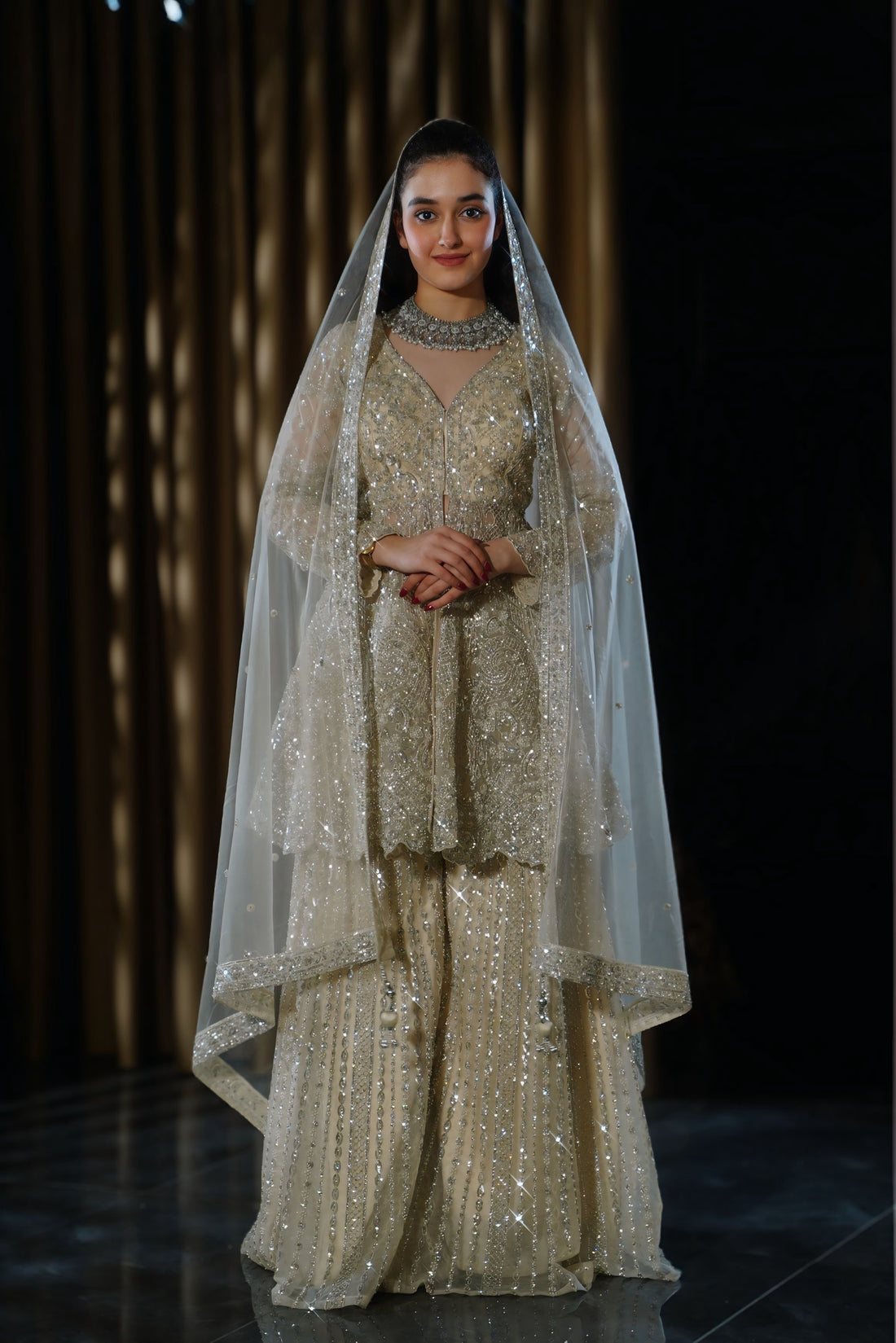Ivory Gold Embellished Bridal Sharara Set