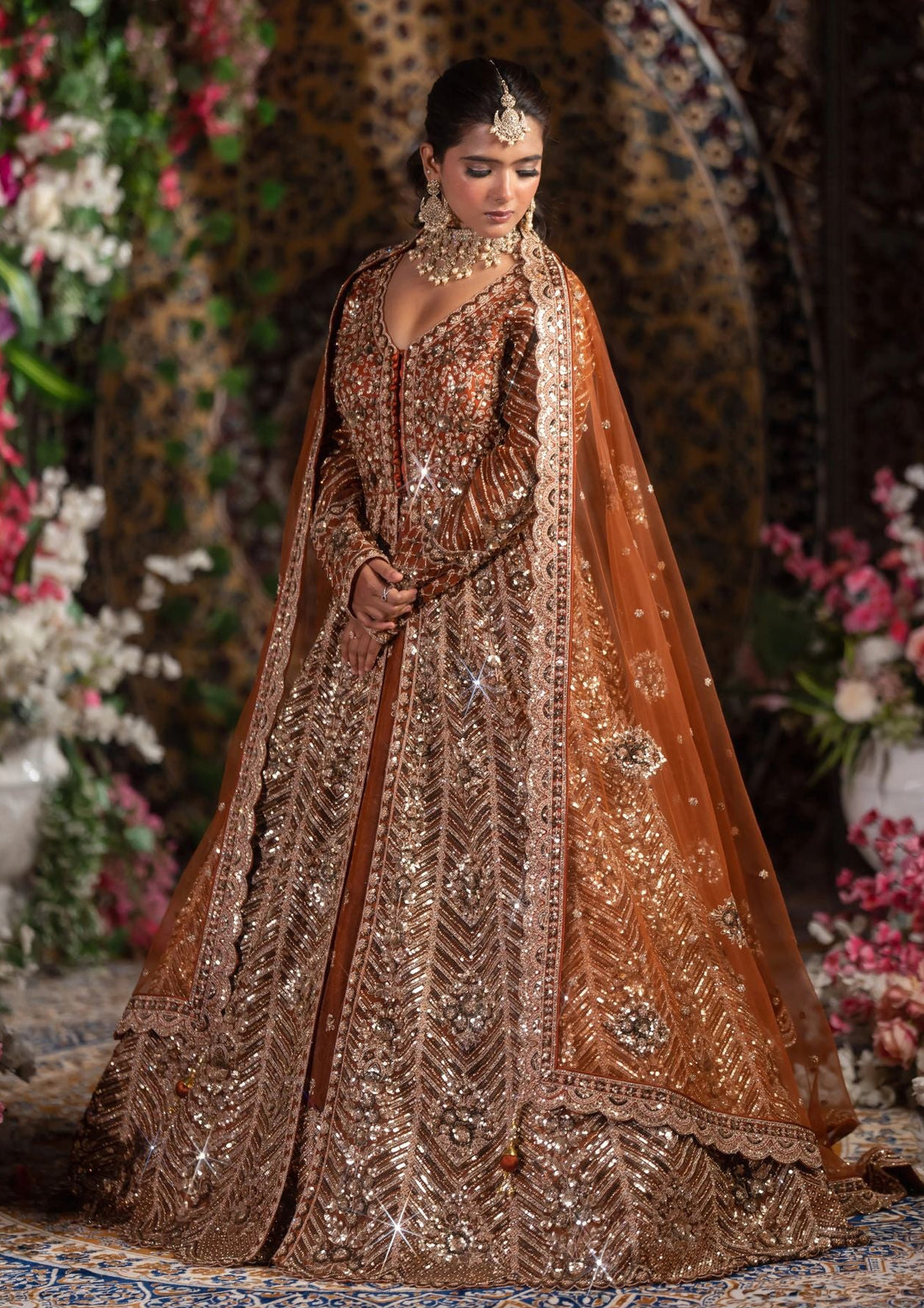 Burnt Orange Gold Embroidered Bridal Sharara Set