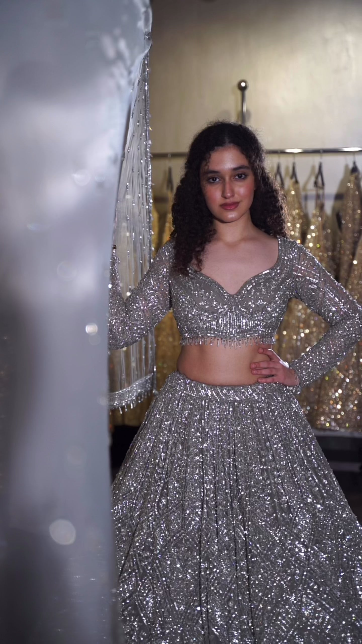 Pristine Silver & Ivory Linear Sequin Embroidered Bridal Lehenga