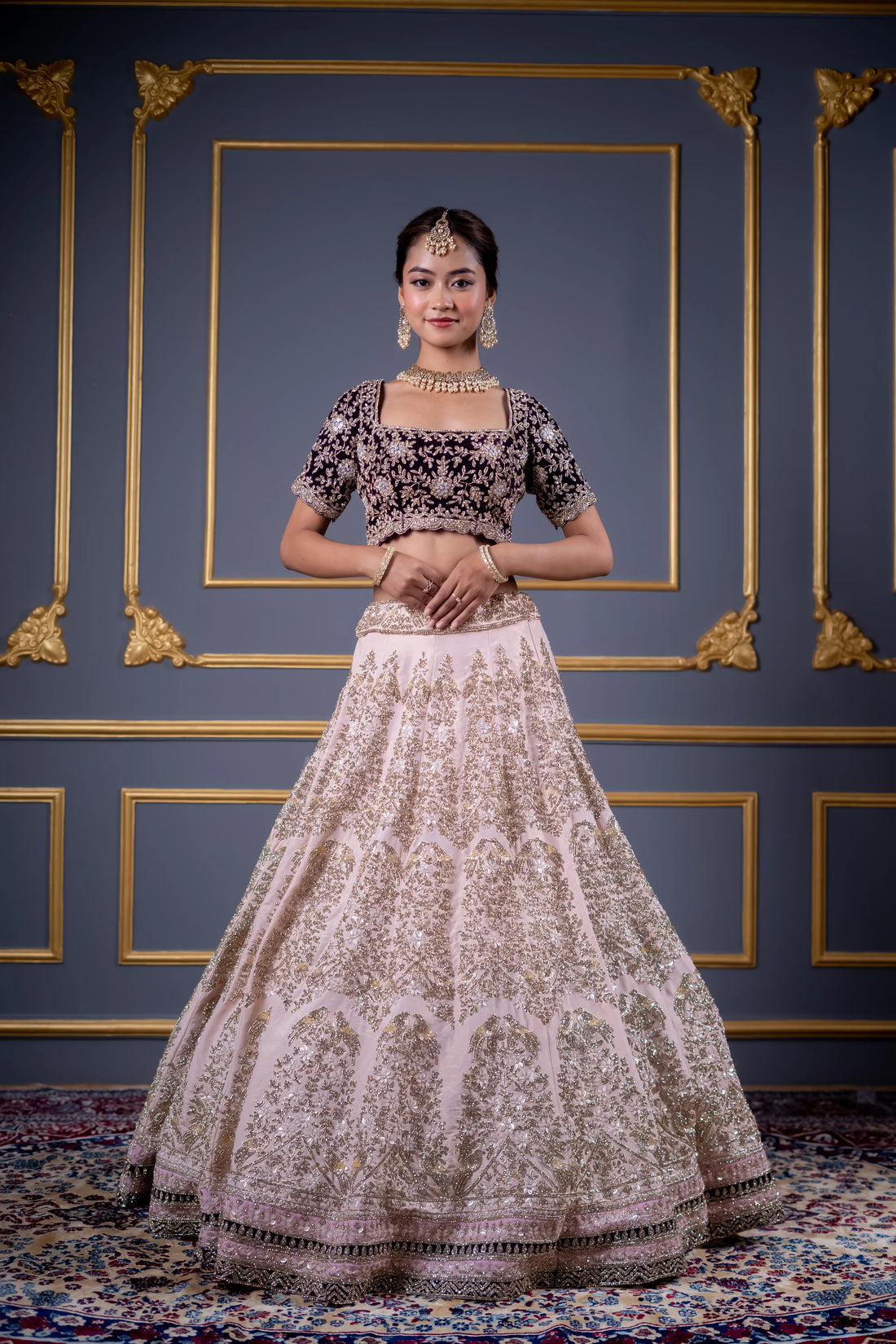 Midnight Black & Blush Pink Velvet Contrast Bridal Lehenga