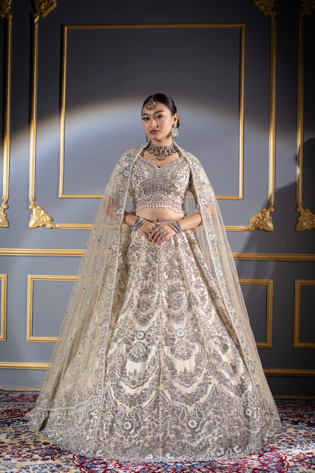 Ivory Silver Scalloped Zardosi Embroidered Bridal Lehenga