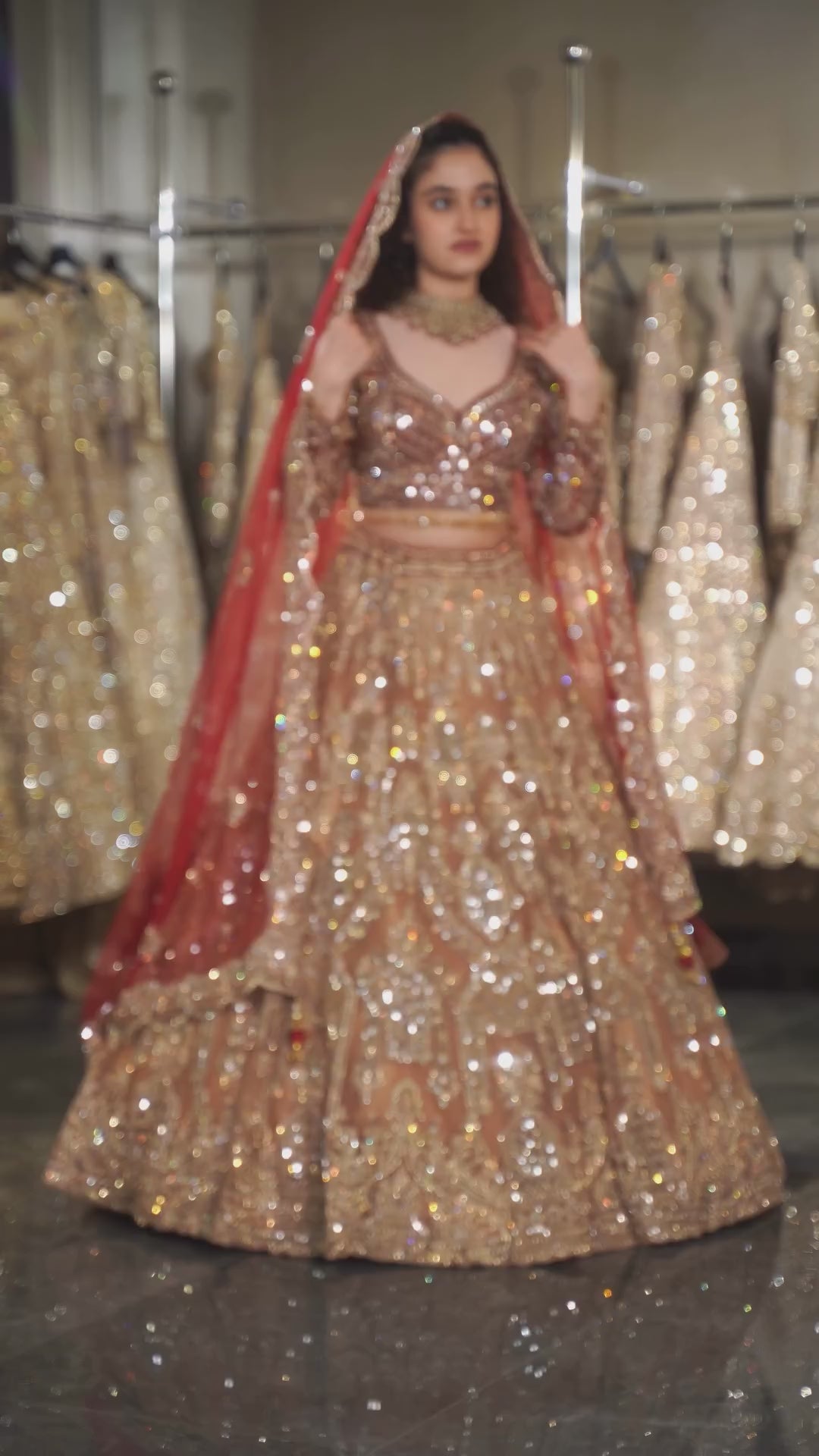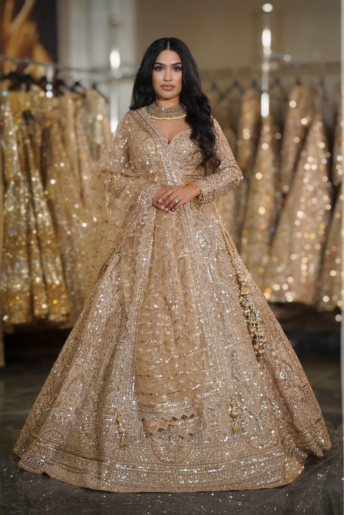 Champagne Gold Heavy Sequin & Crystal Embroidered Lehenga Set