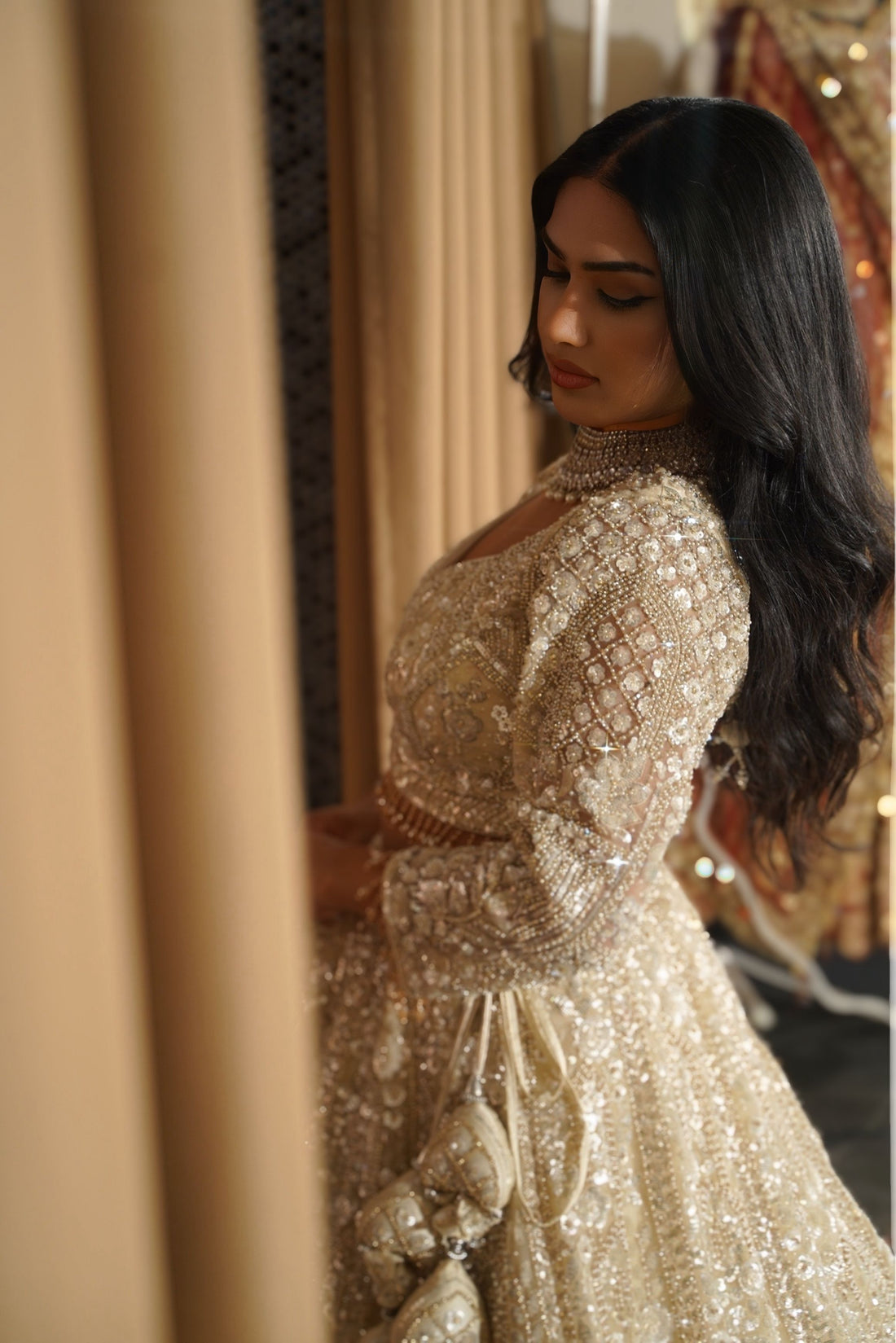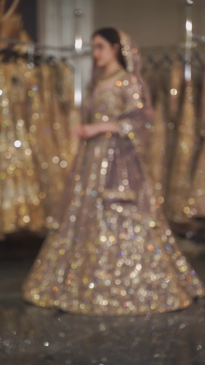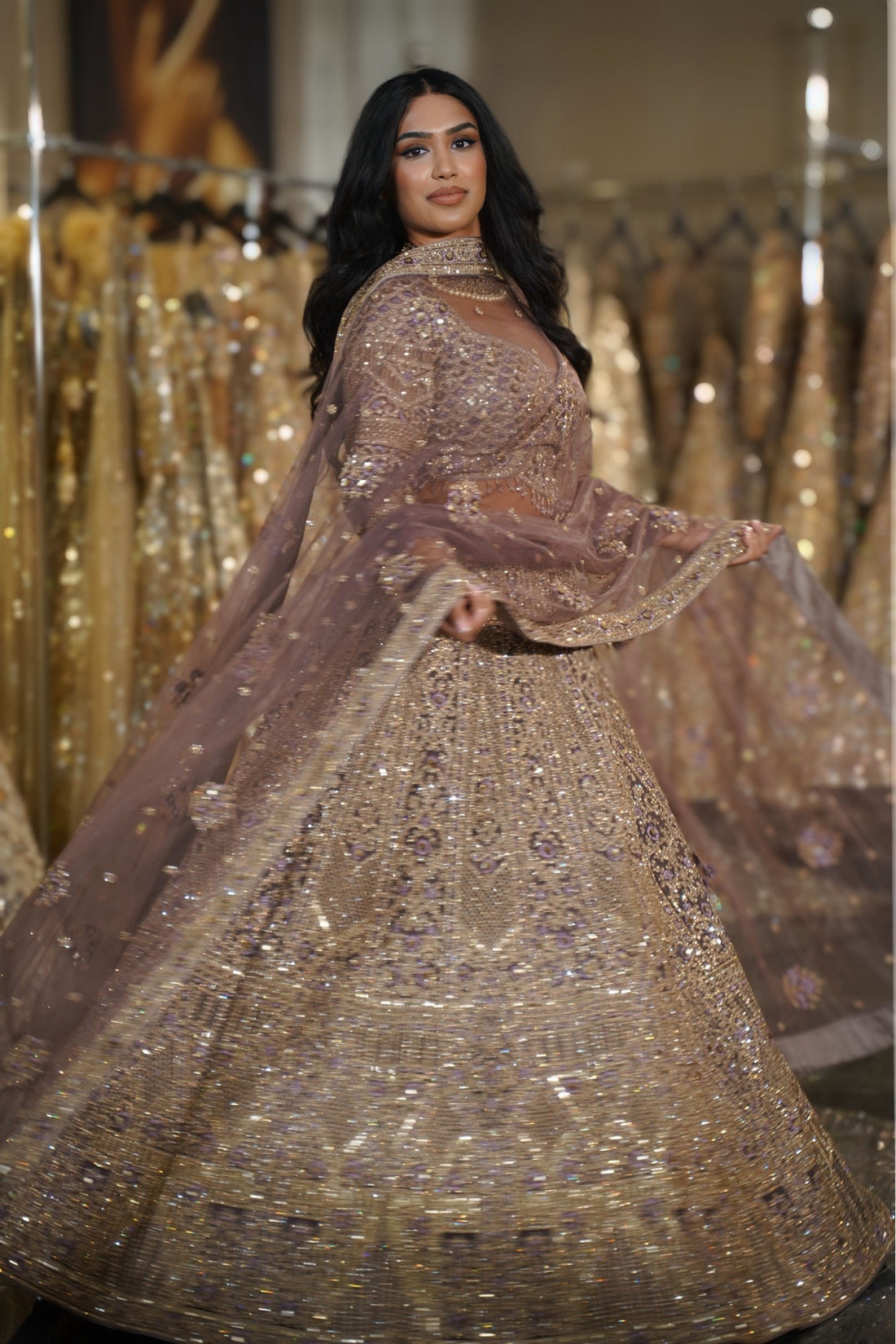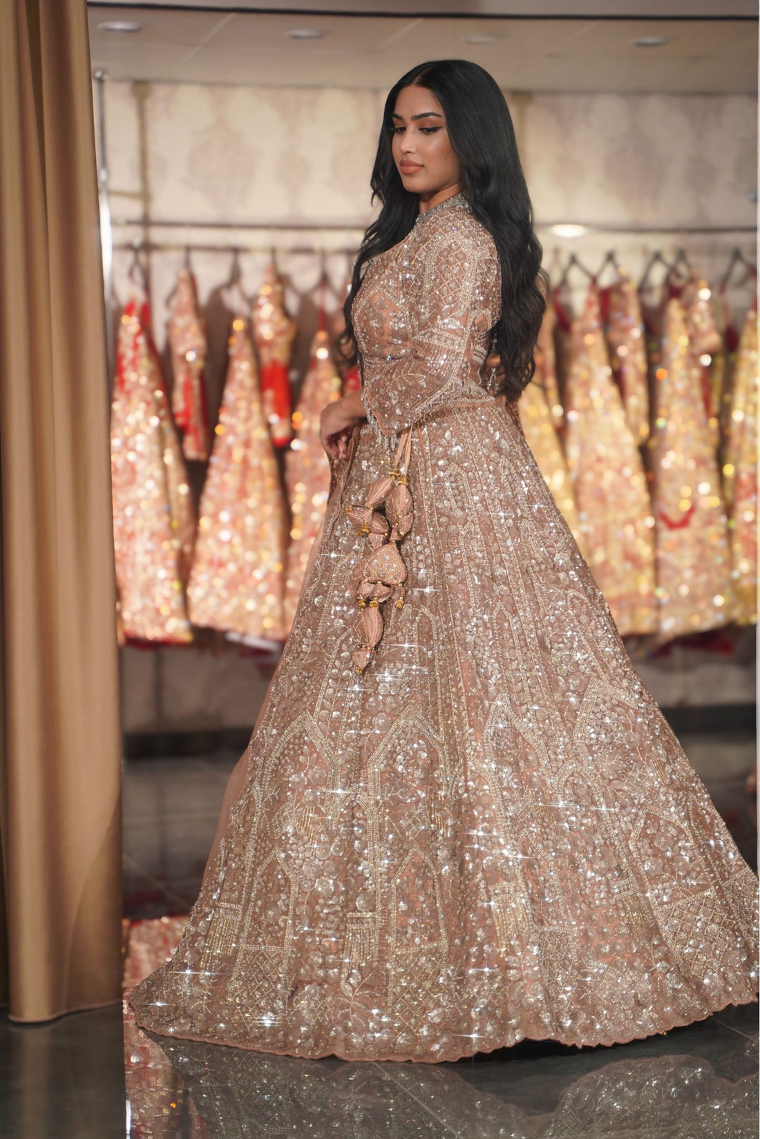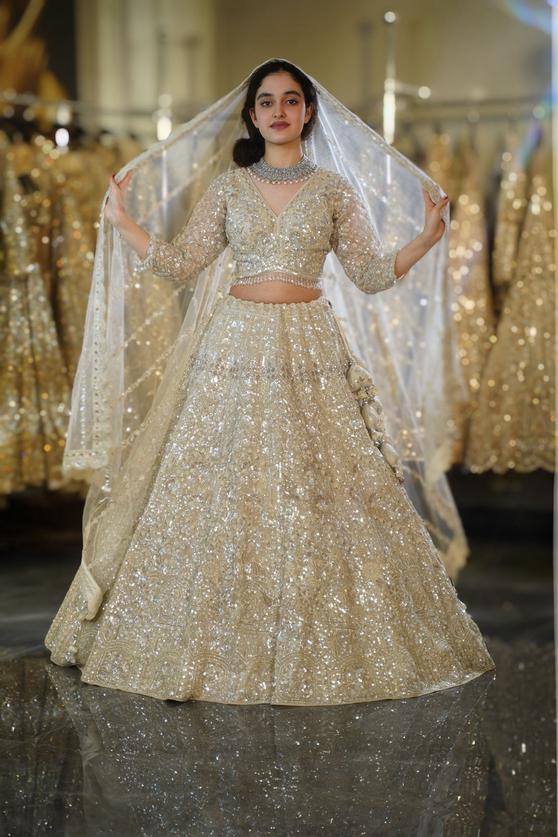 Champagne Taupe Heavy Sequin & Crystal Embroidered Lehenga Set