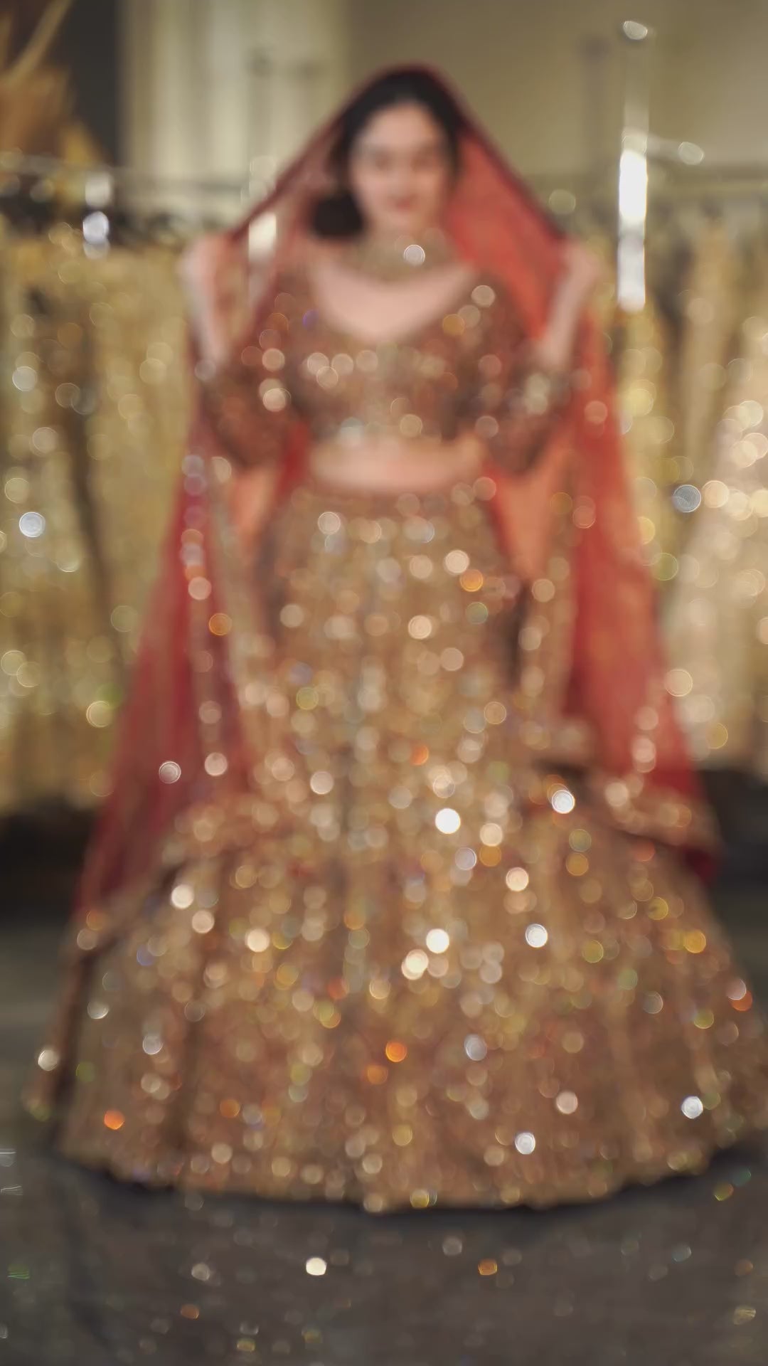 Apricot Peach & Rust Red Architectural Sequin Embroidered Lehenga Set