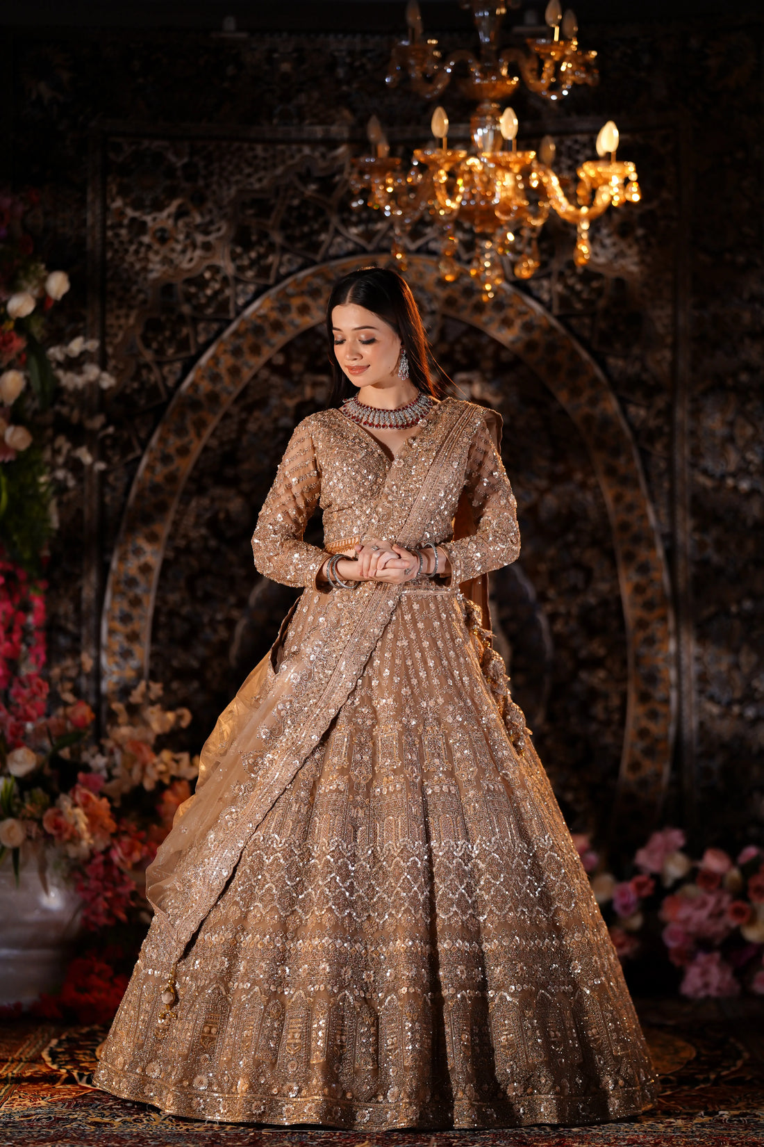 Champagne Gold Hand-Embellished Bridal Lehenga Set