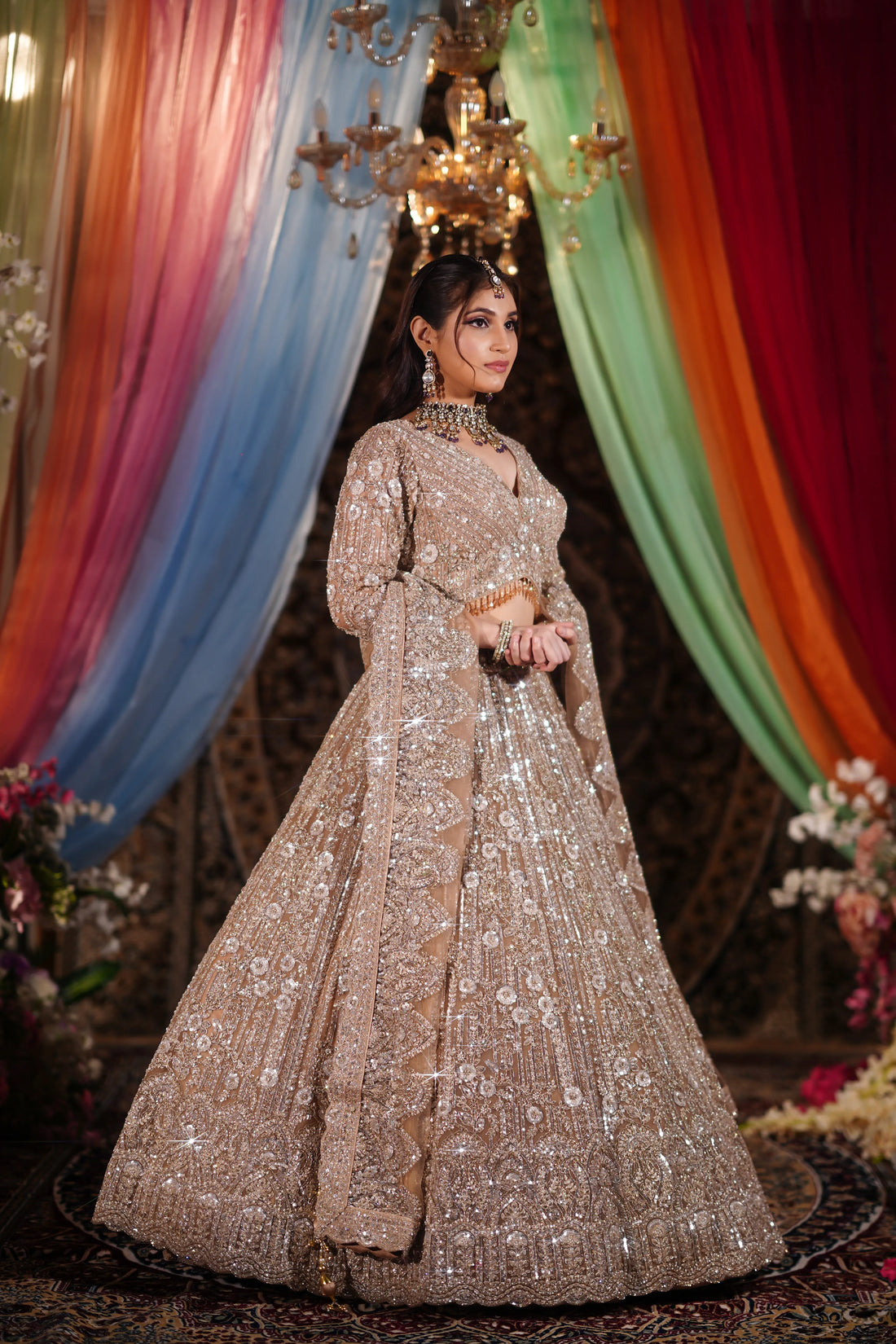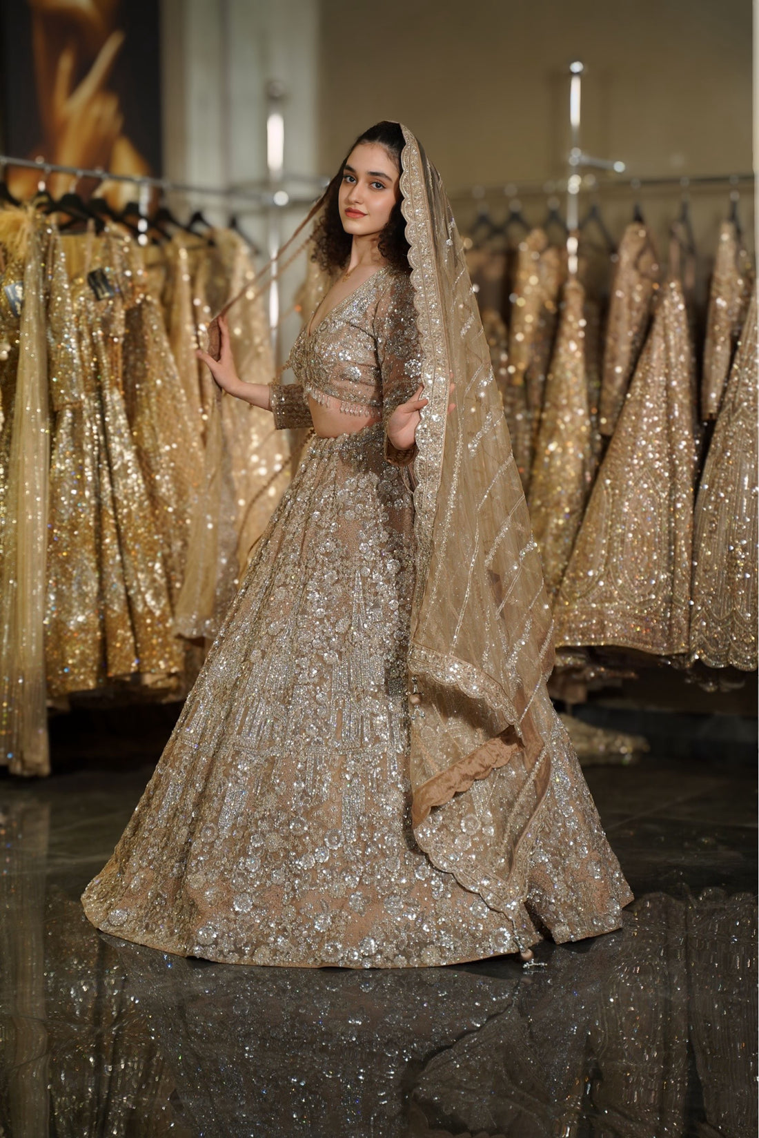 Latte Beige Heavy Sequin & Thread Embroidered Lehenga Set