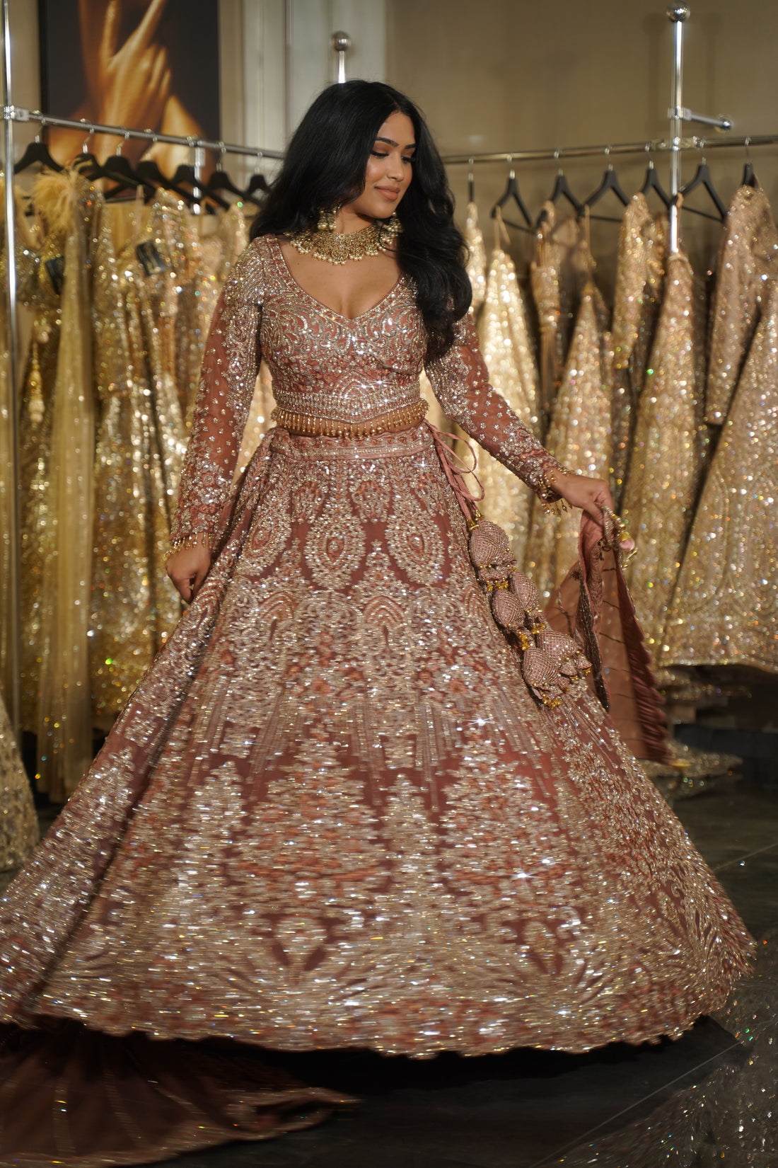 Dusty Pink Heavy Sequin & Floral Crystal Embroidered Lehenga Set