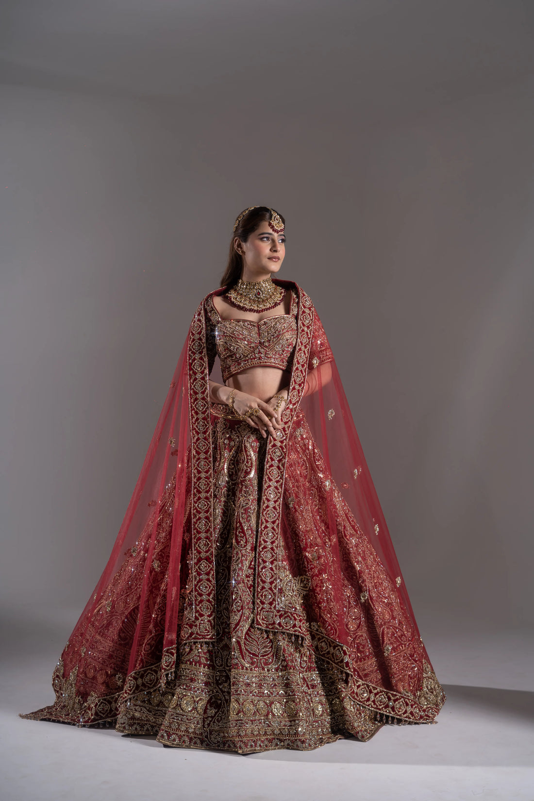 Royal Crimson Red Zardosi Embroidered Bridal Lehenga