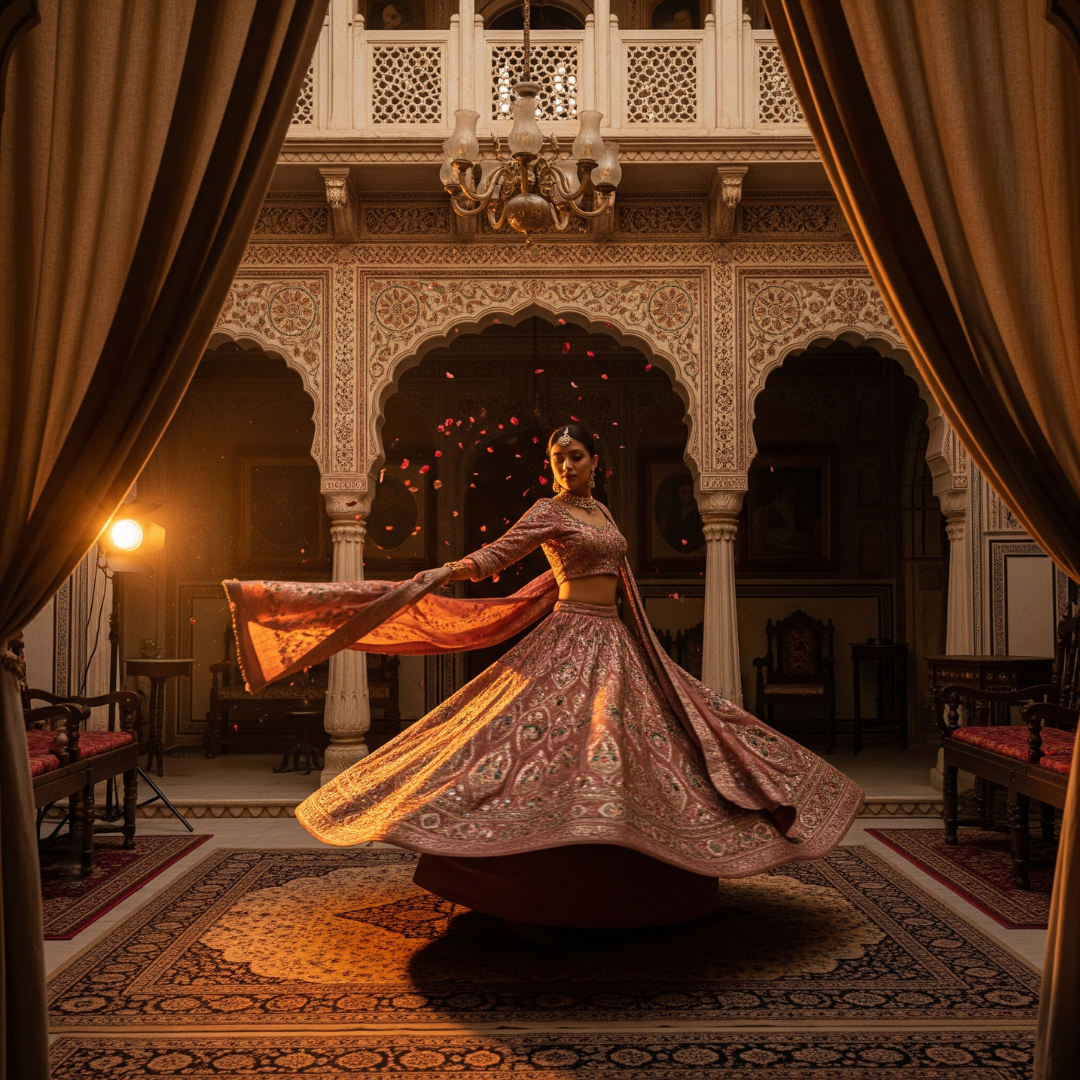 Each creation tells a story of generations of master artisans, whose hands have carried forward centuries-old techniques like hand-embroidered zardozi, intricate gota, and handwoven brocades.