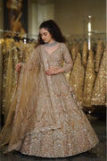 | Dupatta | Sheer champagne net dupatta with a matching embroidered border and sequin spray |