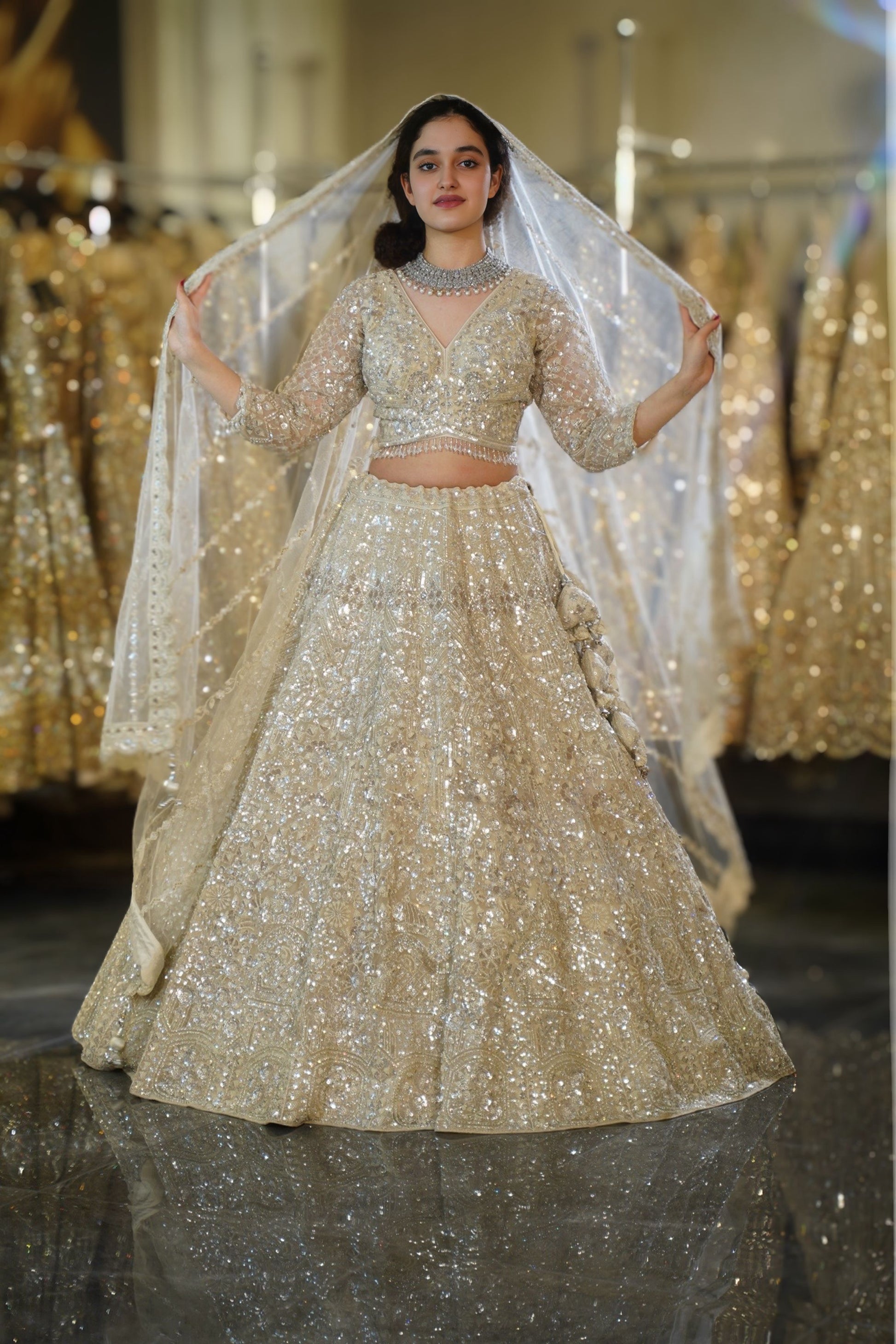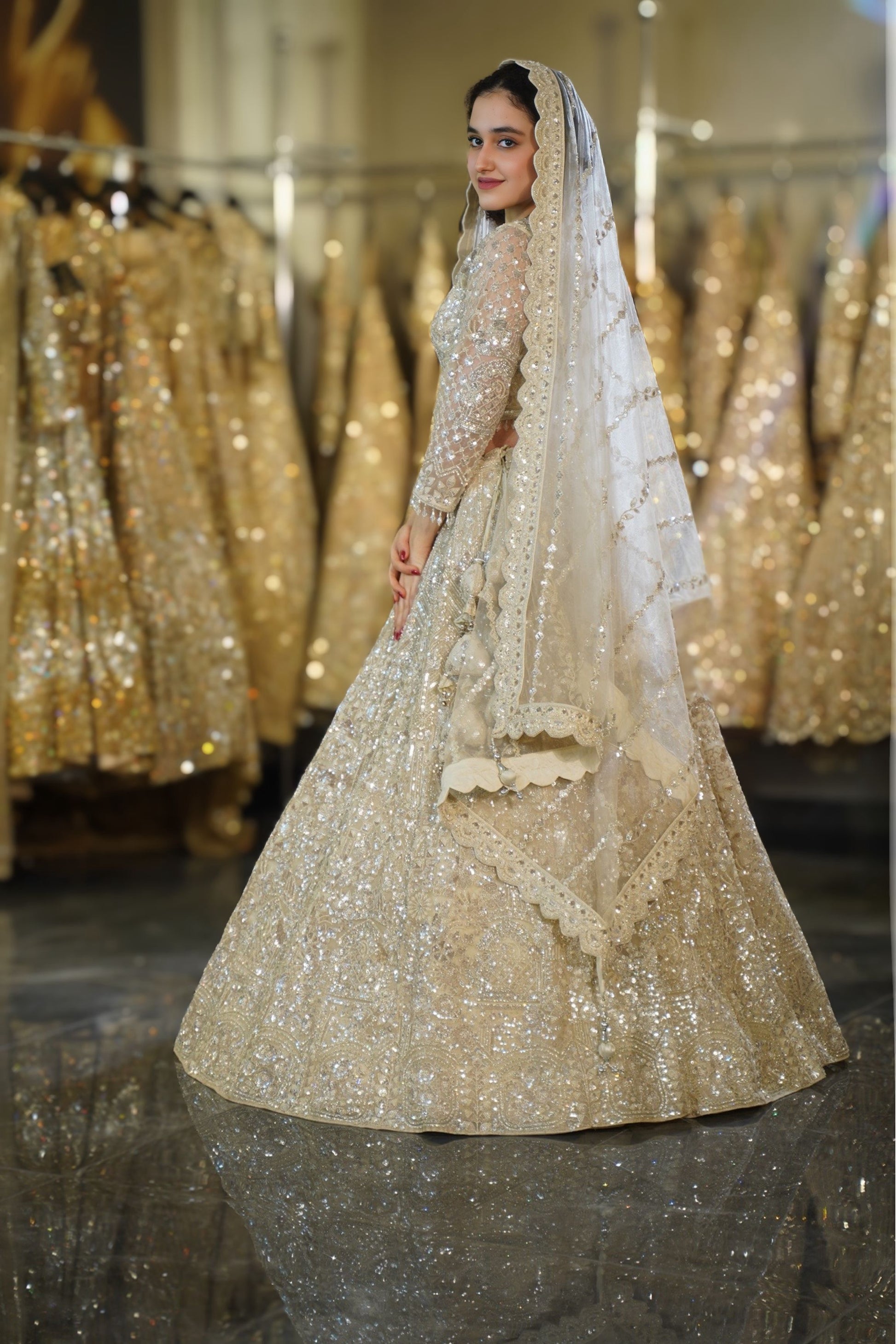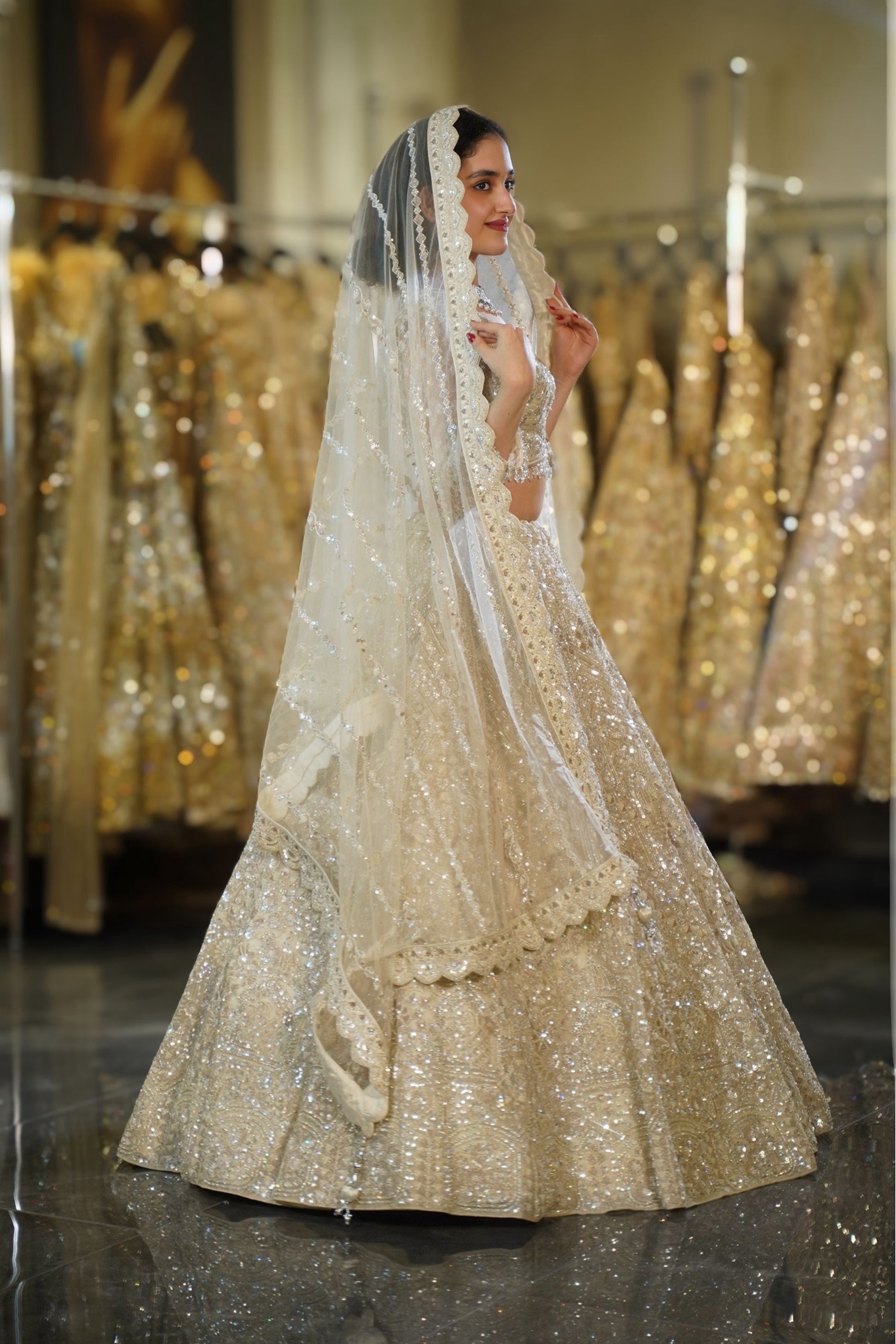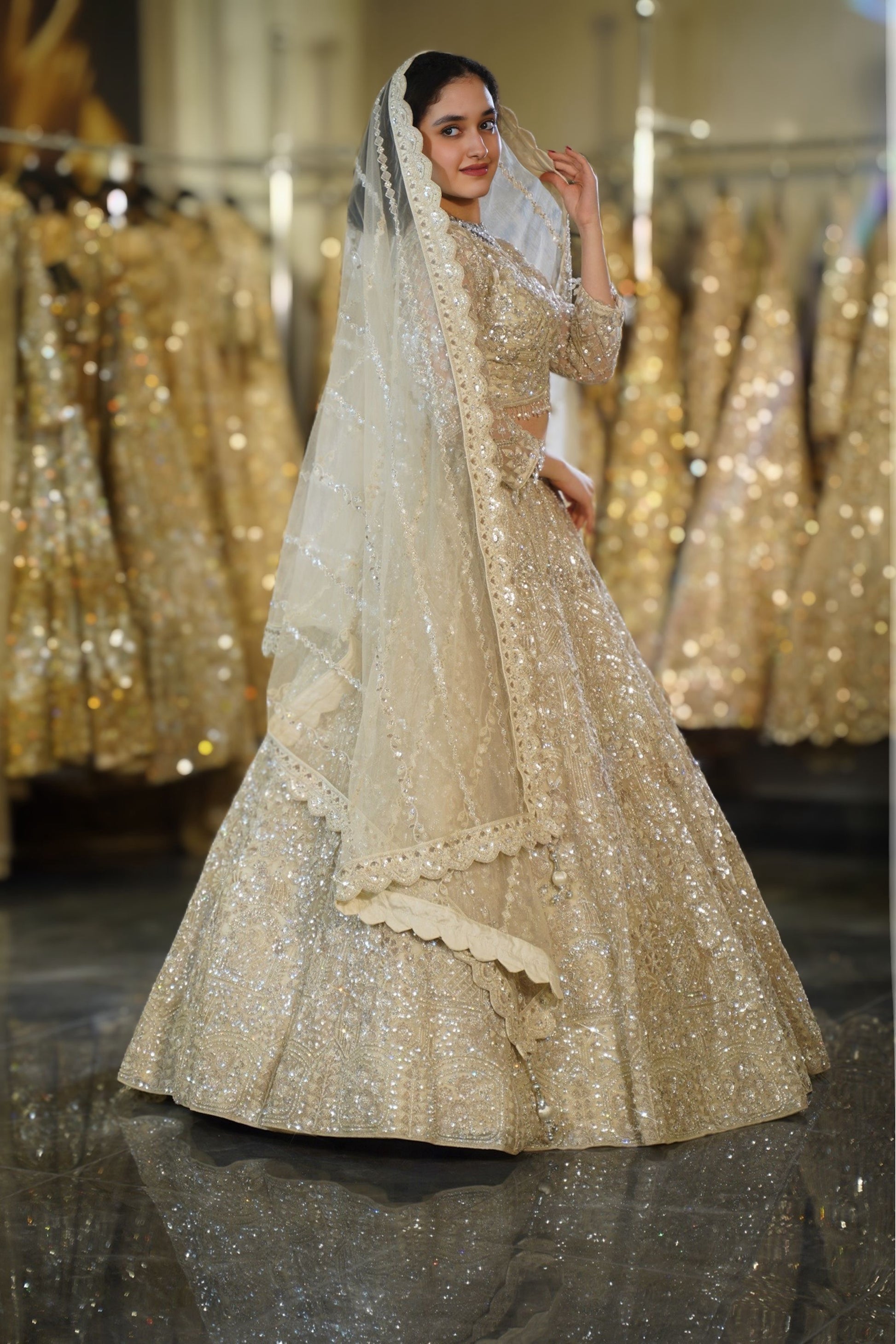 Ivory Silver Heavy Sequin & Crystal Embroidered Lehenga Set