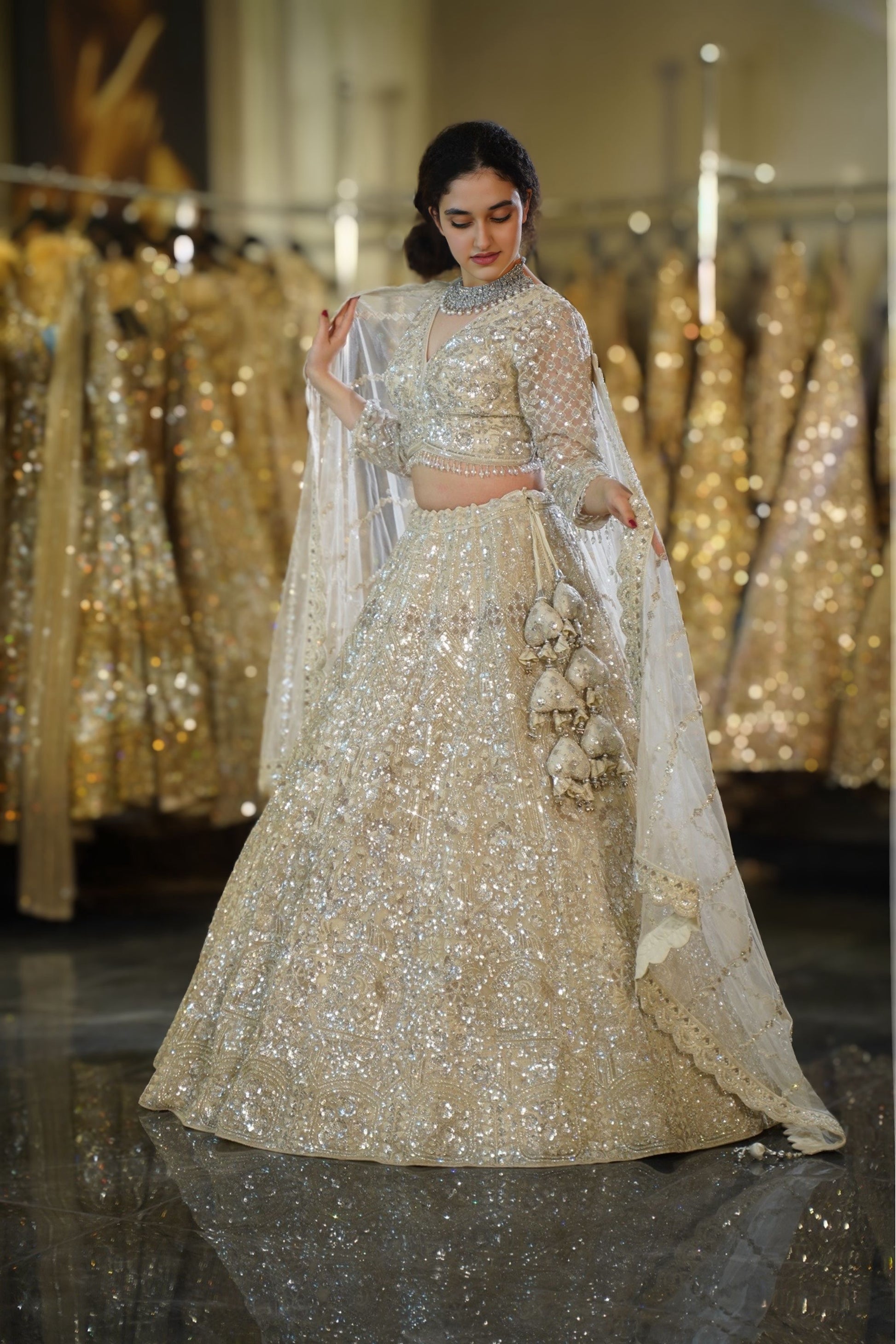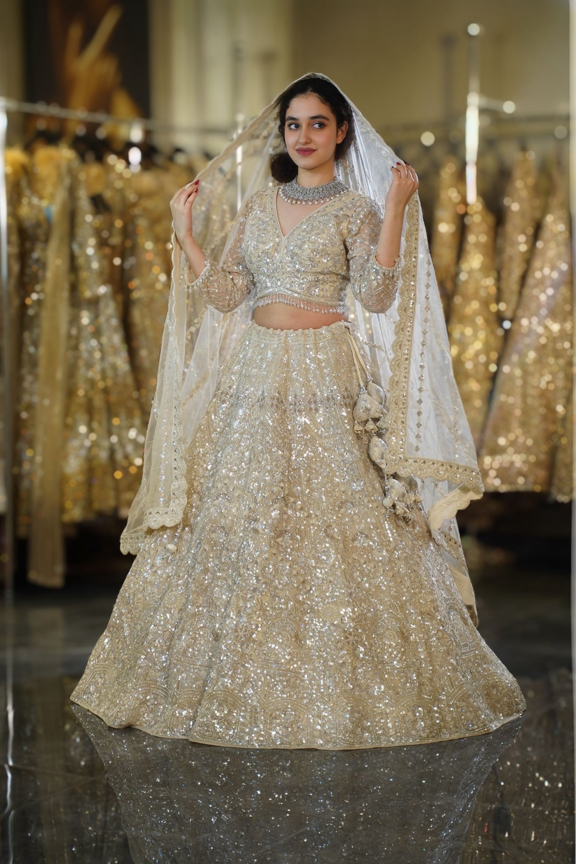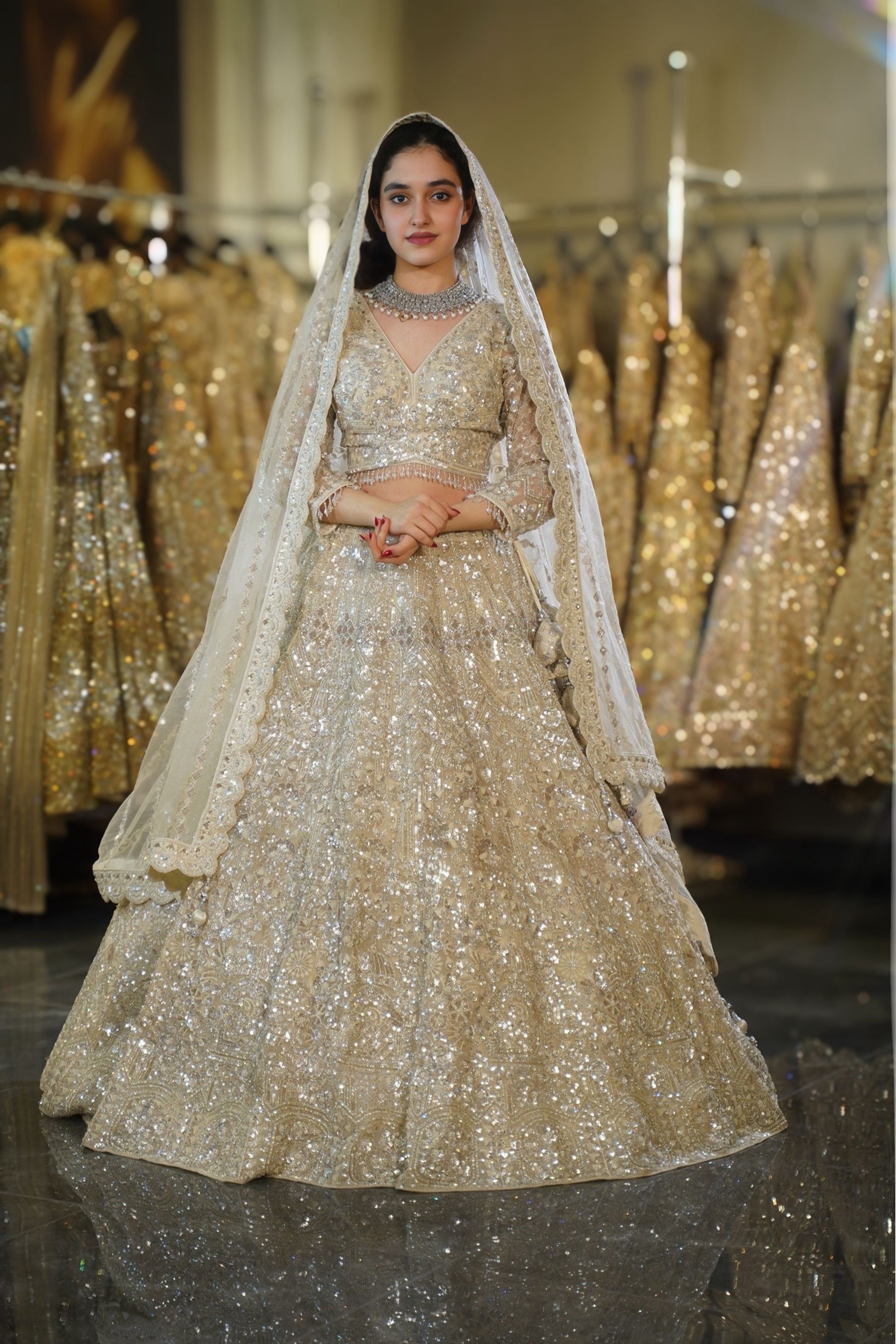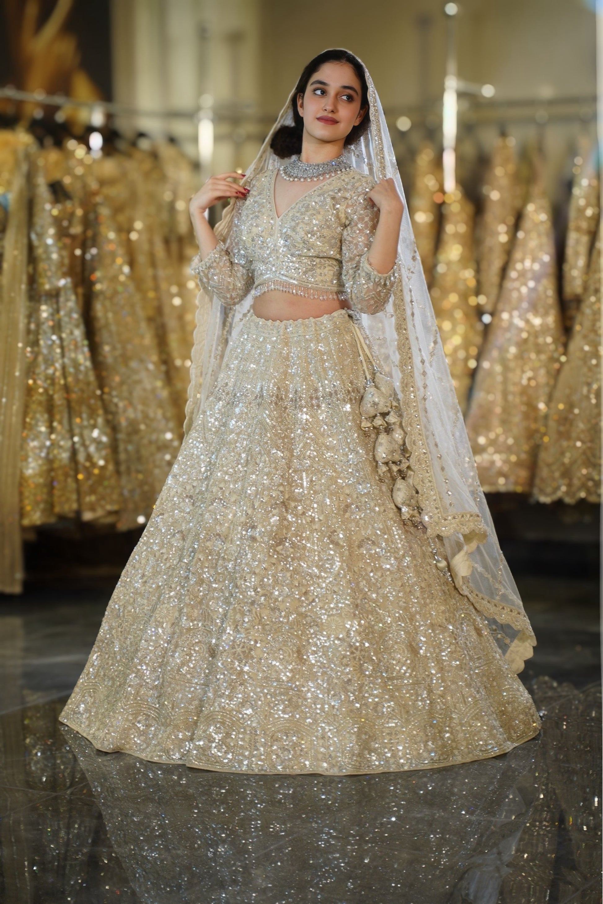 Ivory Silver Heavy Sequin & Crystal Embroidered Lehenga Set