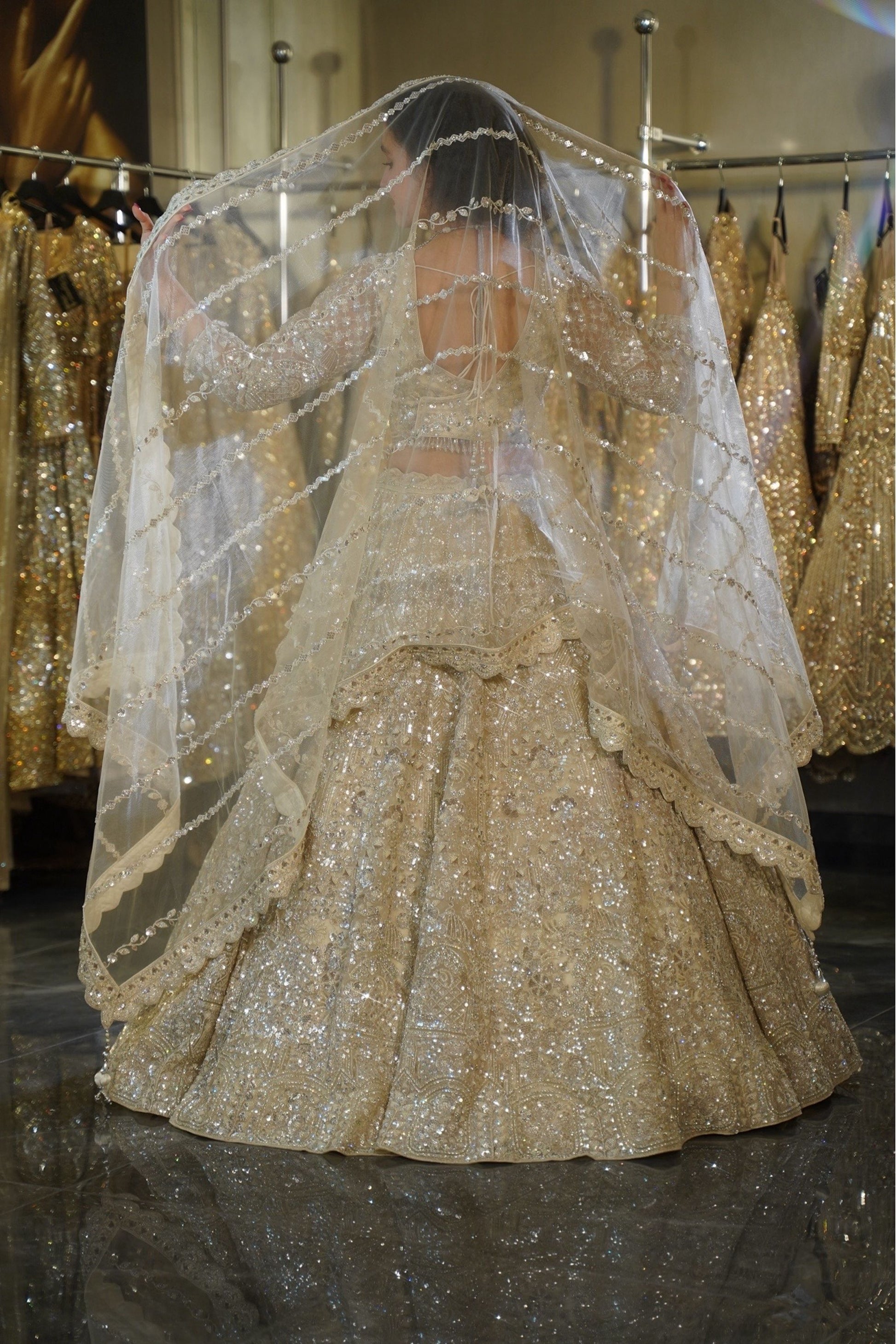 Scalloped Borders: The dupatta is framed by a delicate border that adds structure to the sheer net, completing the ethereal silhouette ✨