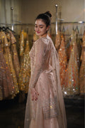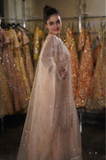| Dupatta | Sheer peach net dupatta with a matching embroidered border and scattered sequins |