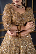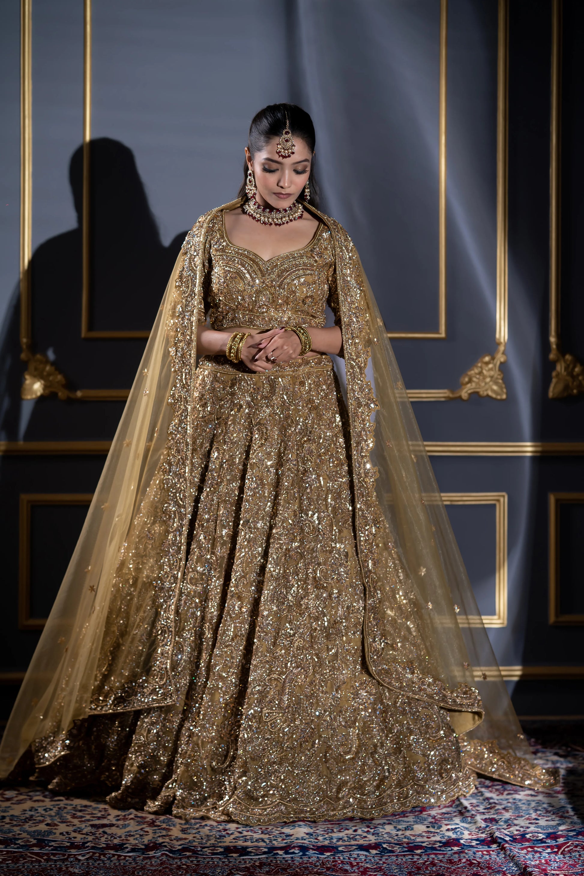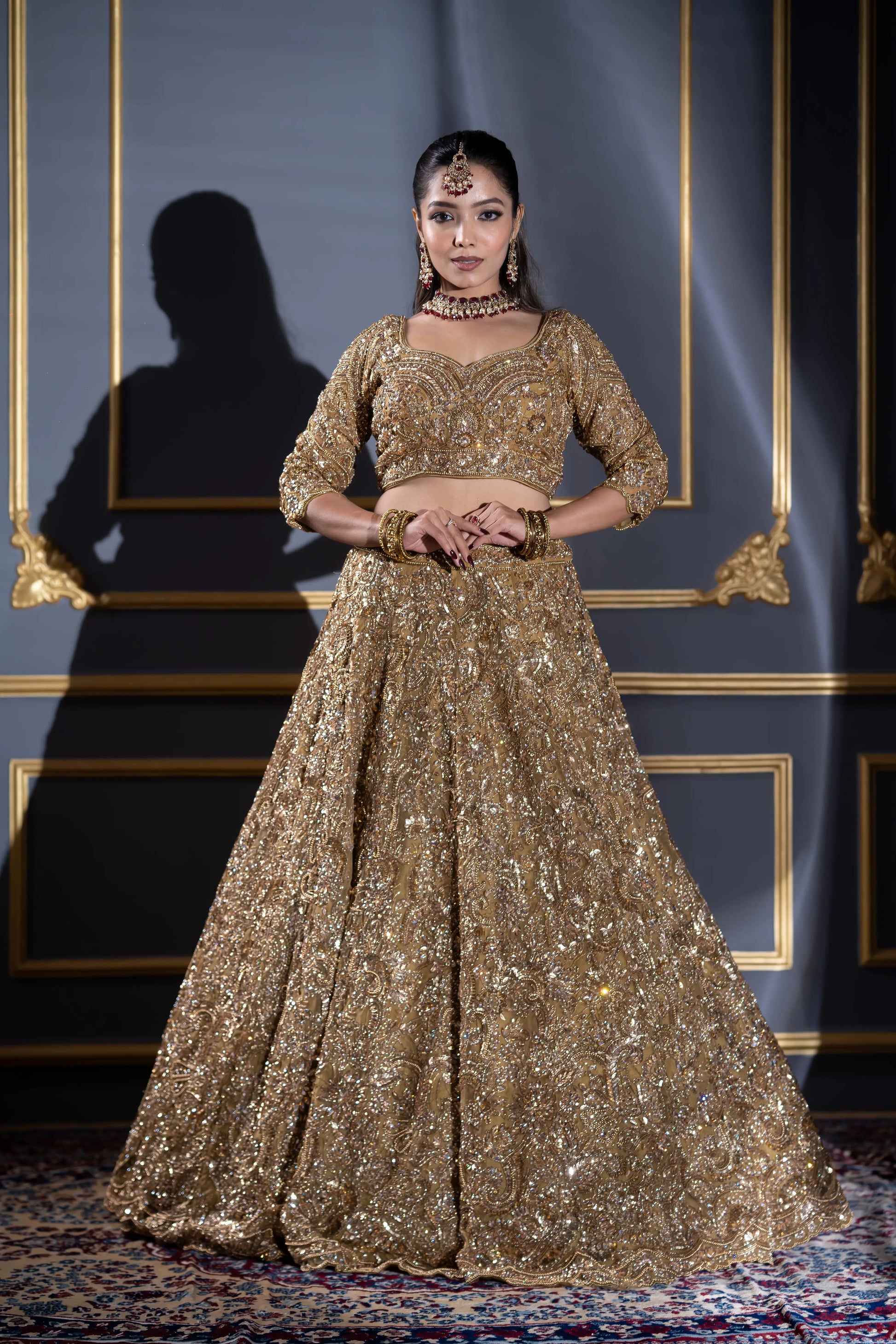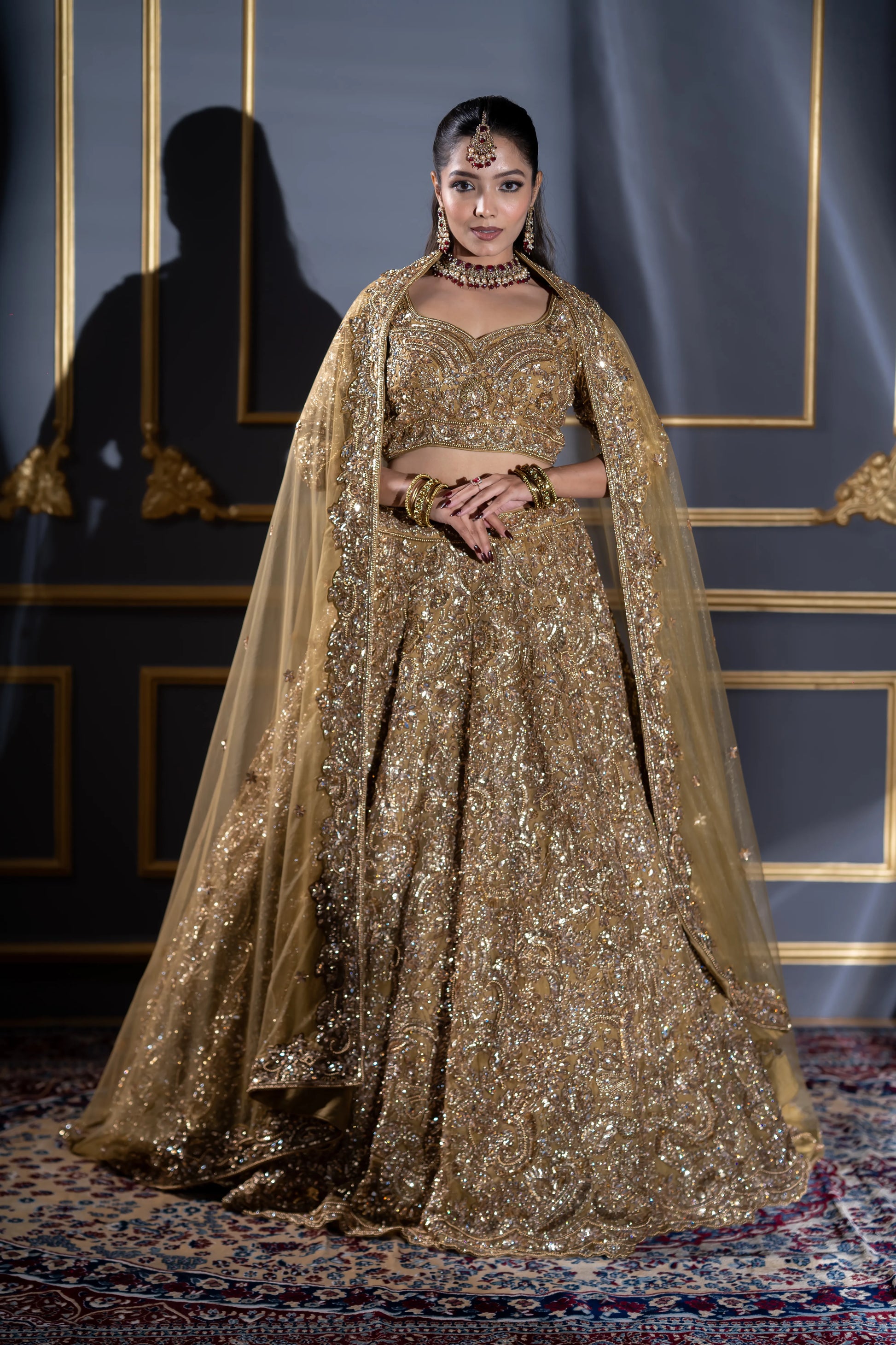 Antique Gold Heavy Zardosi Embroidered Bridal Lehenga