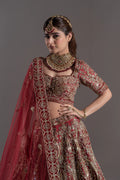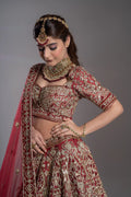Deep Maroon Heavy Zardosi Paisley Bridal Lehenga