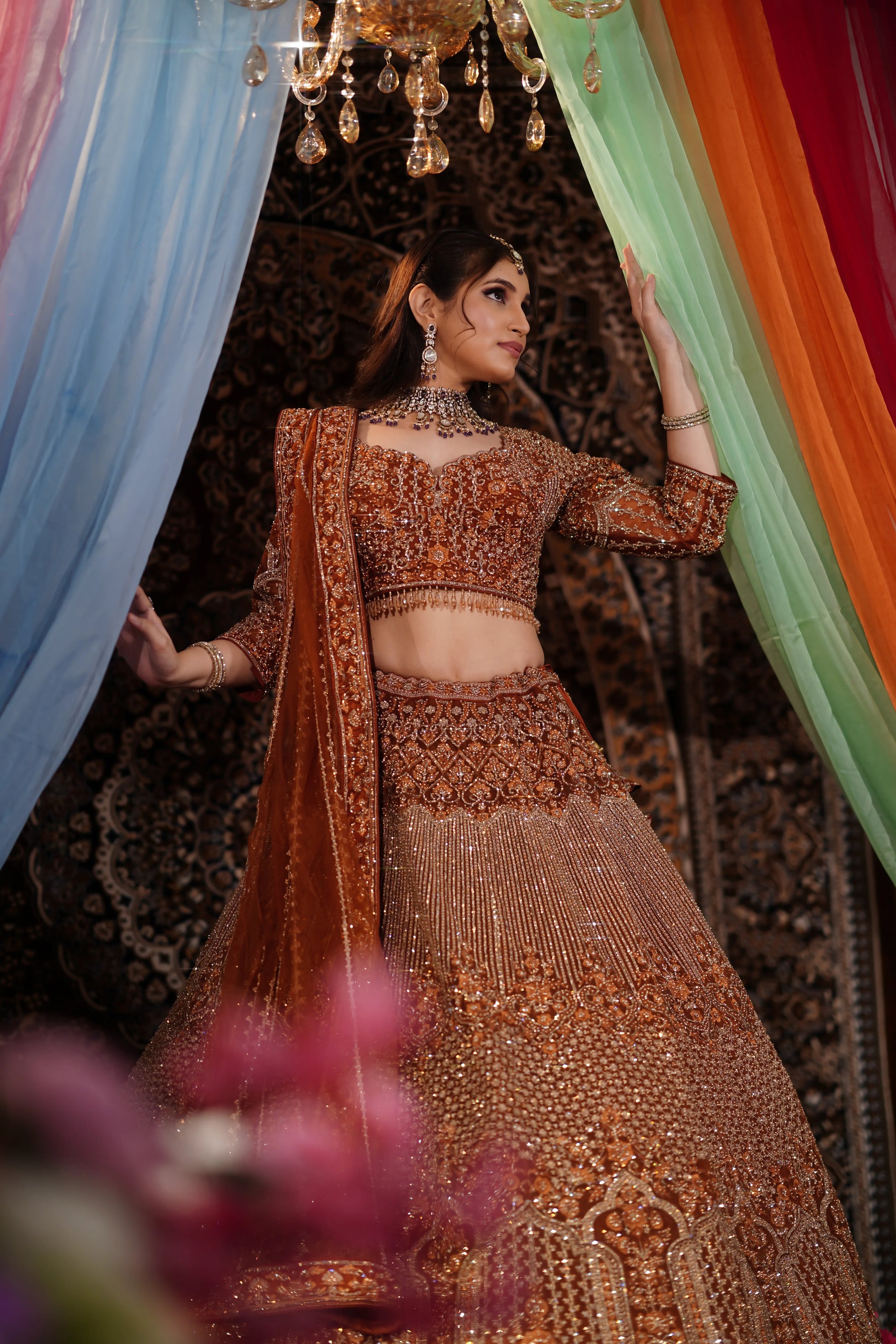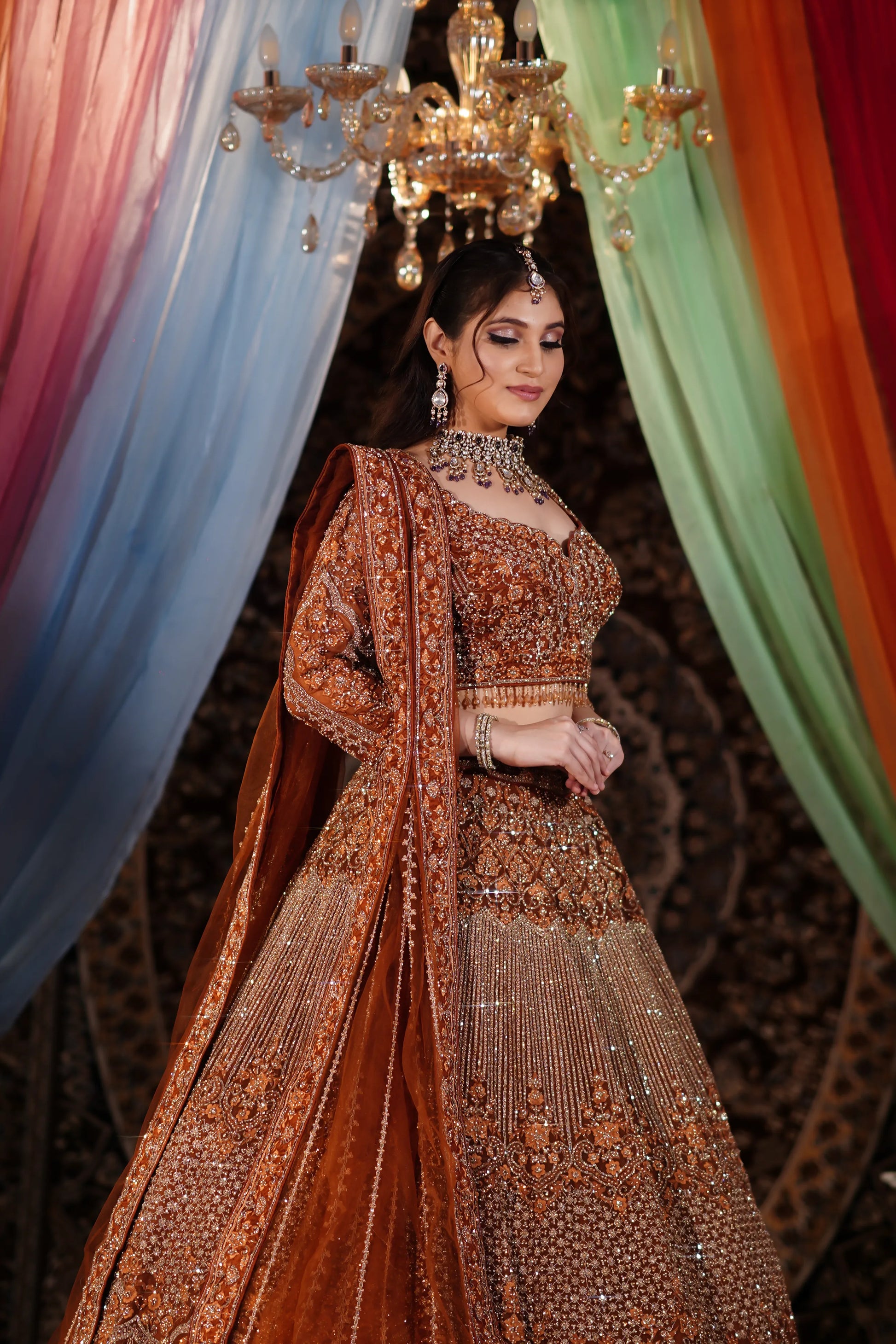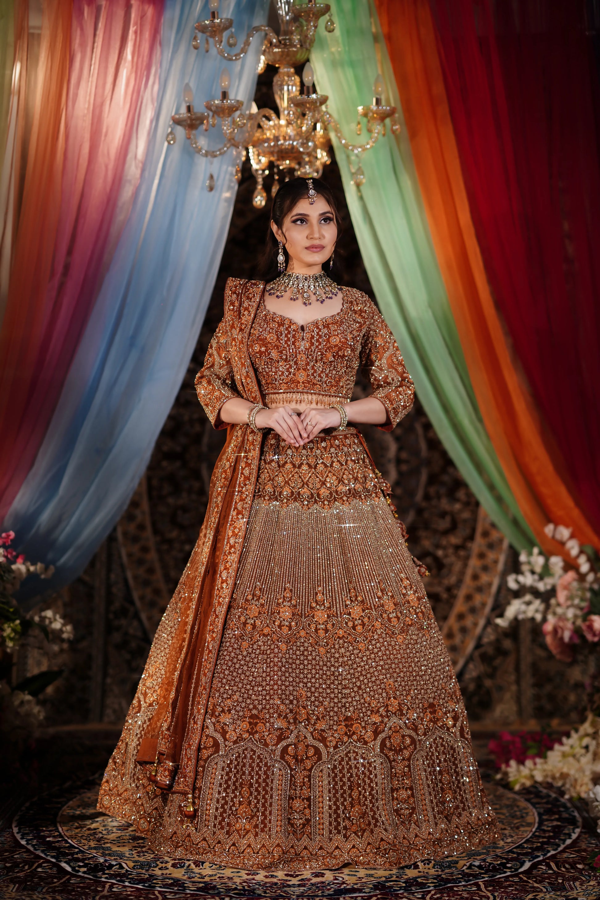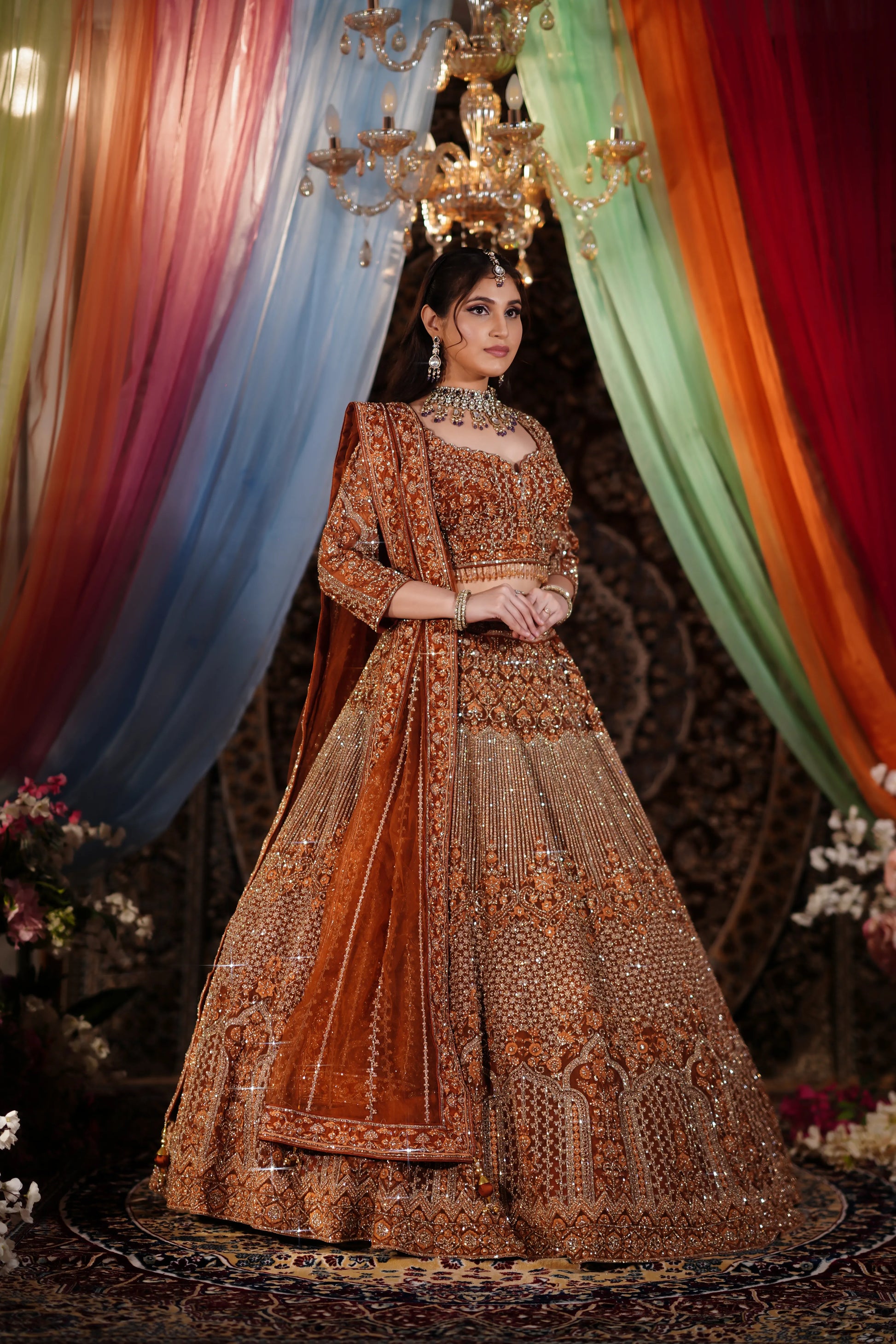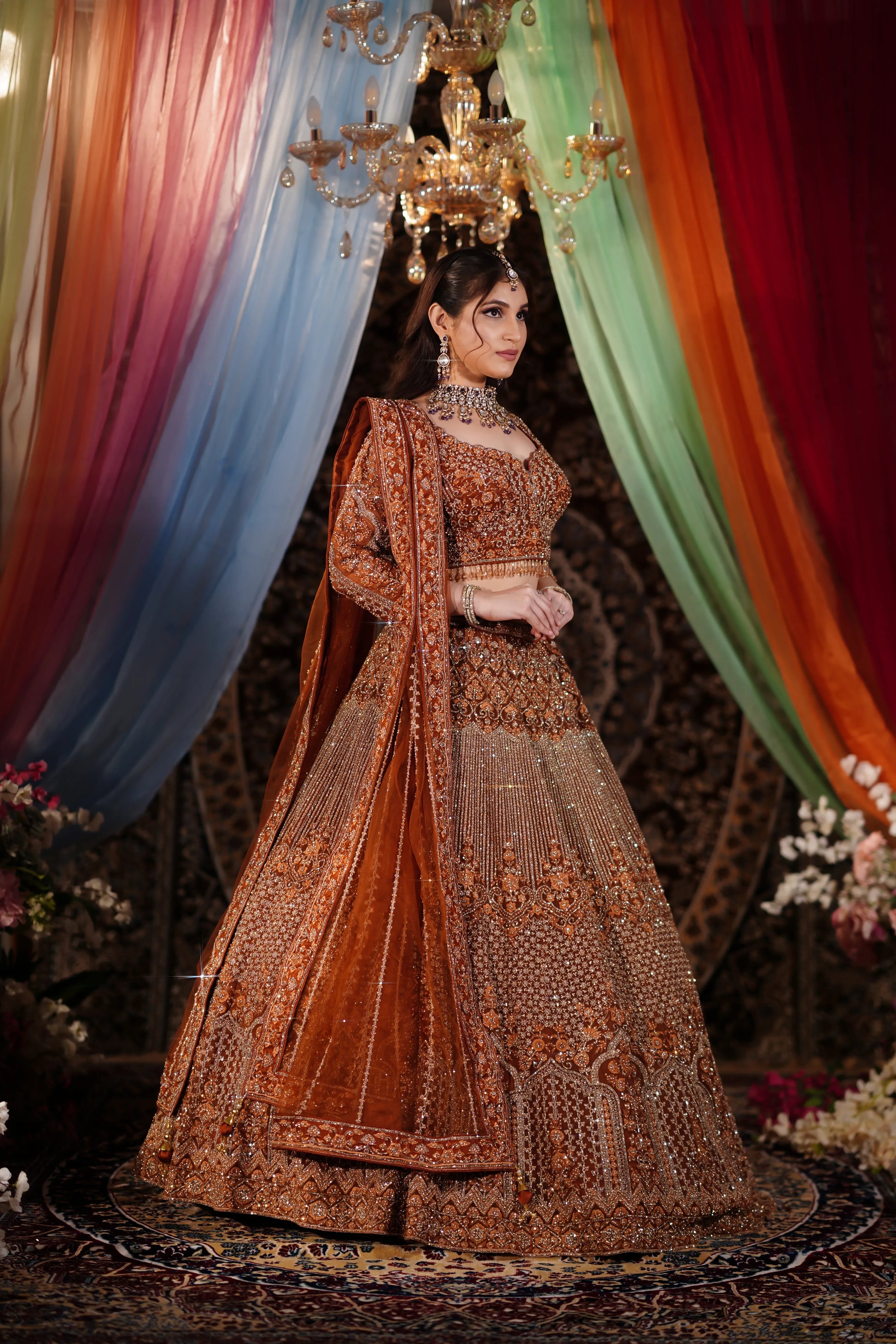 Rust Copper Heavy Zardosi & Architectural Sequin Lehenga Set