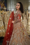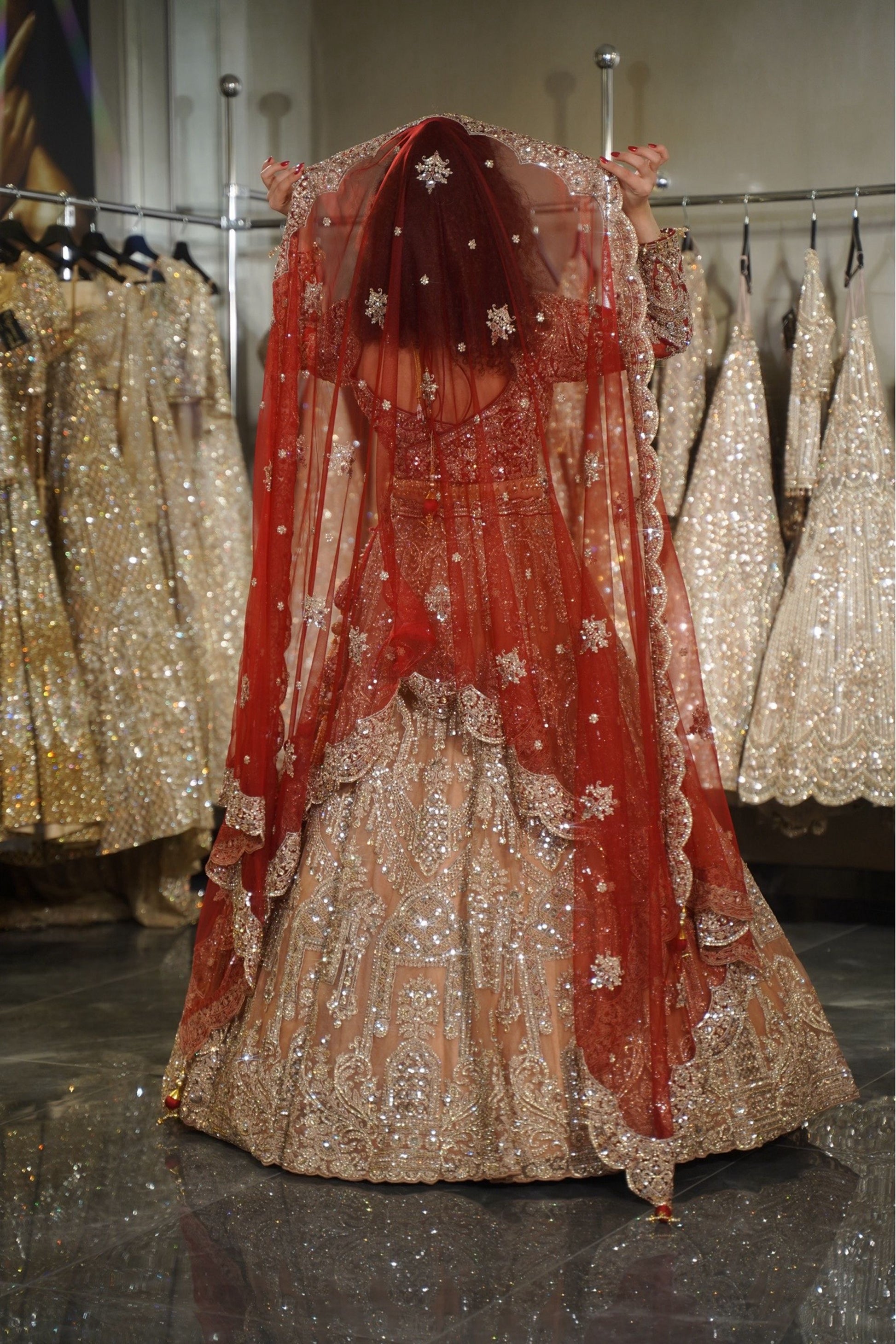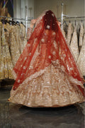 Make a striking statement with this dual-tone Apricot Peach & Rust Red Lehenga Set. This unique ensemble masterfully blends a soft, romantic base color with the bold intensity of deep red accents. The skirt radiates a warm golden glow, while the contrasting blouse and dupatta add a layer of traditional richness. Perfect for the bride who wants the best of both worlds—modern elegance and auspicious tradition—for her main wedding ceremony or grand reception.
