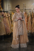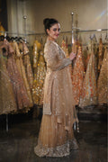 Champagne Beige Heavy Paisley & Geometric Embroidered Long Kurta Sharara Set