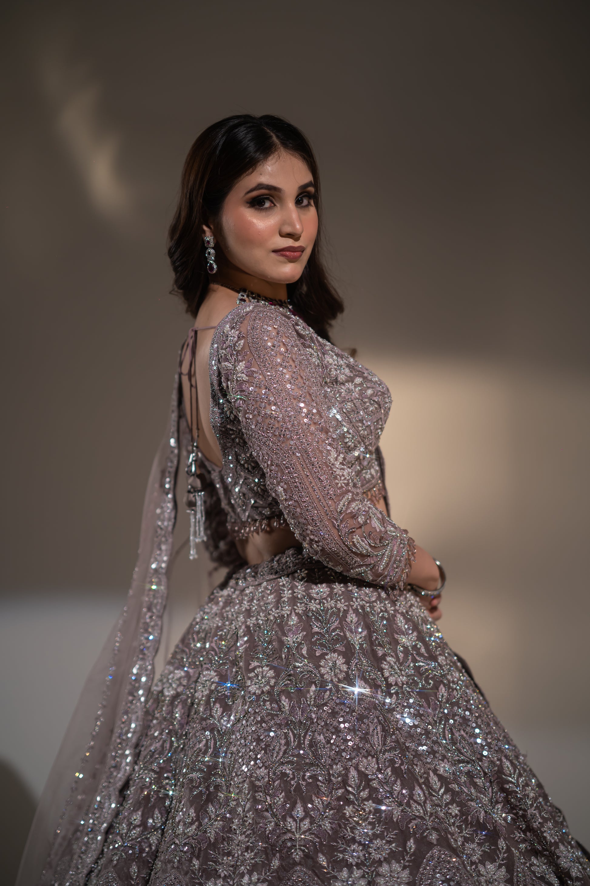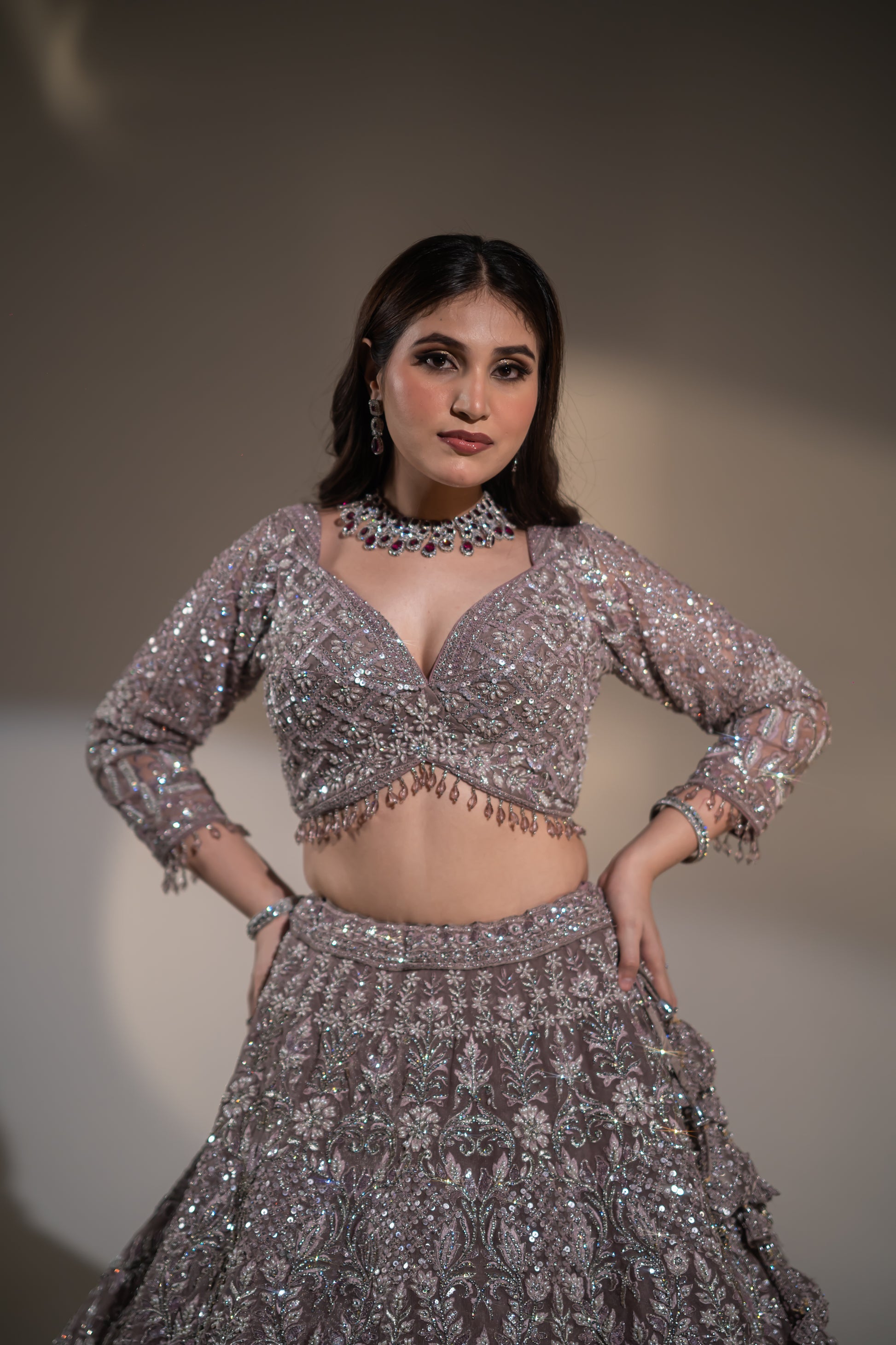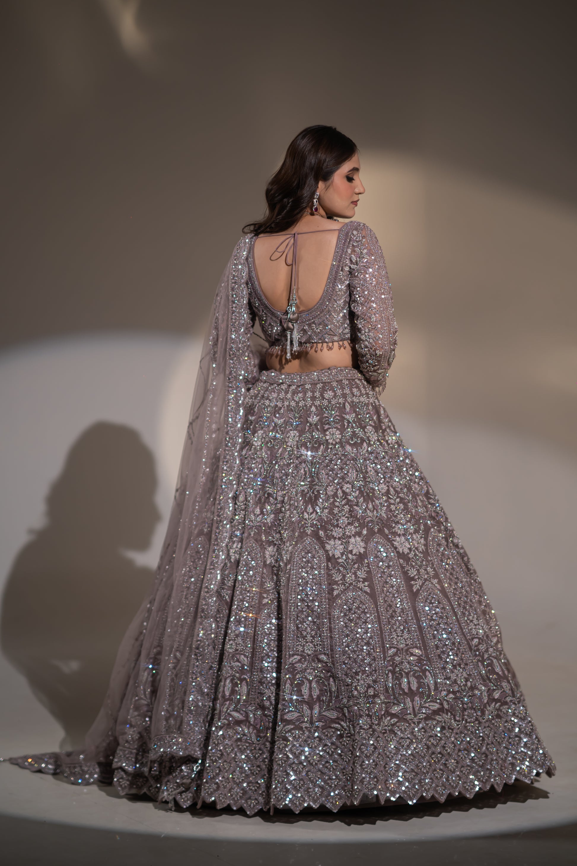 Smoky Lilac Mirror-Embellished Bridal Lehenga Set
