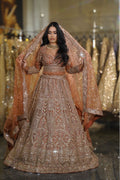 Ignite the evening with this majestic Rust Copper Lehenga Set. Stepping away from the ordinary, this ensemble embraces the rich, warm tones of burnt orange and terracotta, heavily embellished with contrasting silver and crystal work. Designed for the bride who wants a grounded yet opulent aesthetic, this masterpiece features grand architectural patterns that evoke the splendor of heritage palaces, making it an unforgettable choice for a reception or autumn wedding.