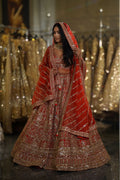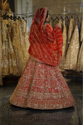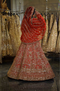 Celebrate the timeless glory of the Indian bride with this magnificent Red Bridal Lehenga Set. A color that symbolizes love, prosperity, and new beginnings, this ensemble is reimagined with a structured, architectural design language. Heavily embellished with shimmering gold zardosi and sequins, it is crafted for the bride who wants to honor tradition while embracing a bold, defined silhouette for her main wedding ceremony.