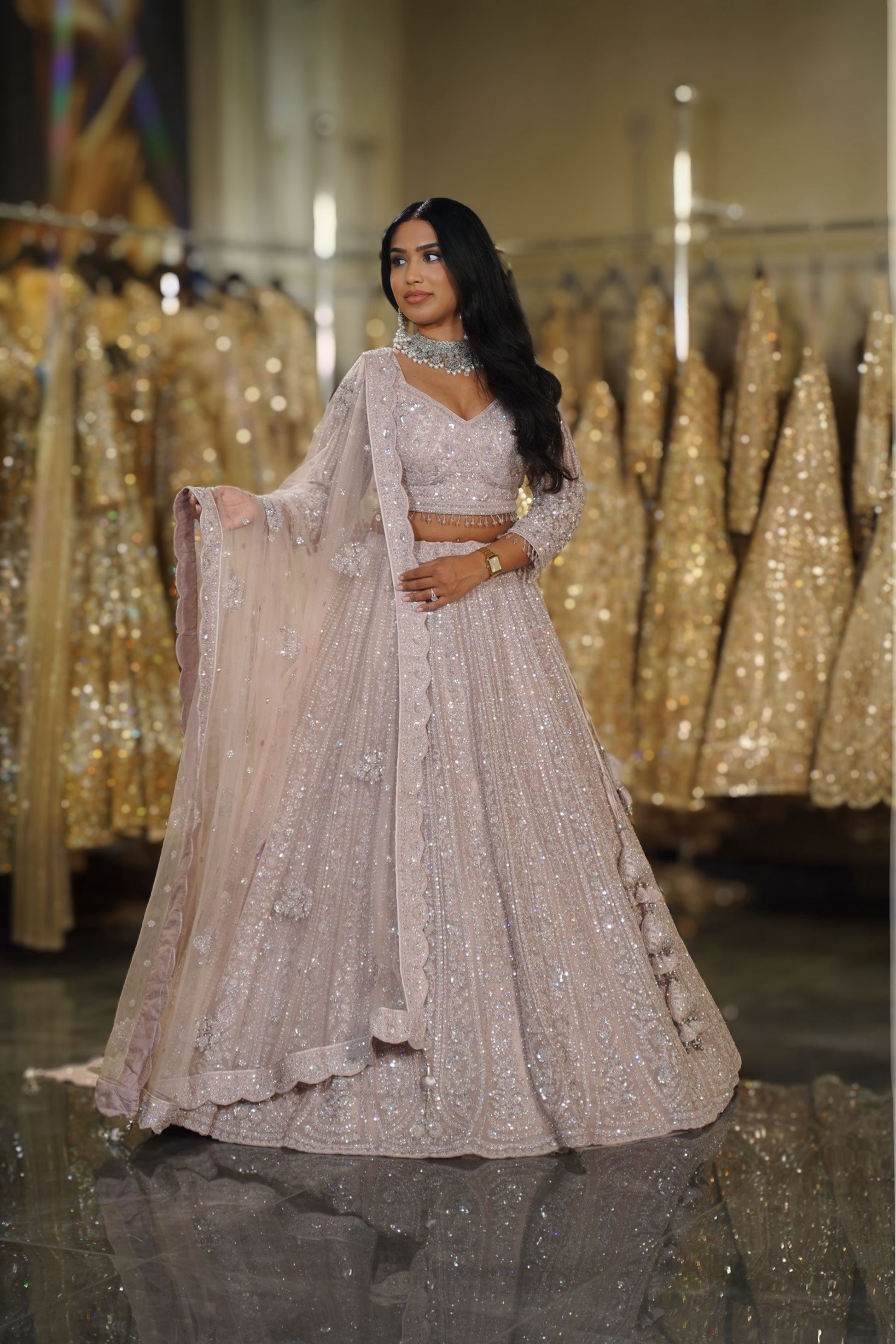 Lilac Pink Scalloped Floral & Sequin Embroidered Lehenga Set