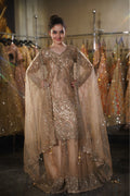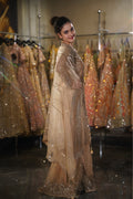 | Dupatta | Sheer champagne net dupatta with a matching embroidered border and corner tassels |