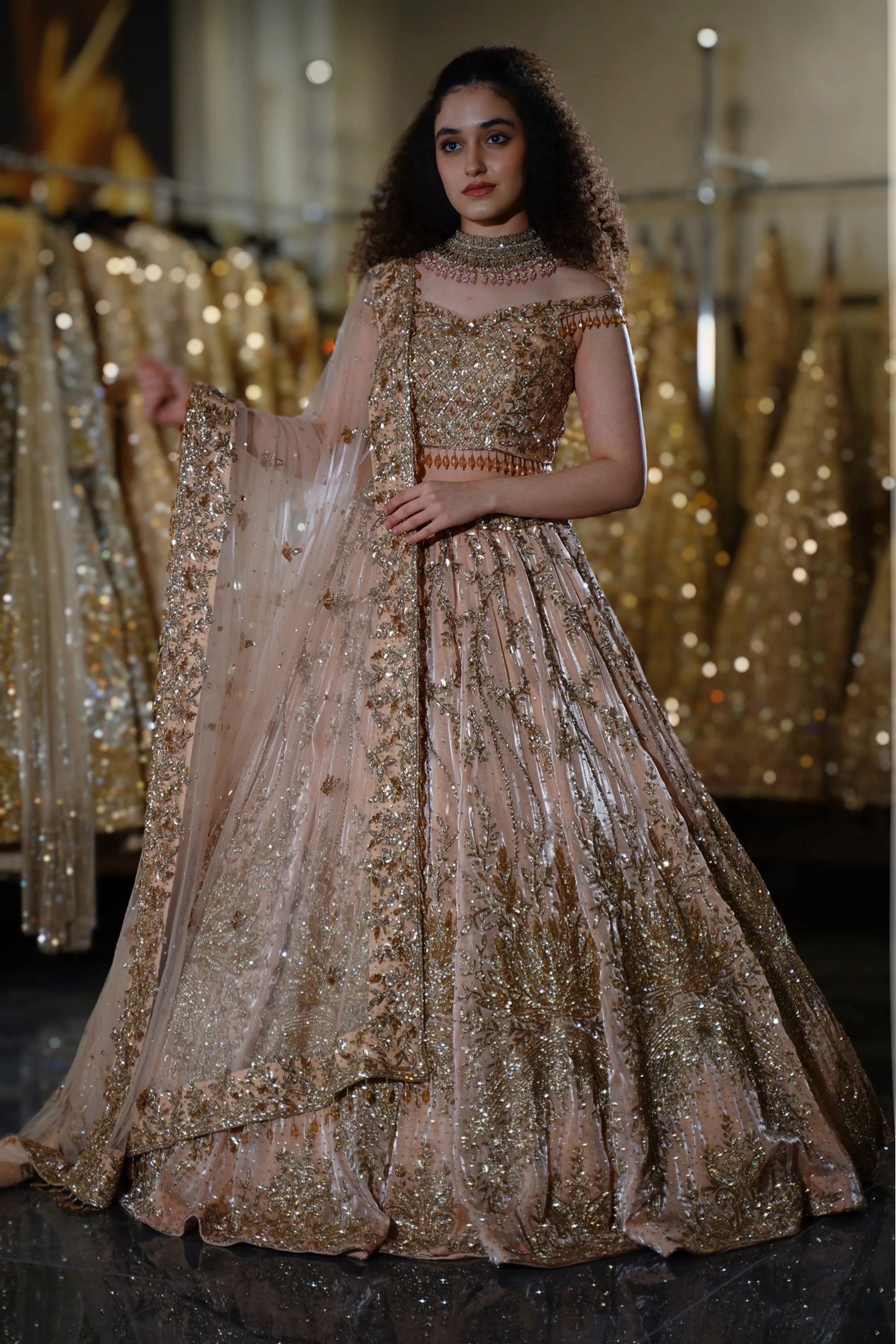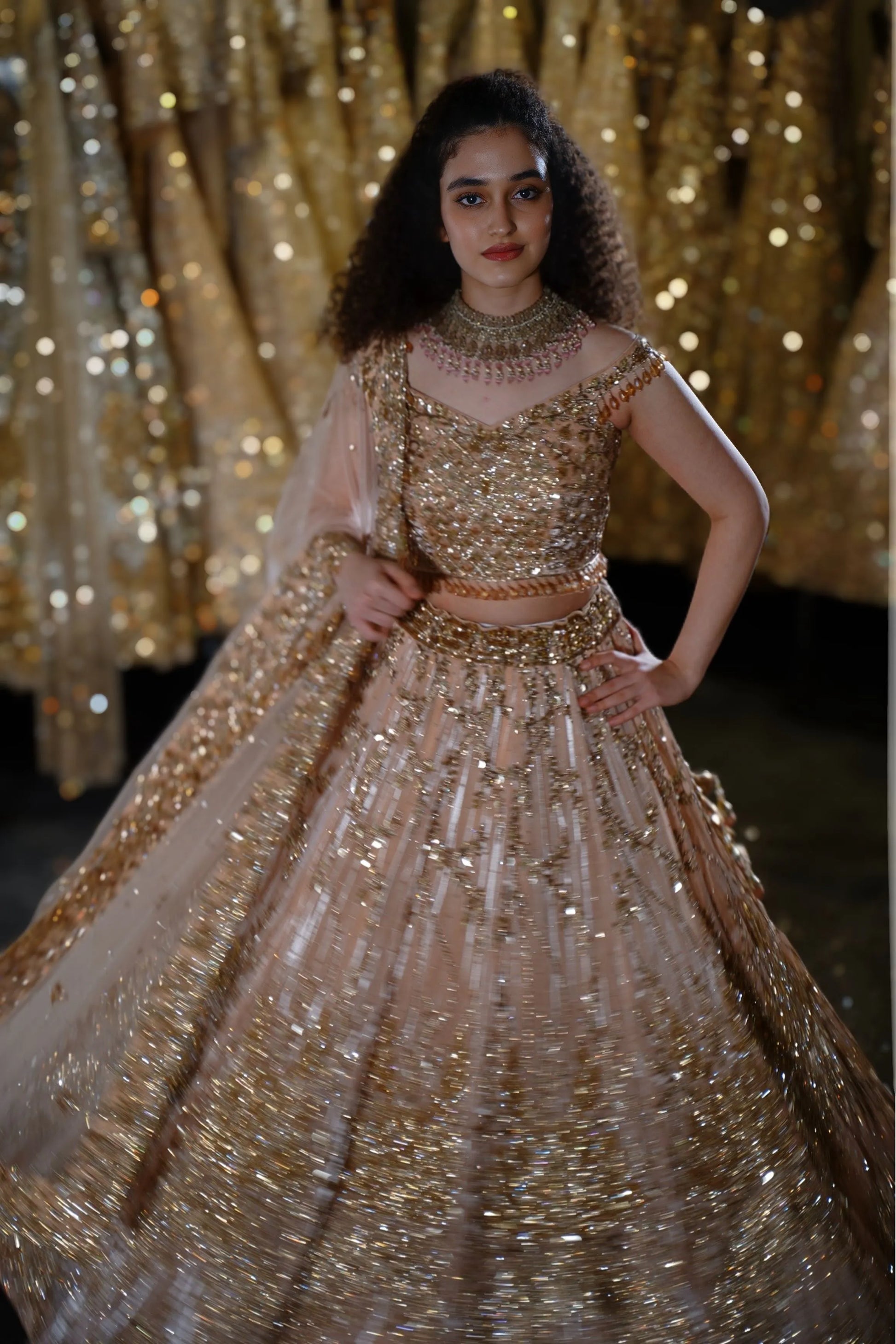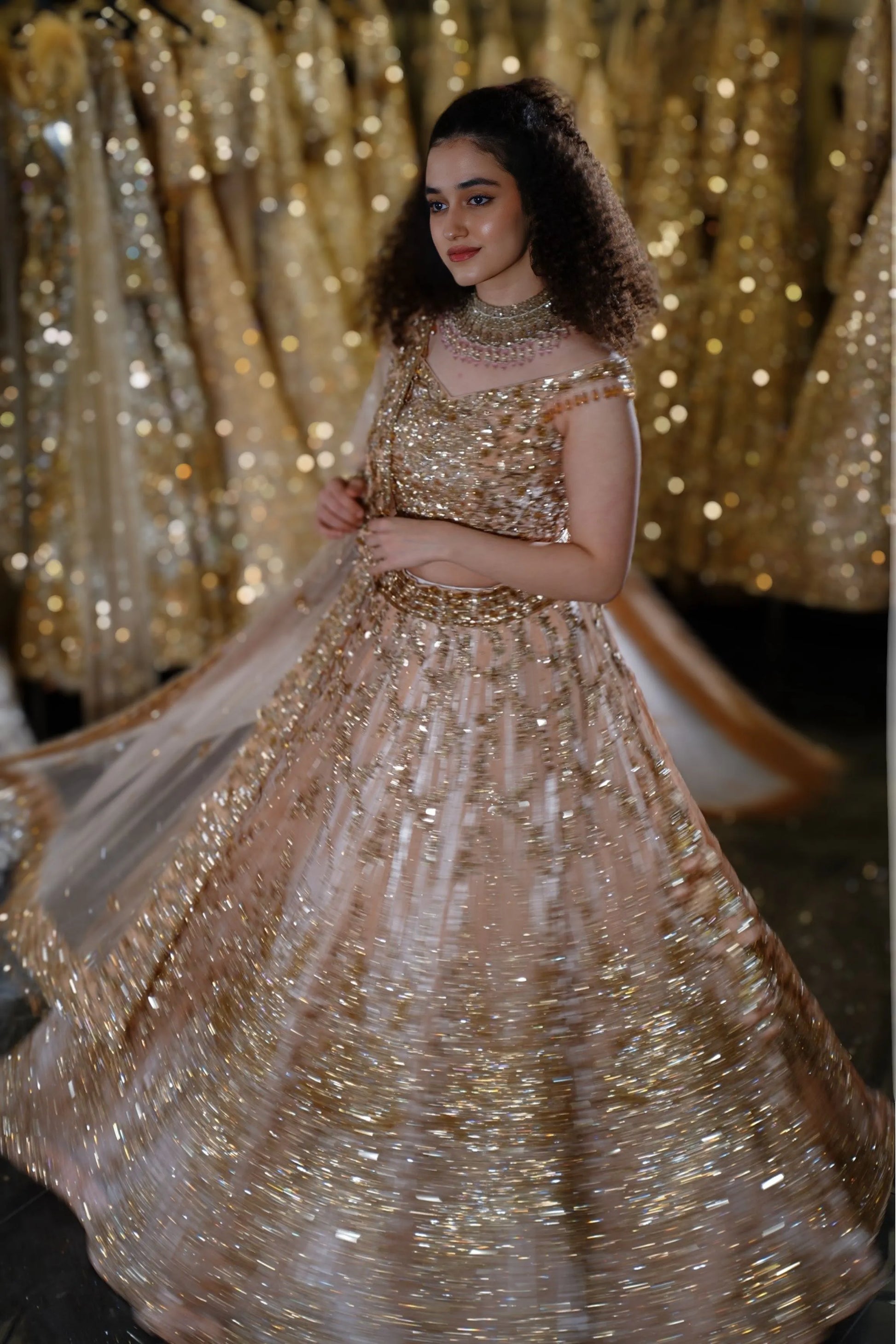 Champagne Gold Sequin Embellished Bridal Lehenga Choli