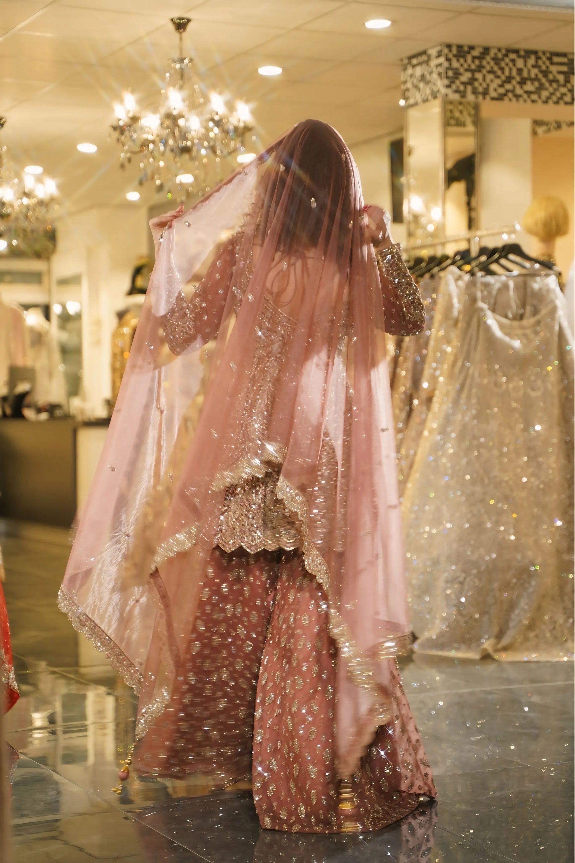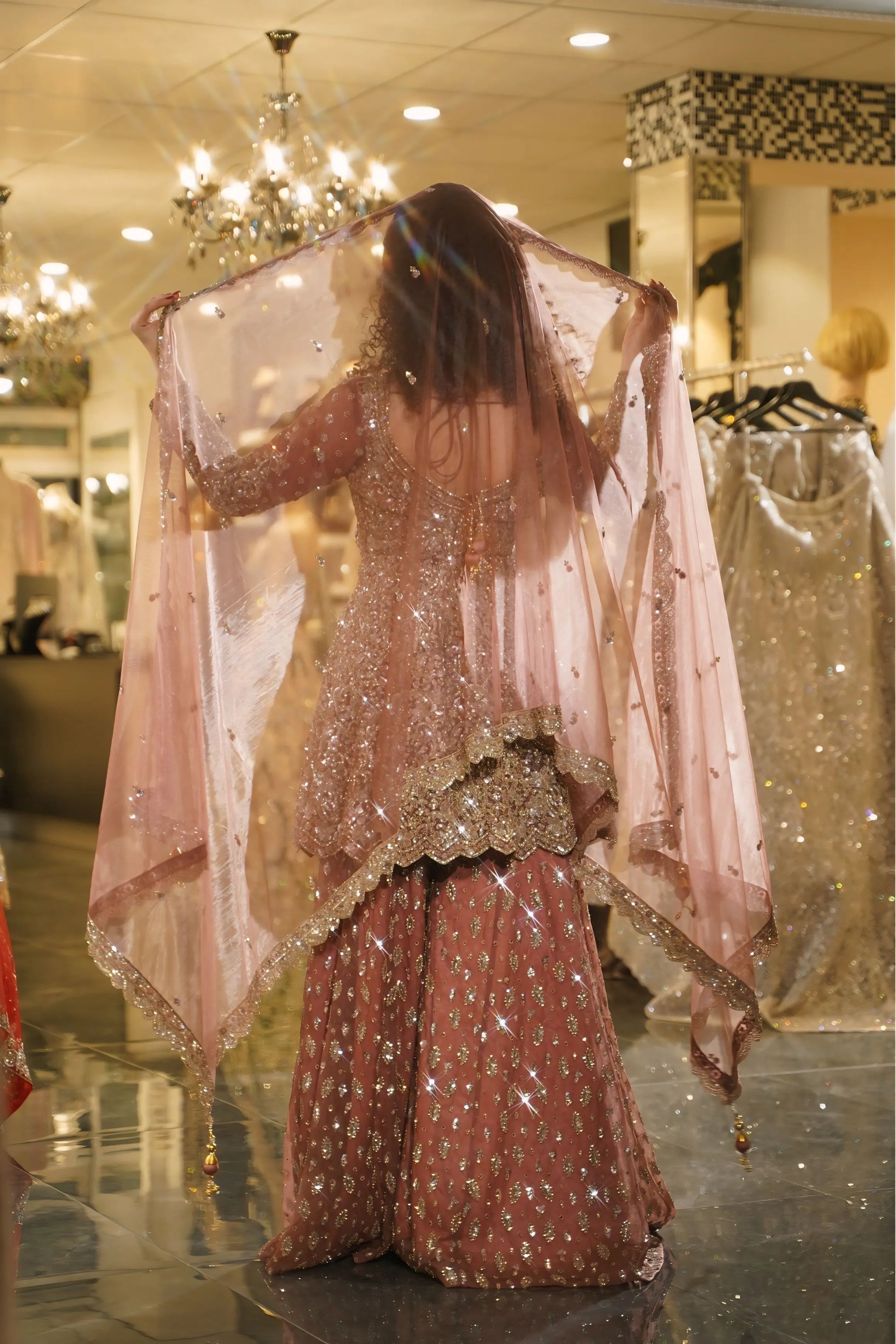 Rose Gold Sequin Embellished Bridal Sharara Set