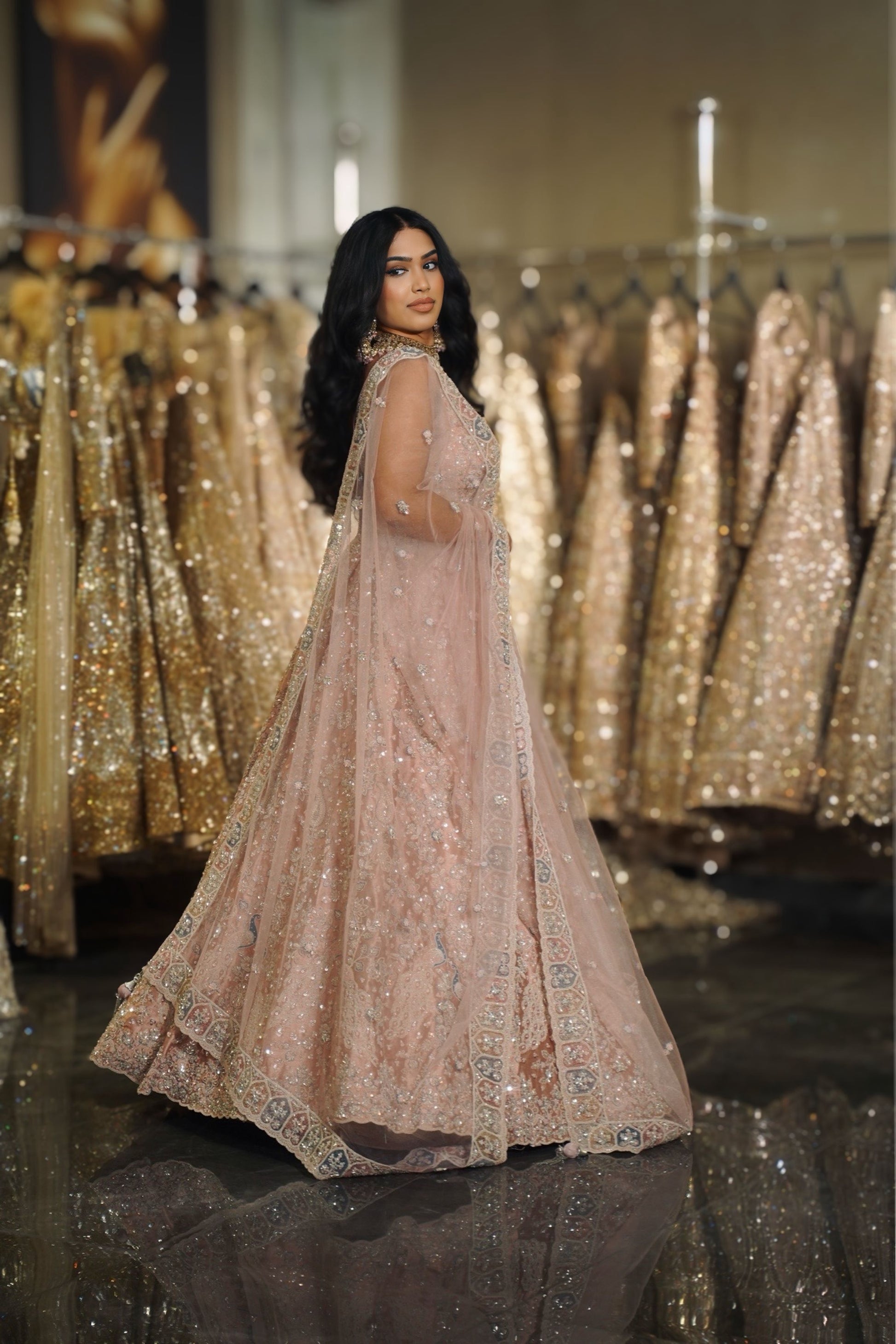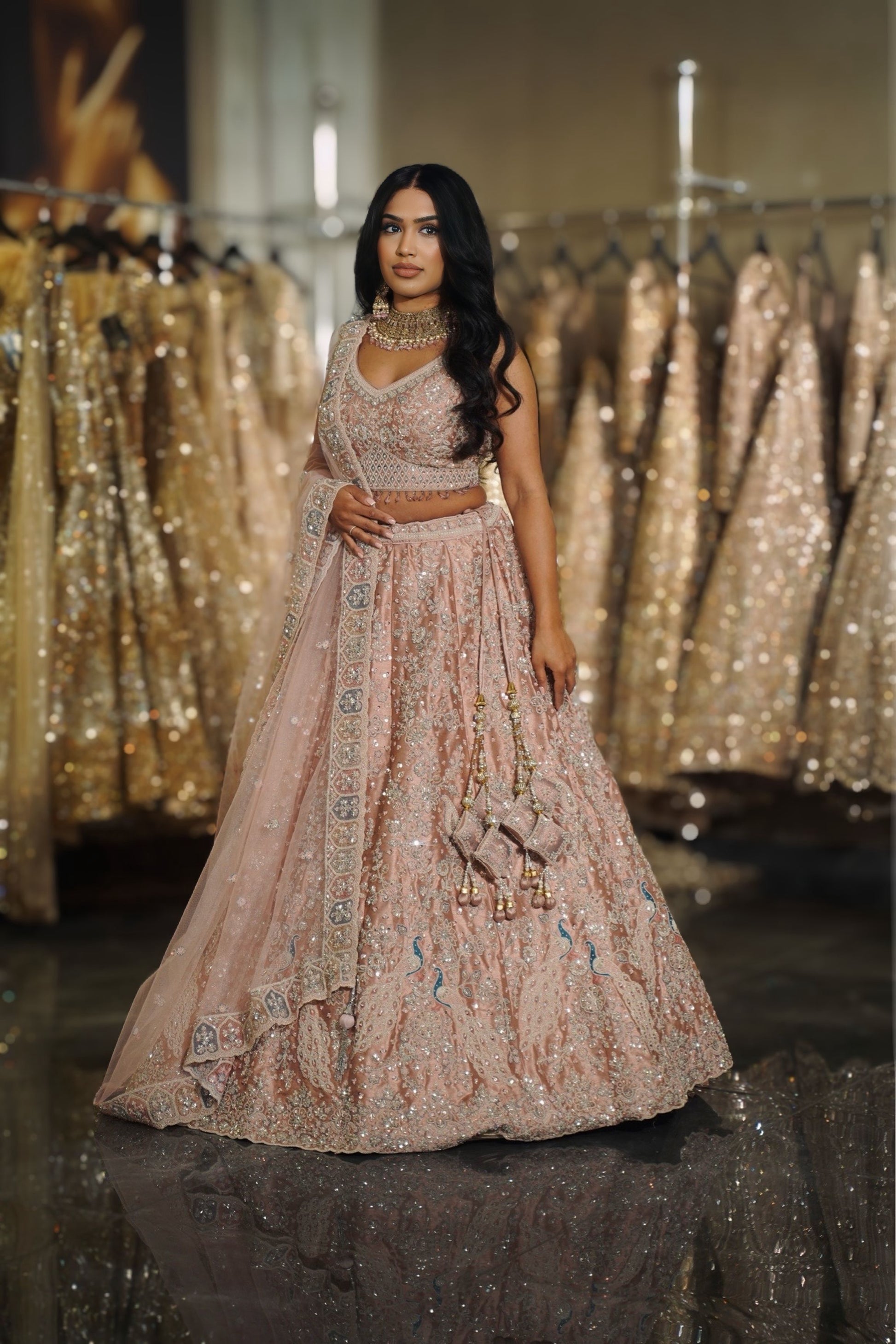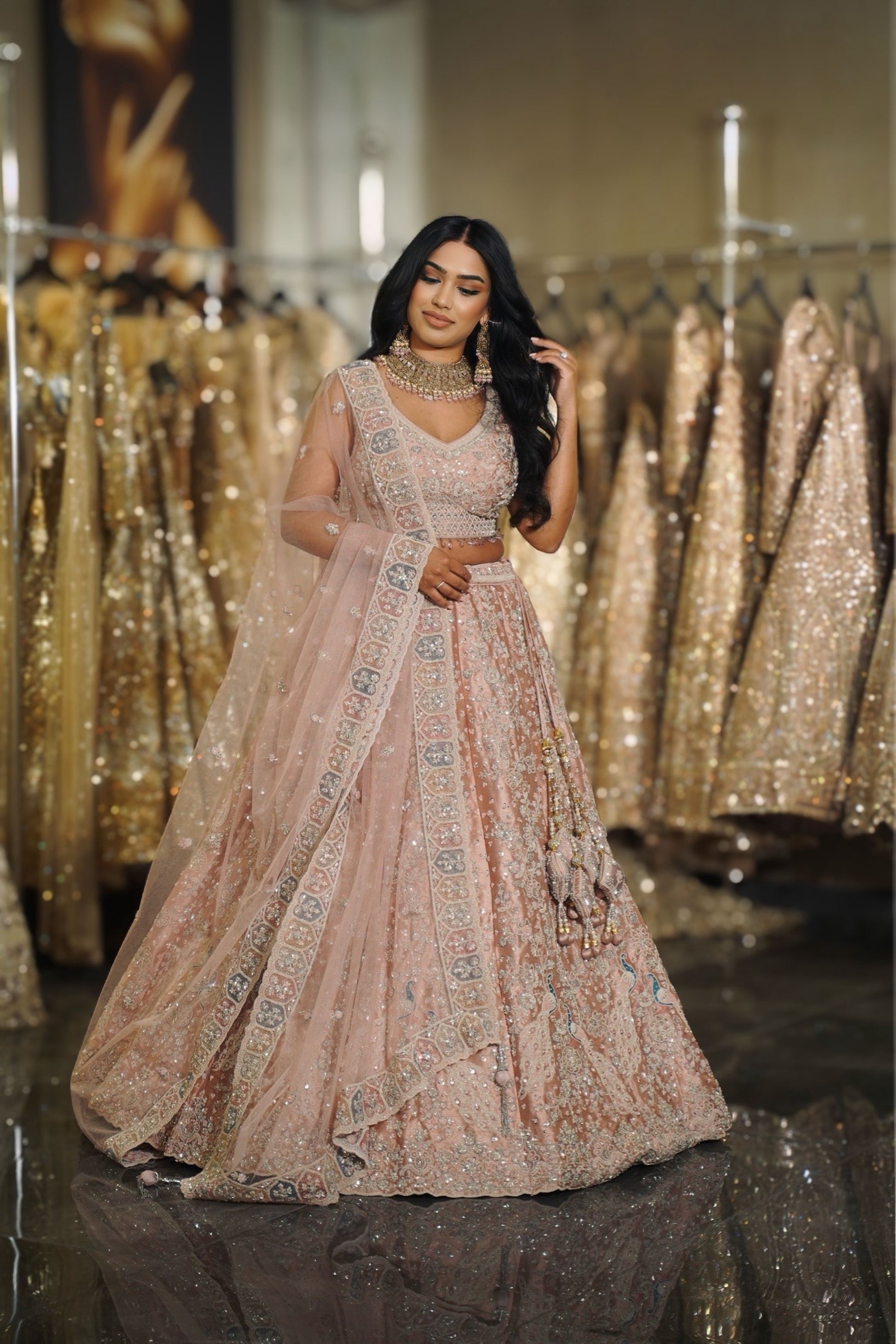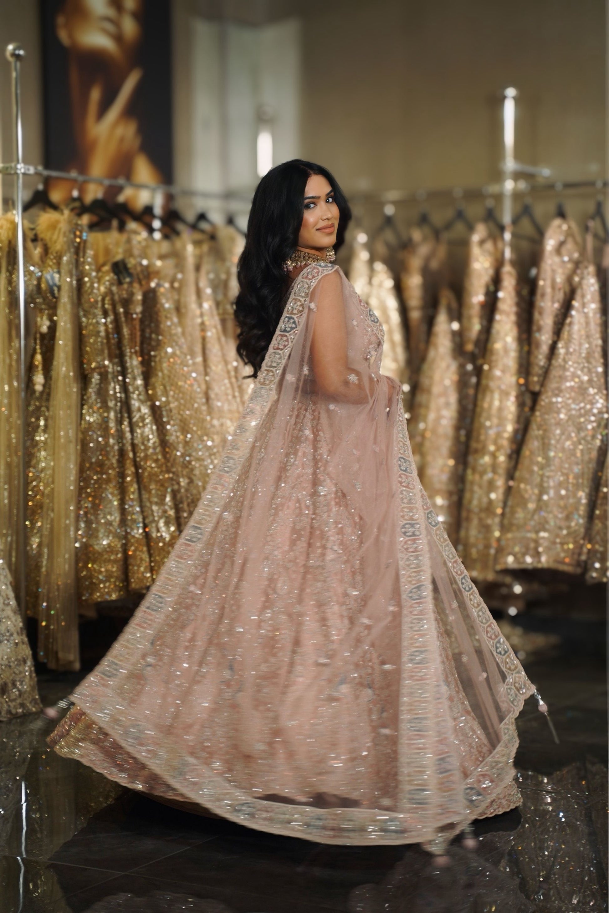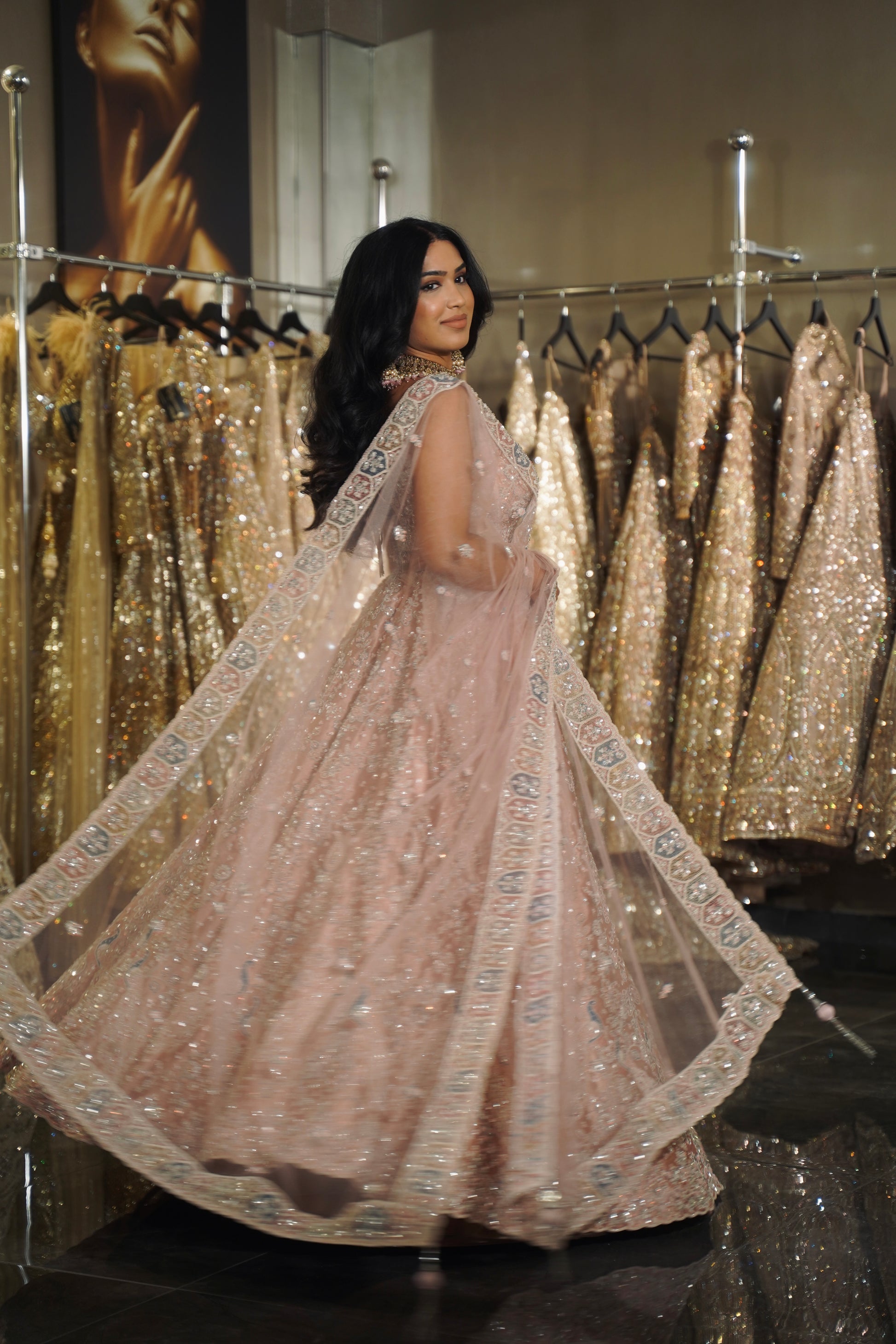 Blush Pink Pastel Multi-Colored Border & Sequin Embroidered Lehenga Set