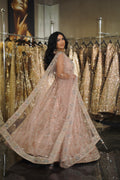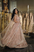 | Dupatta | Sheer blush net dupatta featuring a statement border with pastel blue/mint geometric accents |