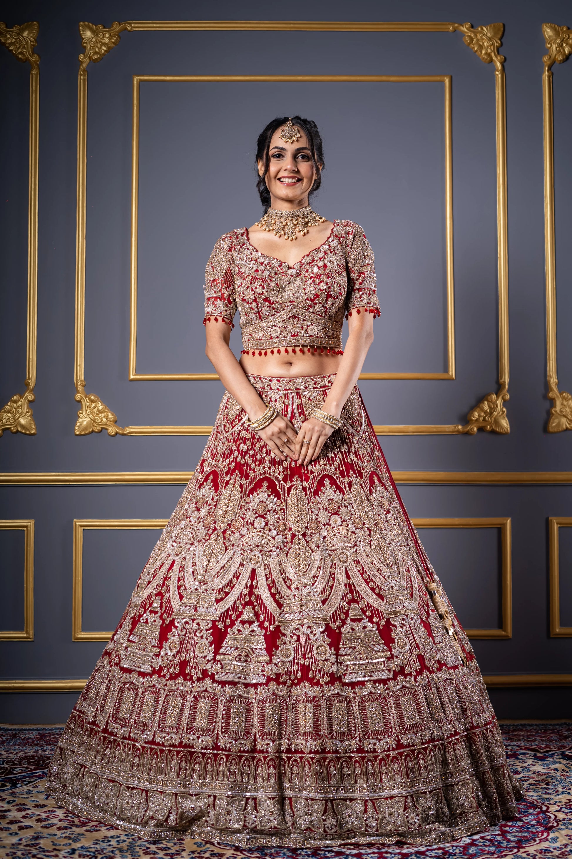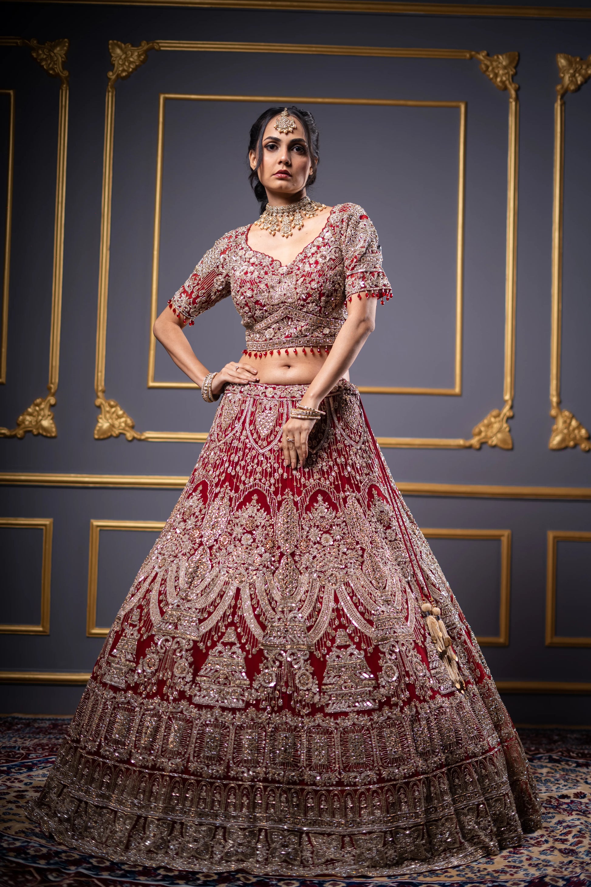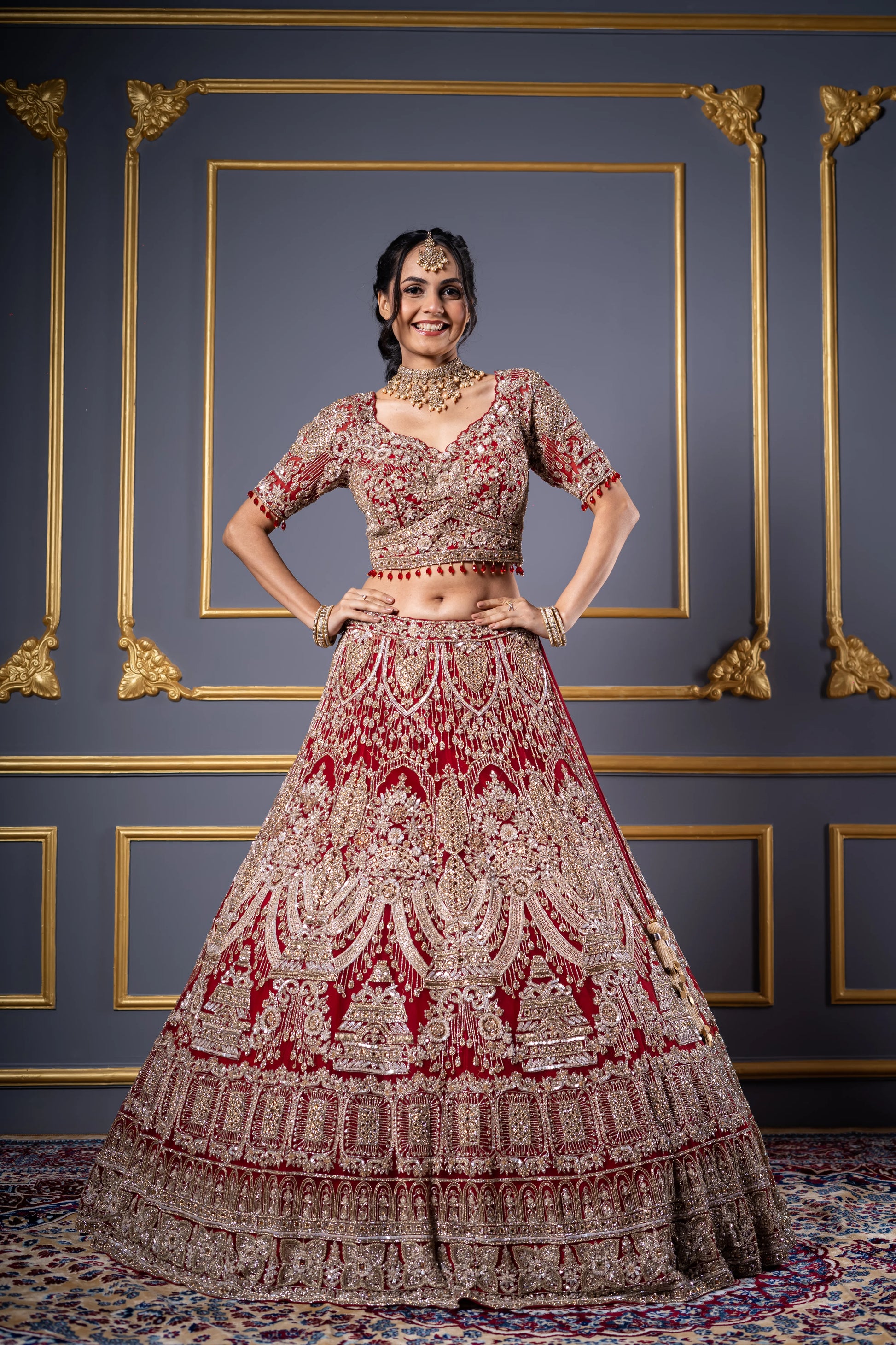 Crimson Empress Heavy Zari Bridal Lehenga Choli