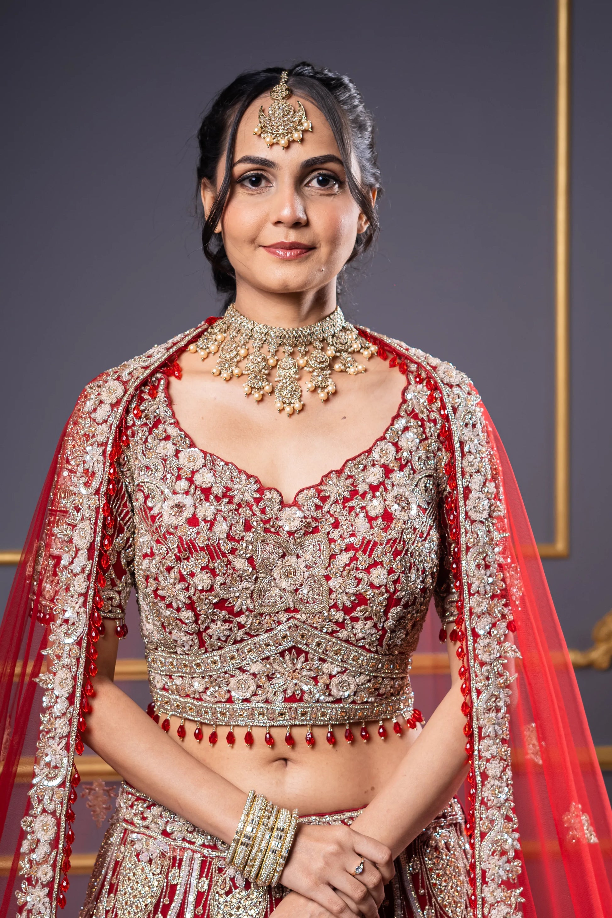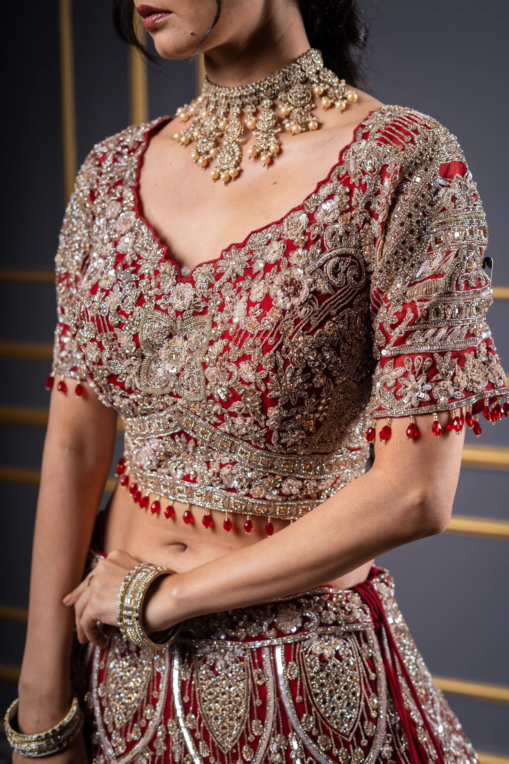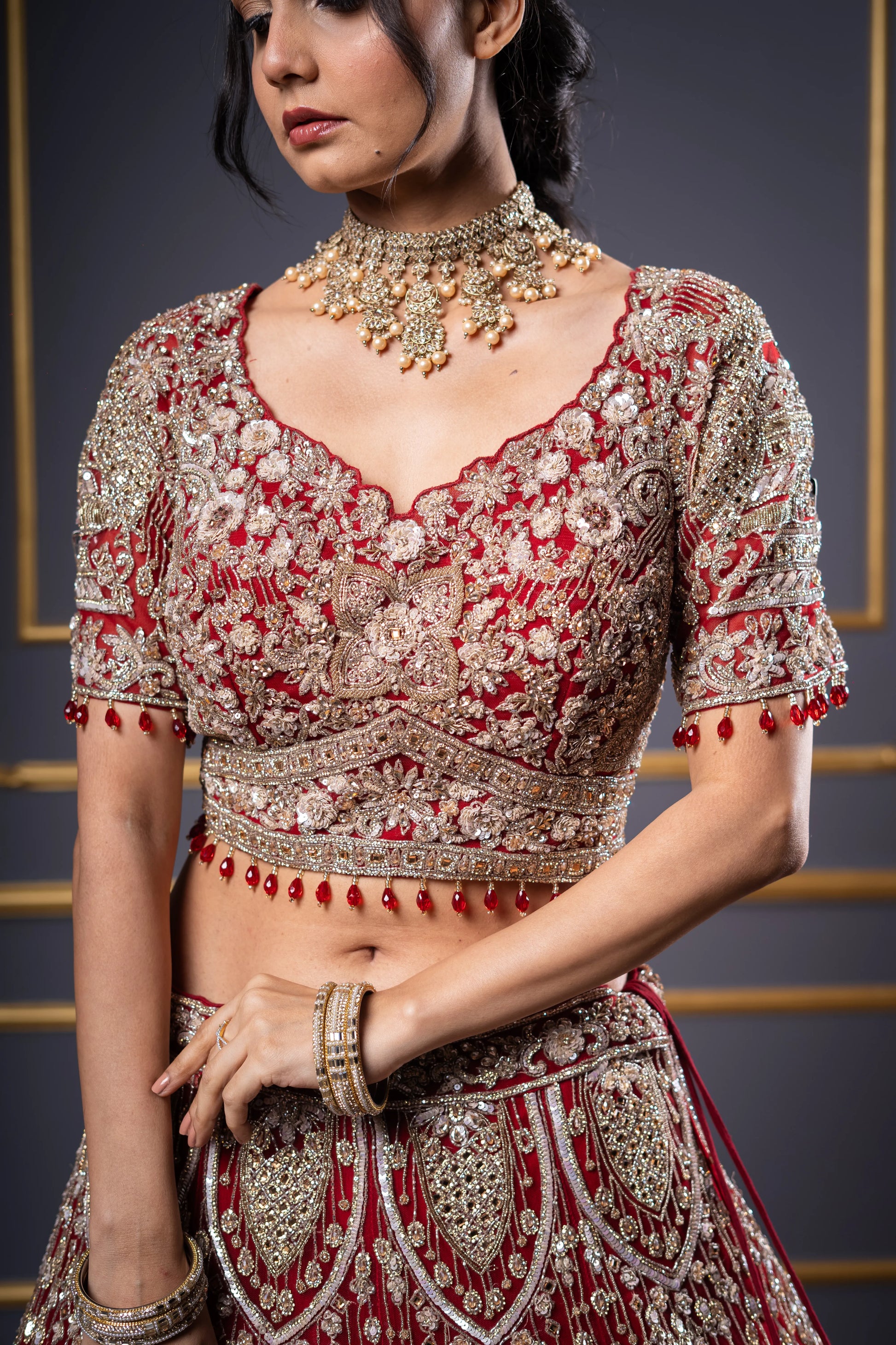 Crimson Empress Heavy Zari Bridal Lehenga Choli