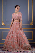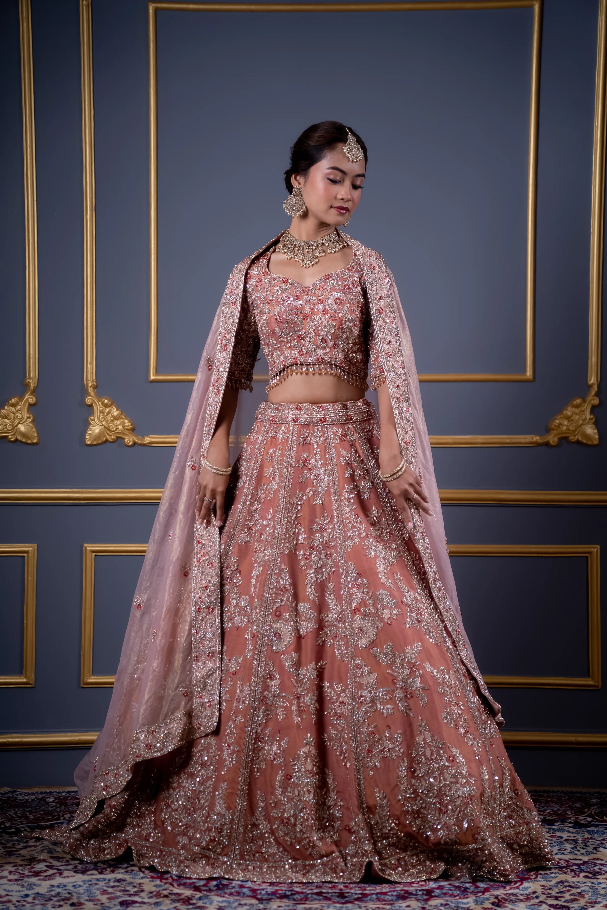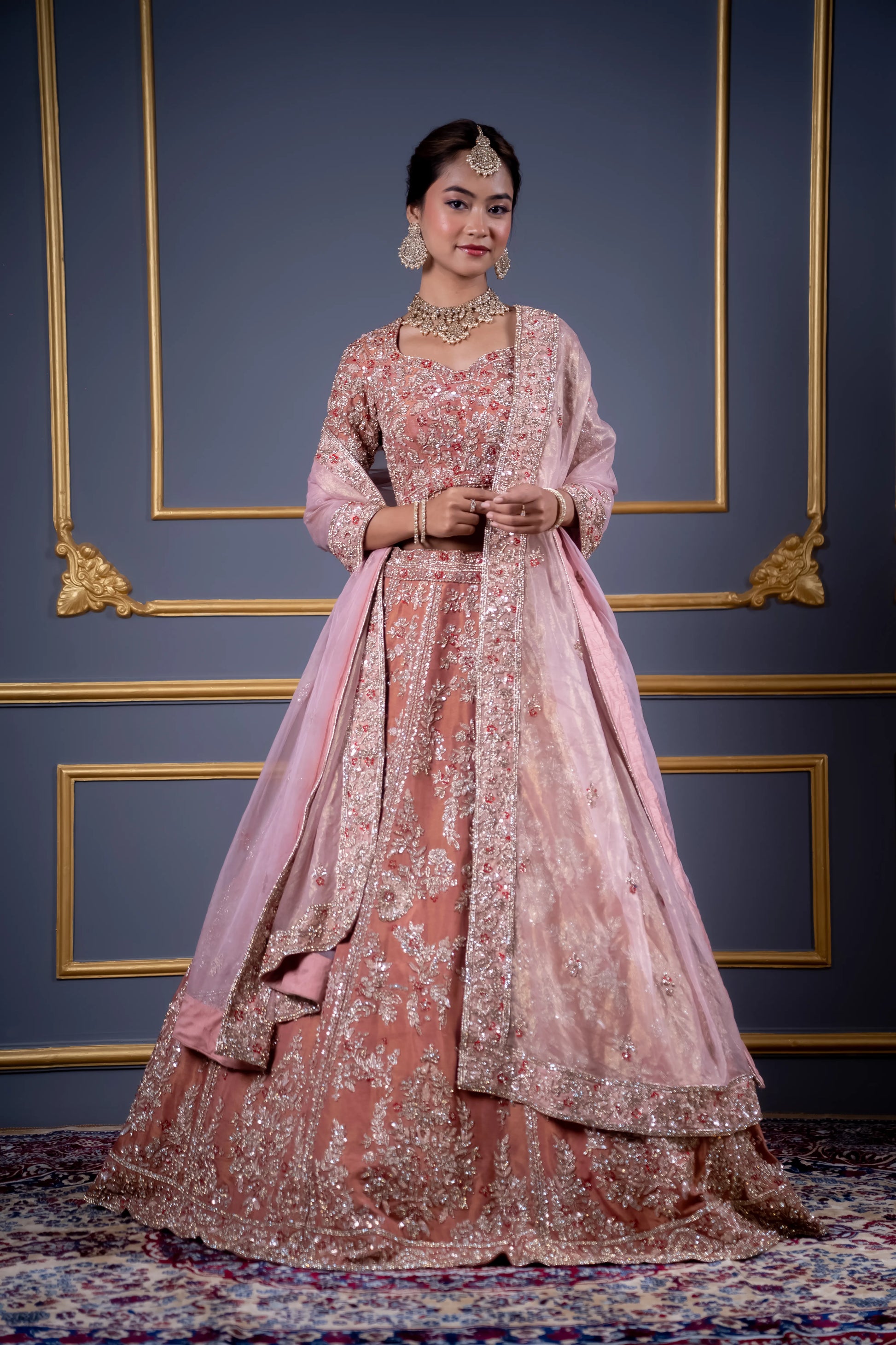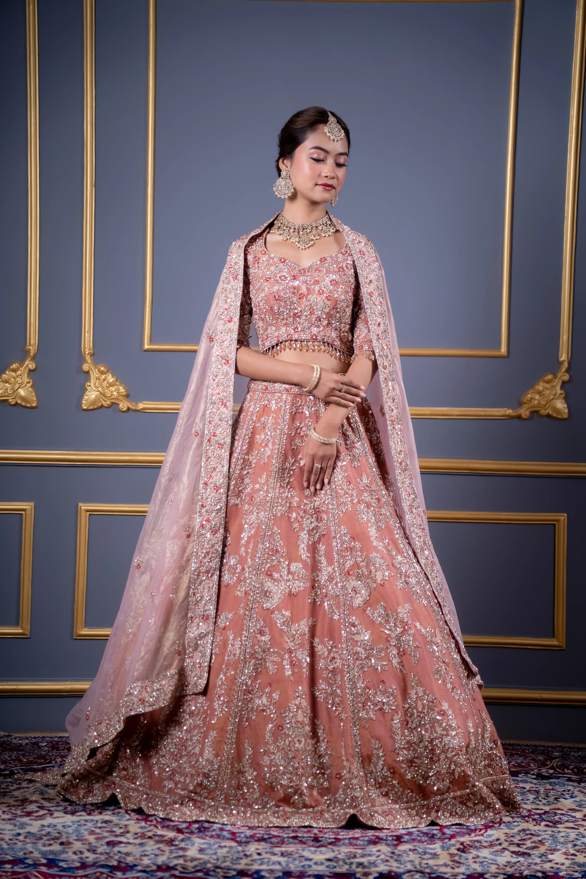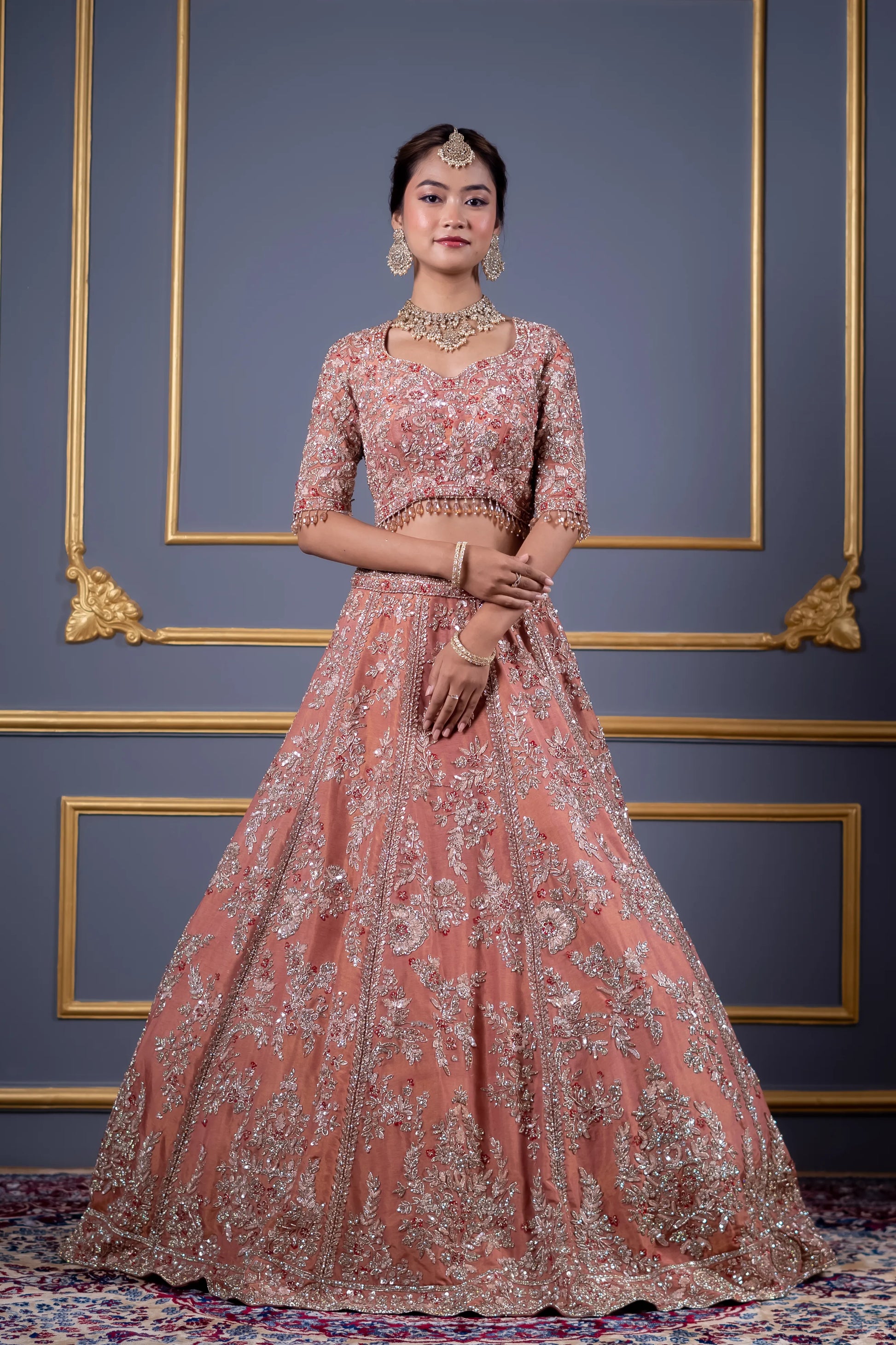 Dusty Peach Floral Embroidered Bridal Lehenga