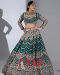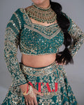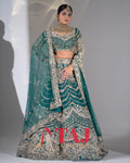 Emerald Green Scalloped Heavy Zardosi Embroidered Bridal Lehenga