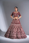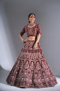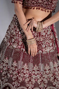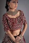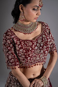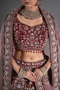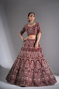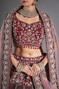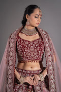 Deep Maroon Velvet Silver Zardosi Embroidered Bridal Lehenga