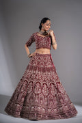 Command the spotlight with this breathtaking Deep Maroon Bridal Lehenga. A vision of regal sophistication, this ensemble features a rich burgundy velvet base that serves as a dramatic canvas for dense, shimmering silver zardosi work. Designed for the bride who wants to blend the warmth of tradition with the cooling sparkle of silver, this outfit is an absolute masterpiece for winter weddings and grand evening receptions.
