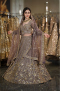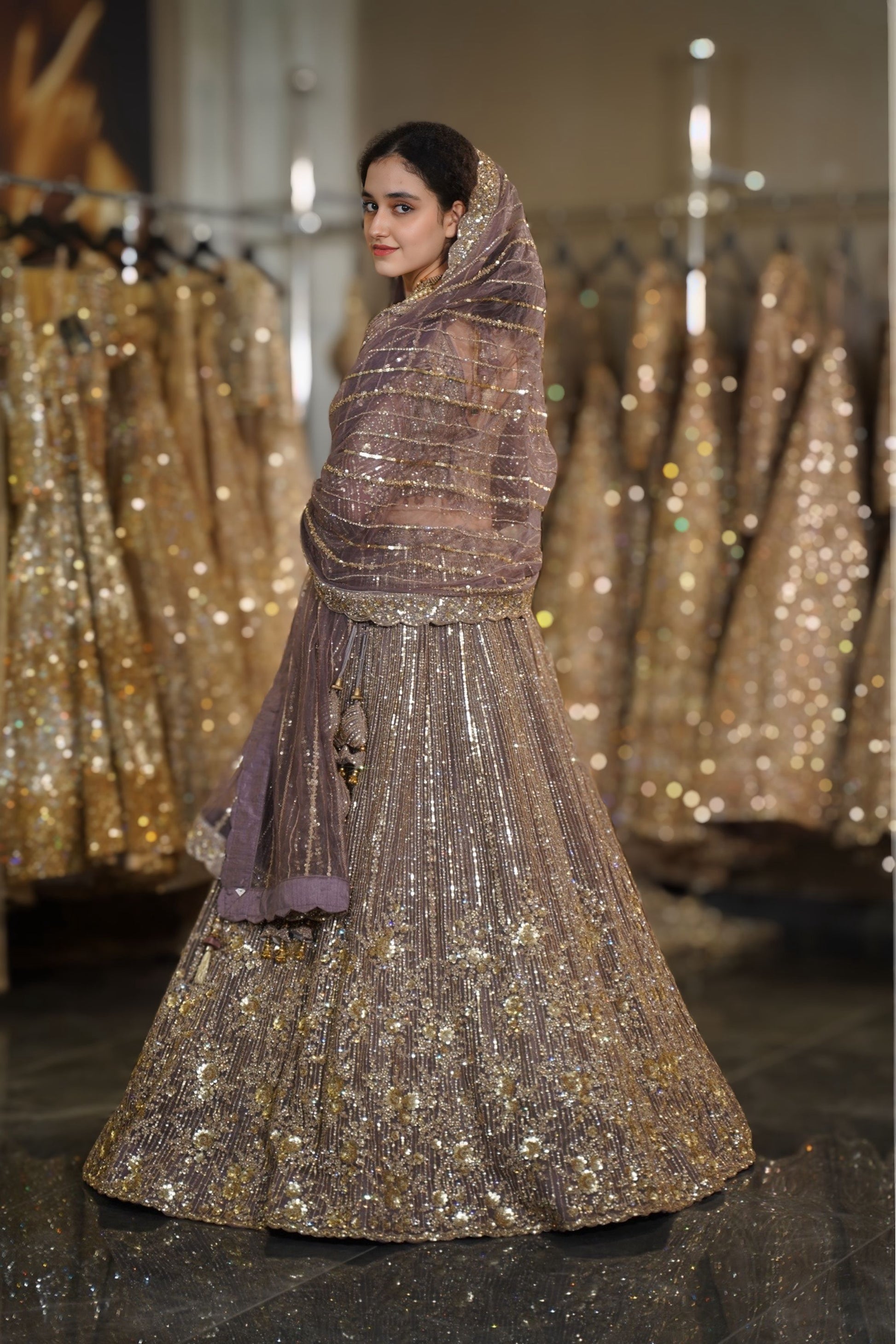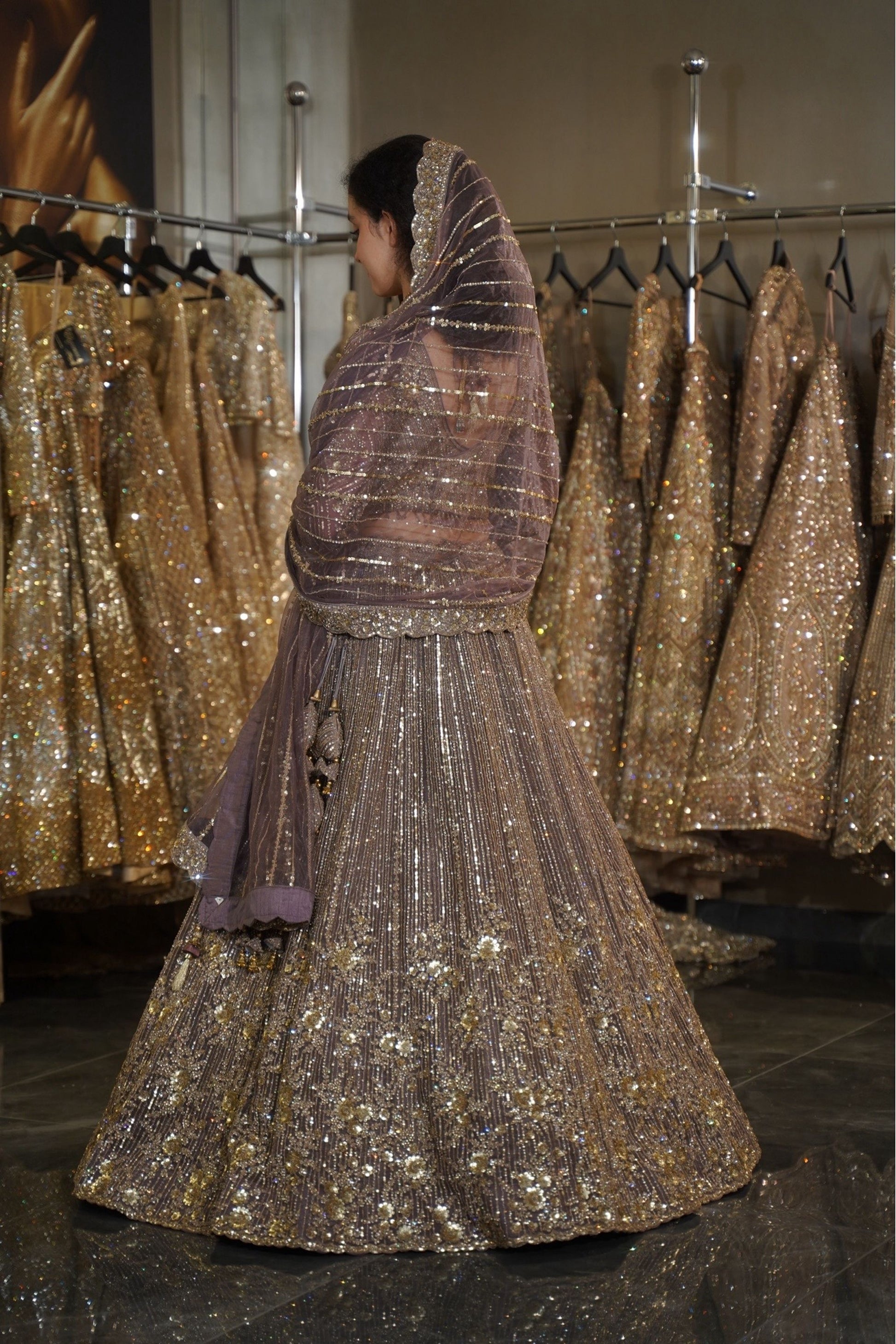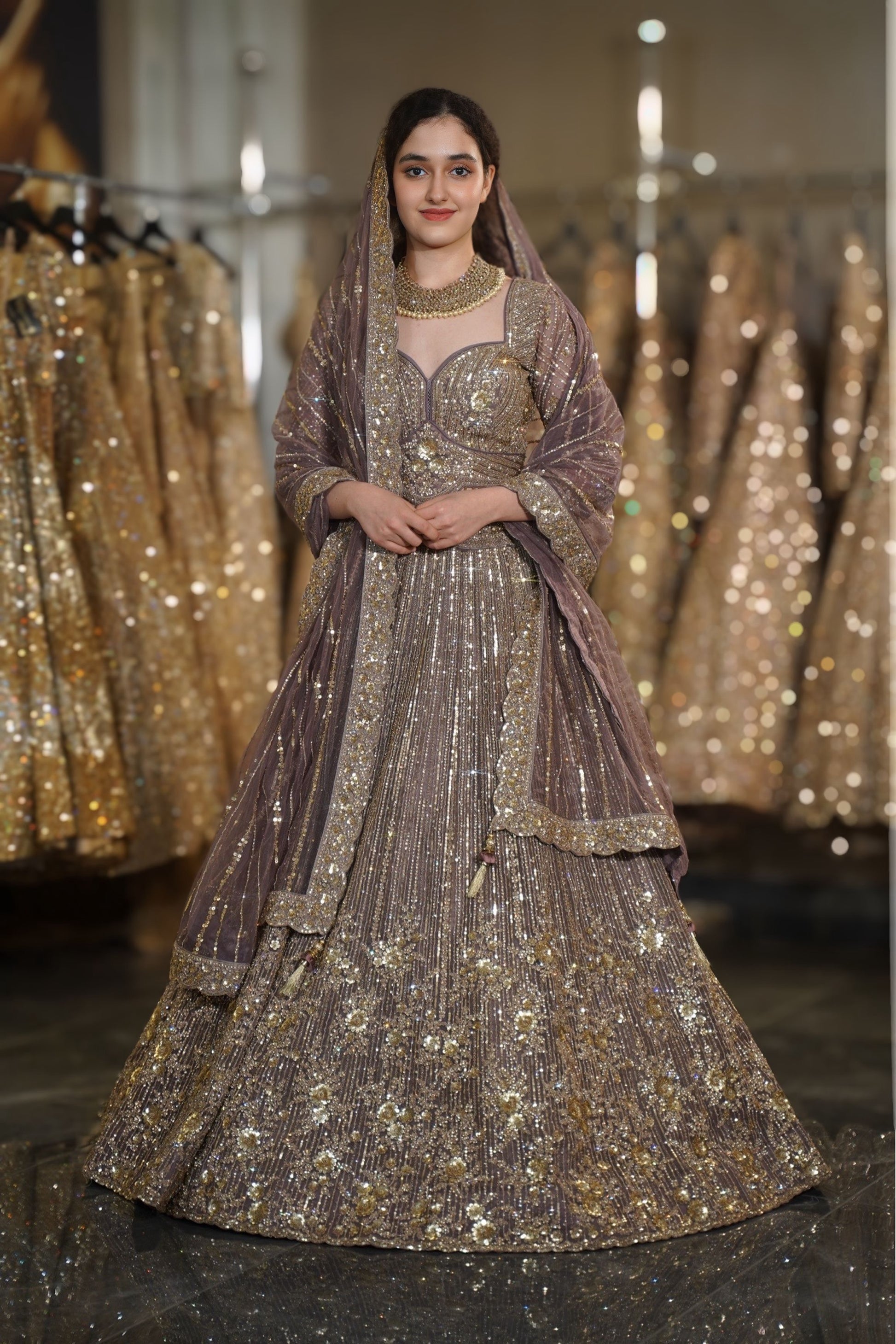 Taupe Mauve Linear & Floral Sequin Embroidered Lehenga Set