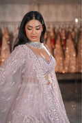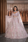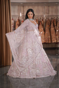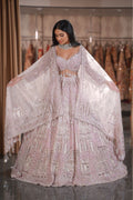 Lilac Pink Architectural Dome & Crystal Fringe Bridal Lehenga