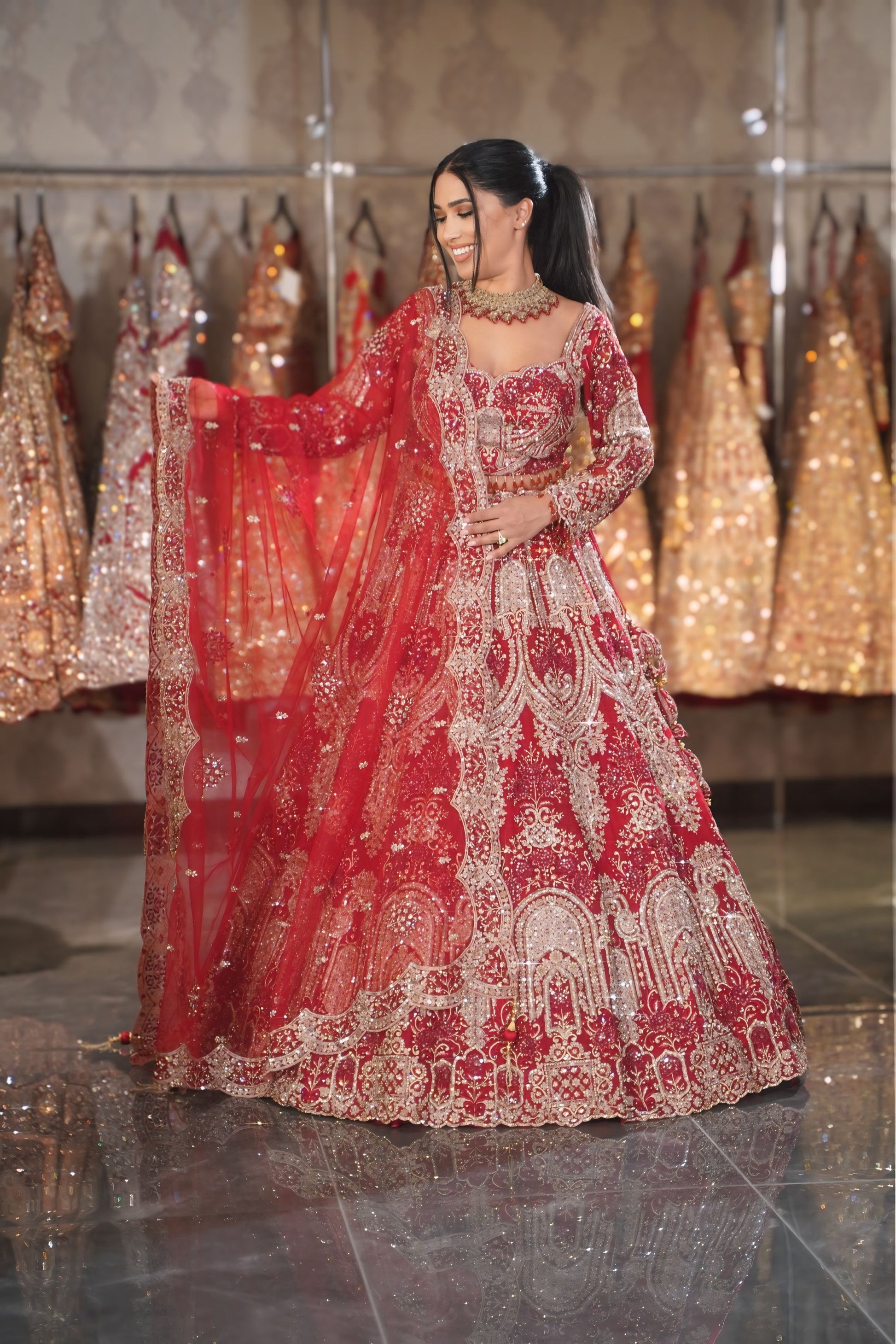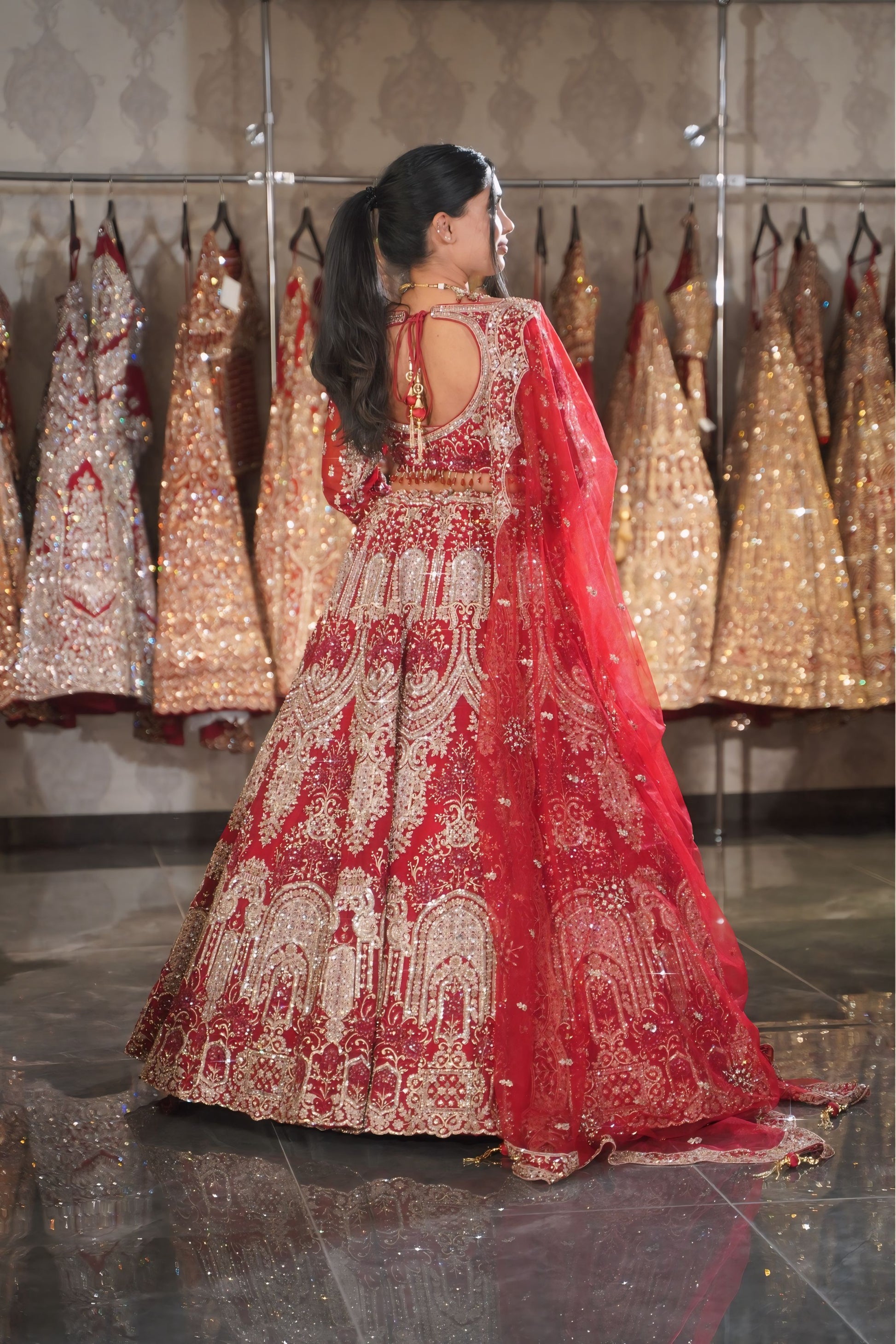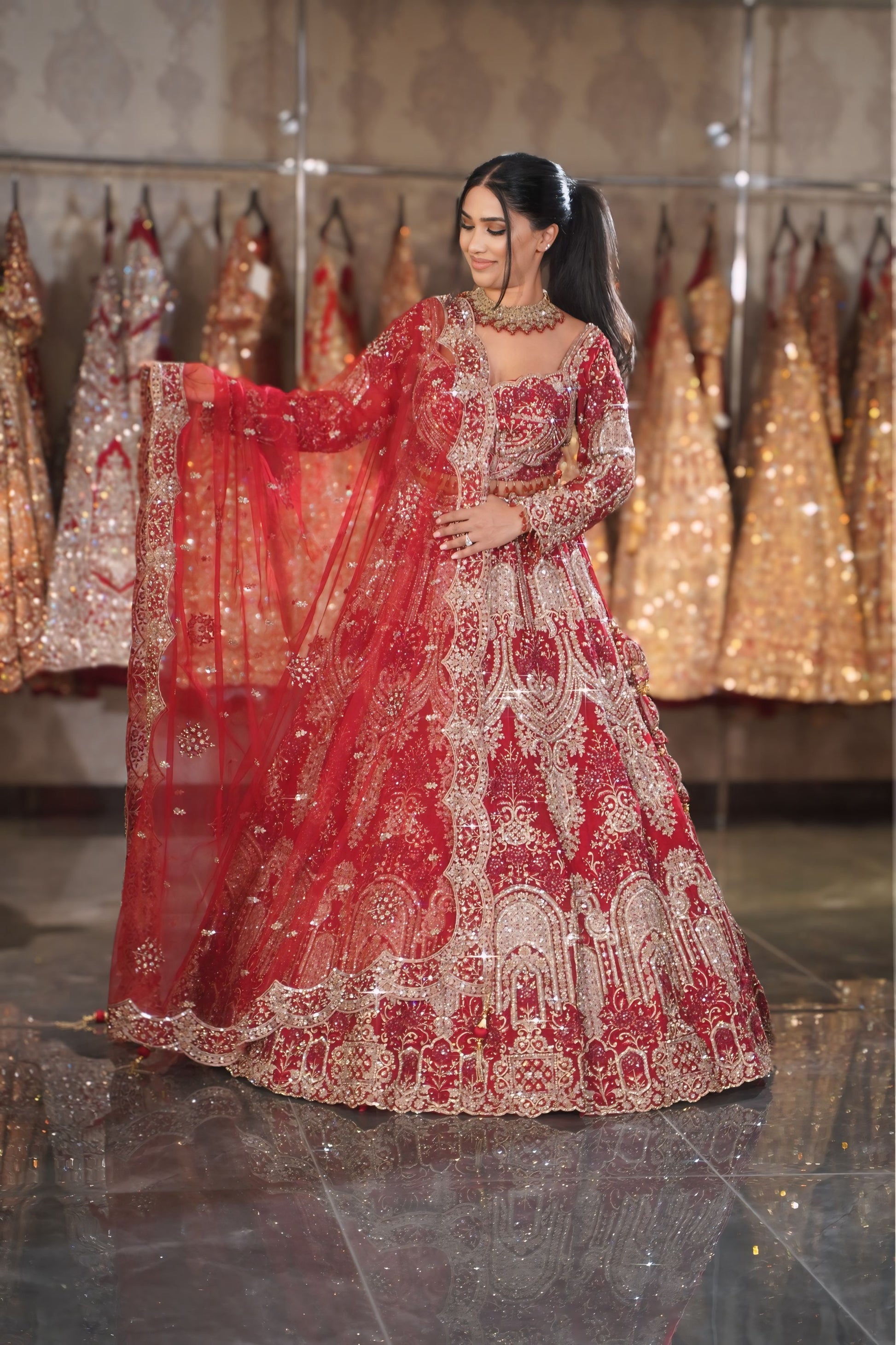Classic Scarlet Red Royal Bridal Lehenga Set