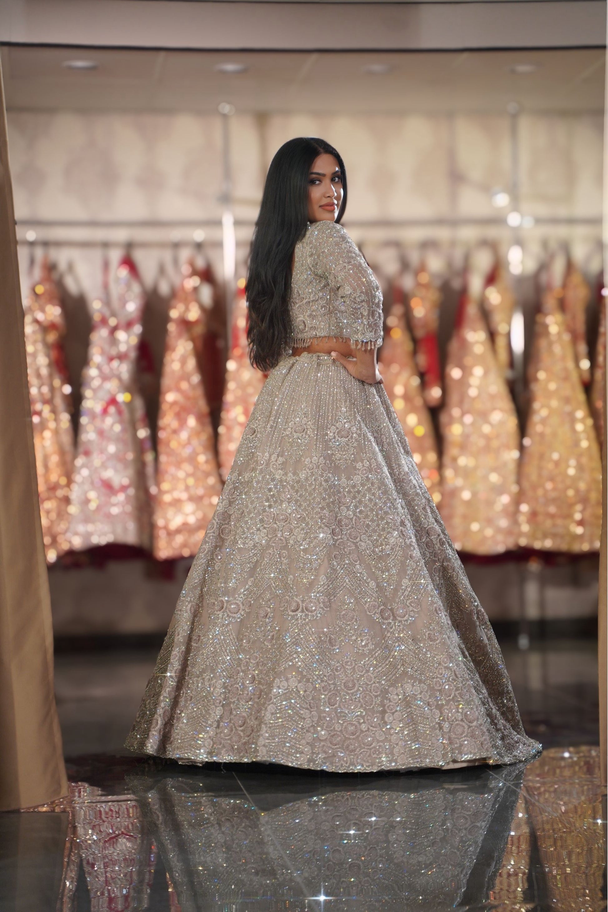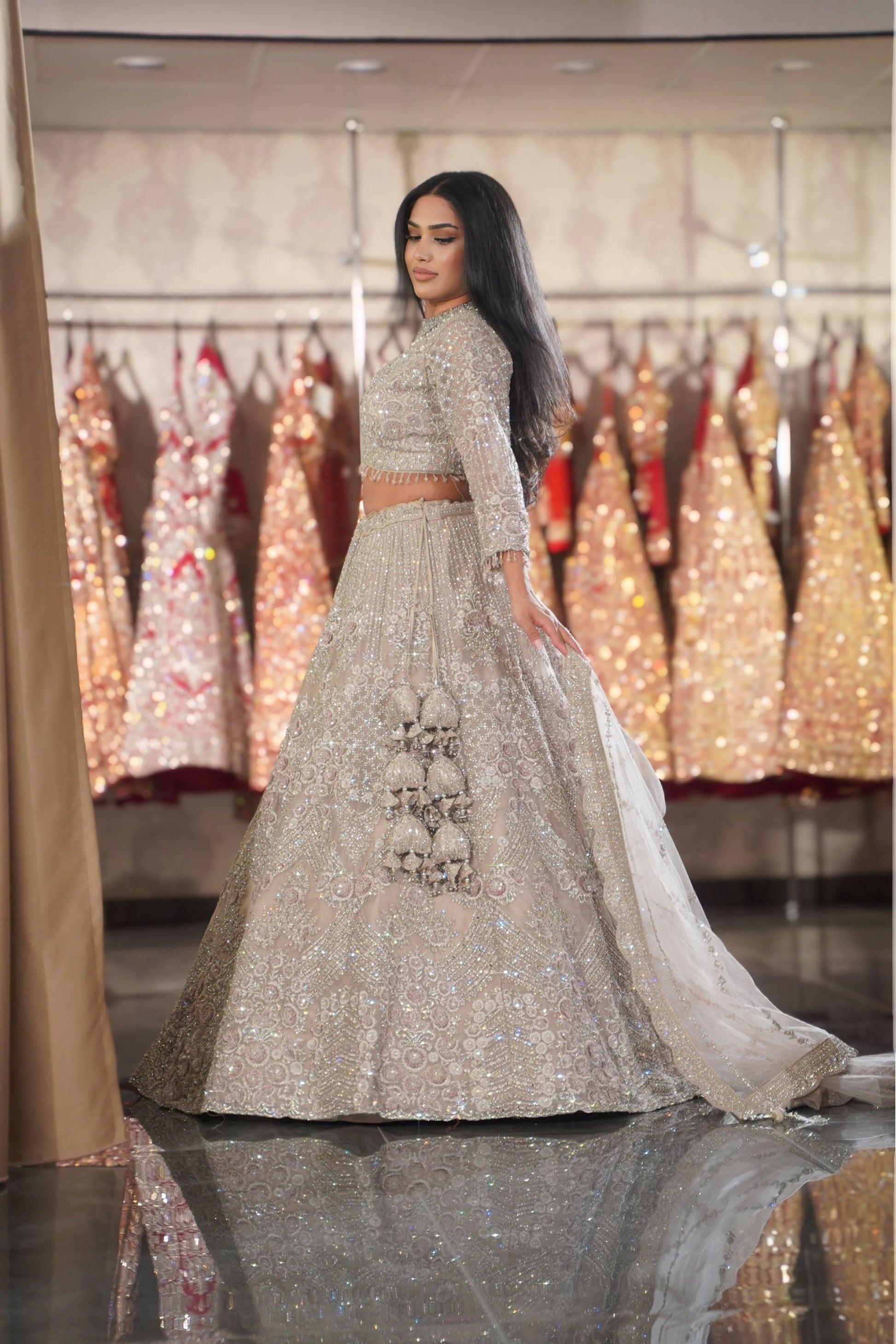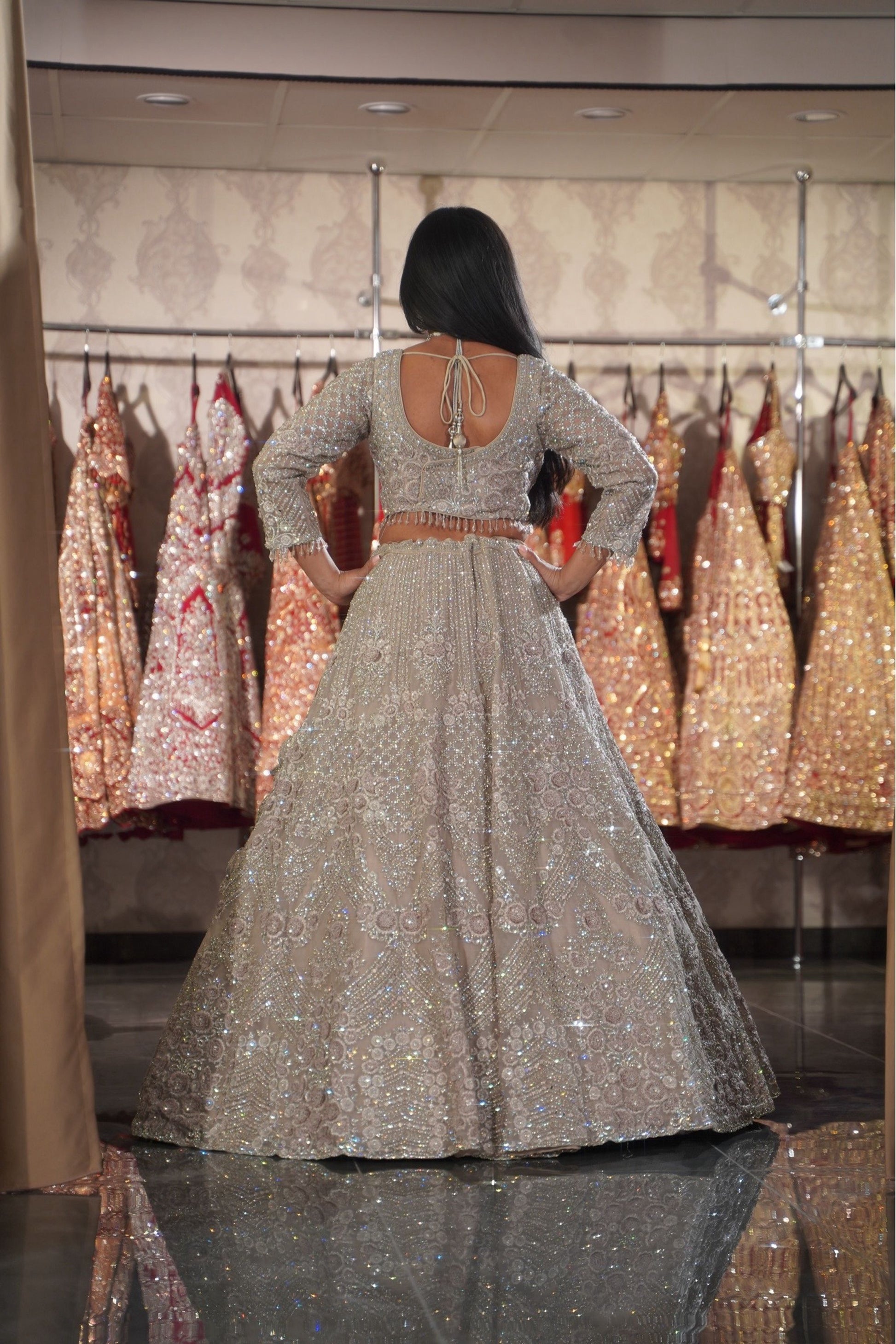 Dove Grey Silver Stardust Bridal Lehenga Set