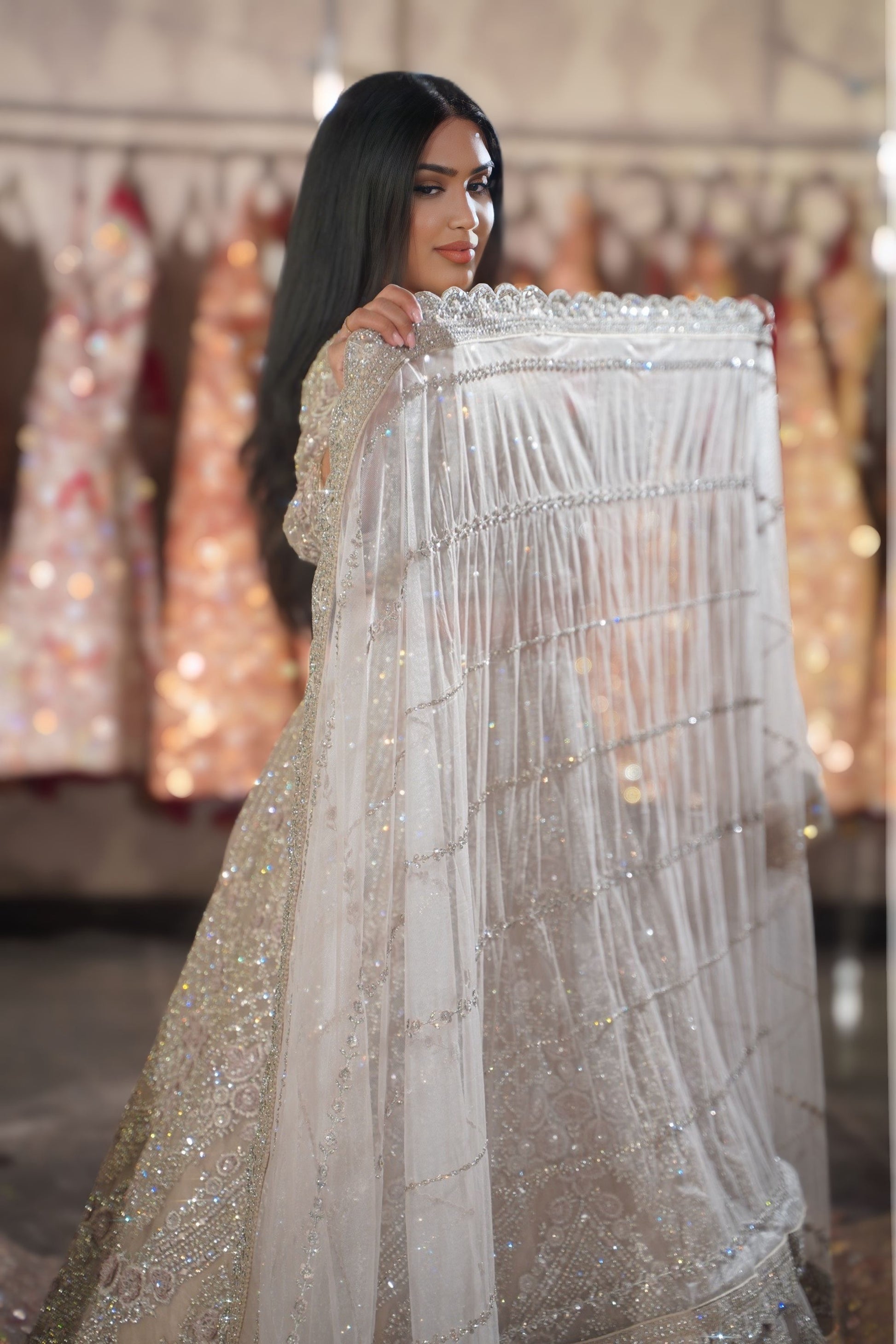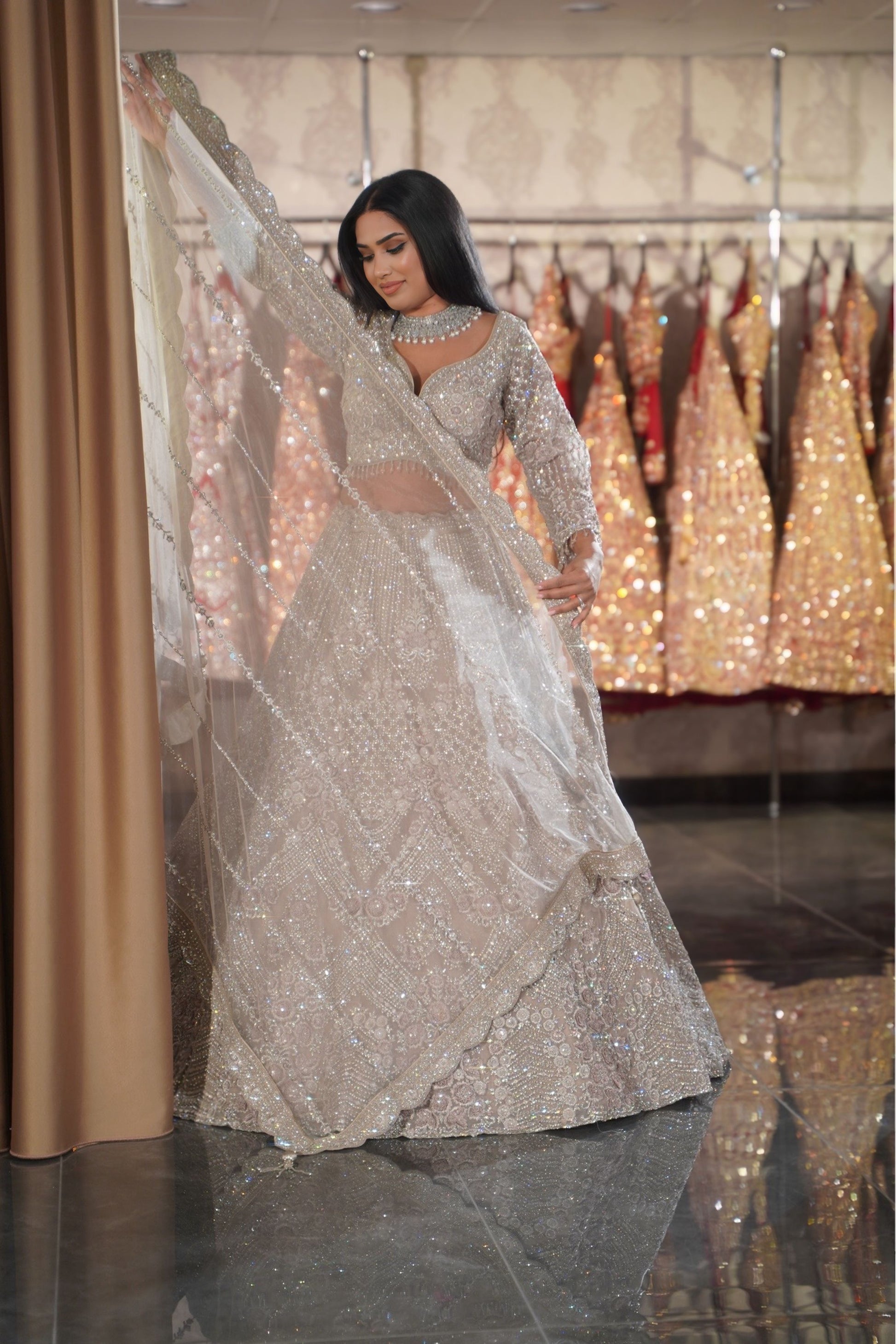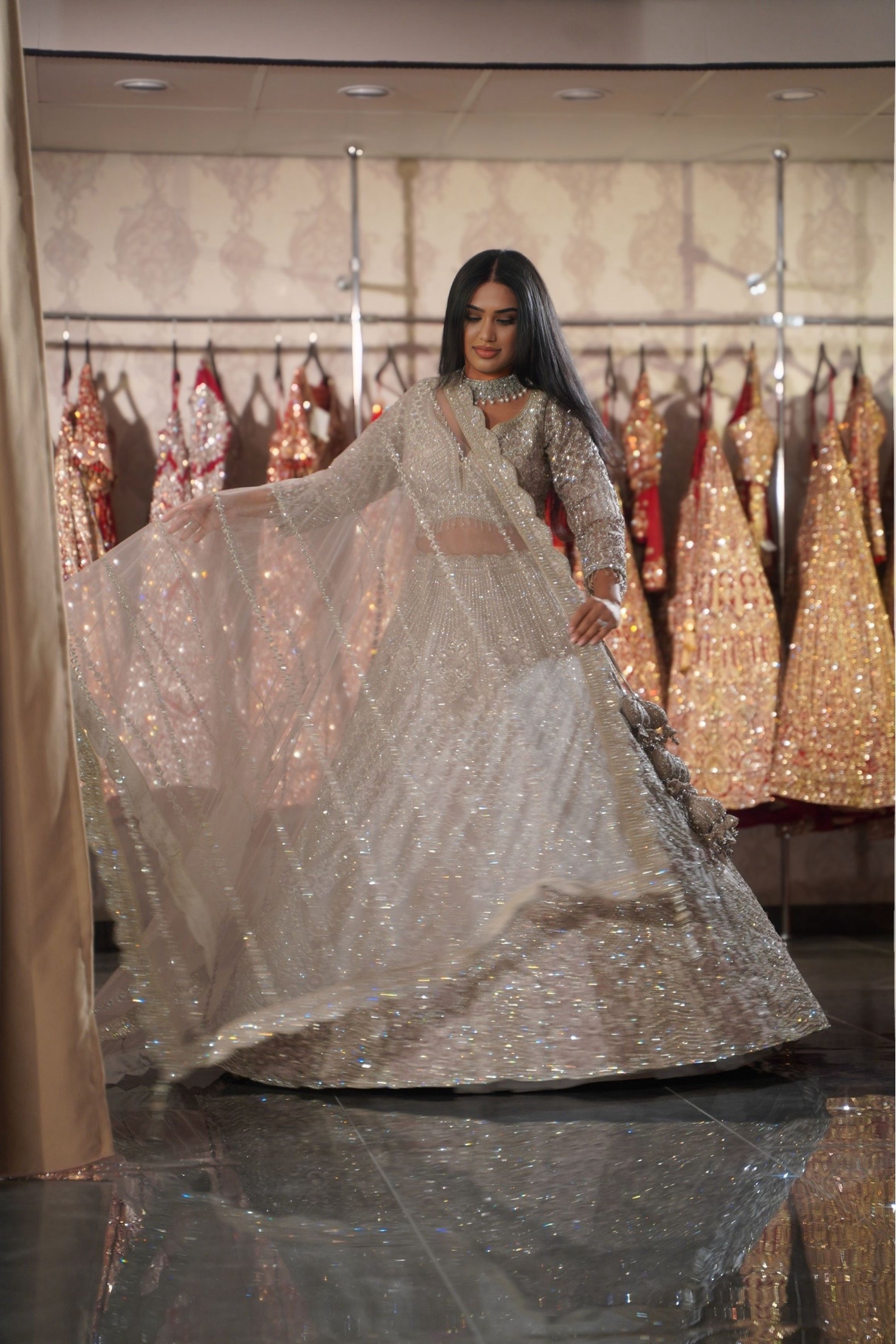 Dove Grey Silver Stardust Bridal Lehenga Set