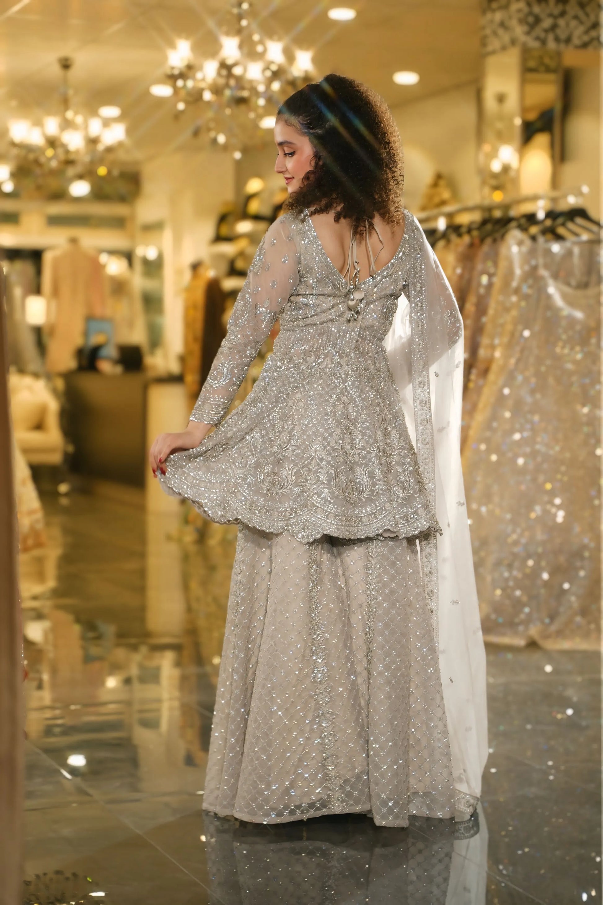 - Style: Contemporary Sharara Set with Peplum Kurta
