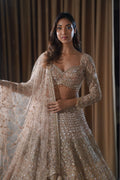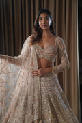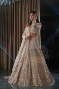 | Dupatta | Sheer champagne net dupatta with heavily embroidered border and scattered embellishment |
