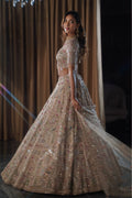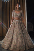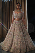 Step into a world of enchanted gardens with this exquisite Champagne Blush Bridal Lehenga. A masterpiece that captures the delicate beauty of a blooming garden, this ensemble features intricate floral embroidery across a shimmering champagne-gold base. The soft metallic canvas is brought to life with vibrant pink, mauve, and pastel floral motifs, creating a romantic yet regal aesthetic. Perfect for the bride who desires feminine elegance with a touch of whimsy, this outfit is an exceptional choice for a Wedding ceremony, Reception, or Sangeet celebration.