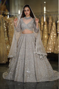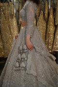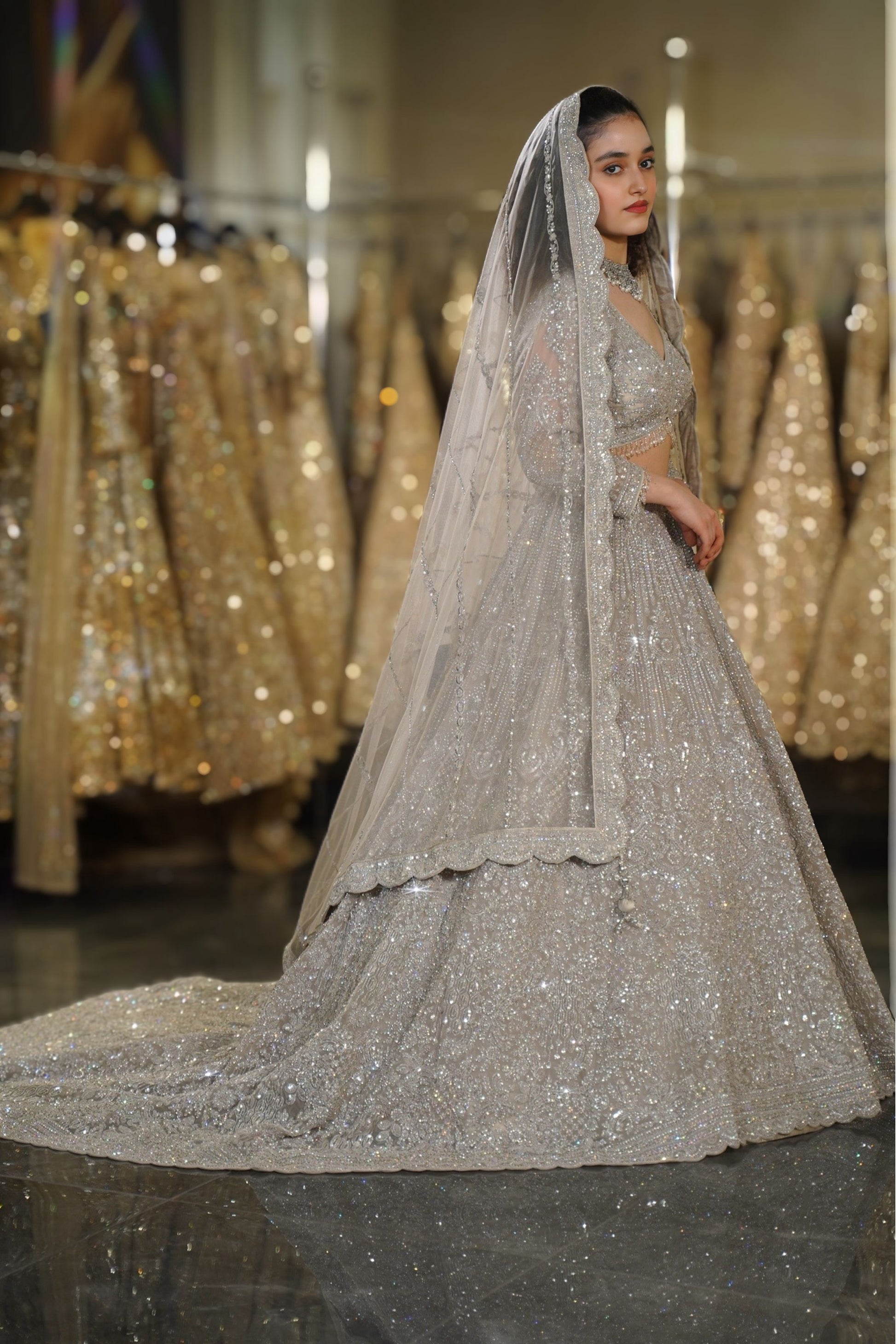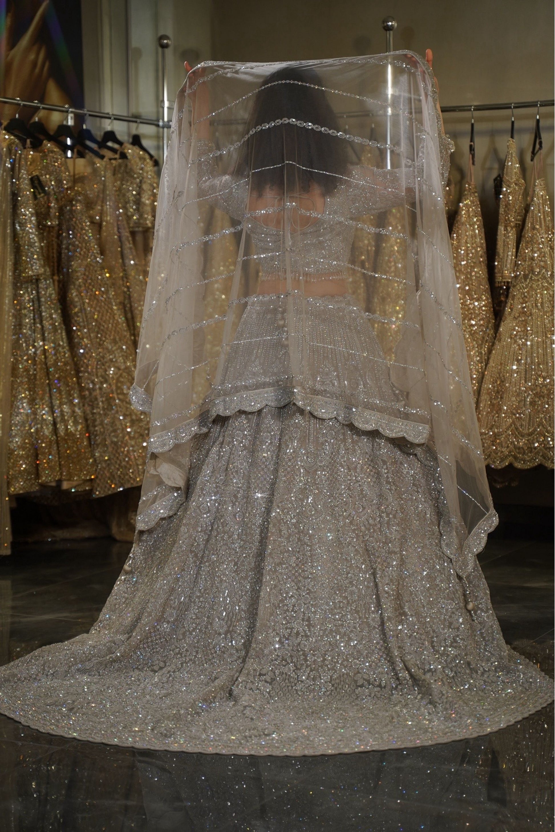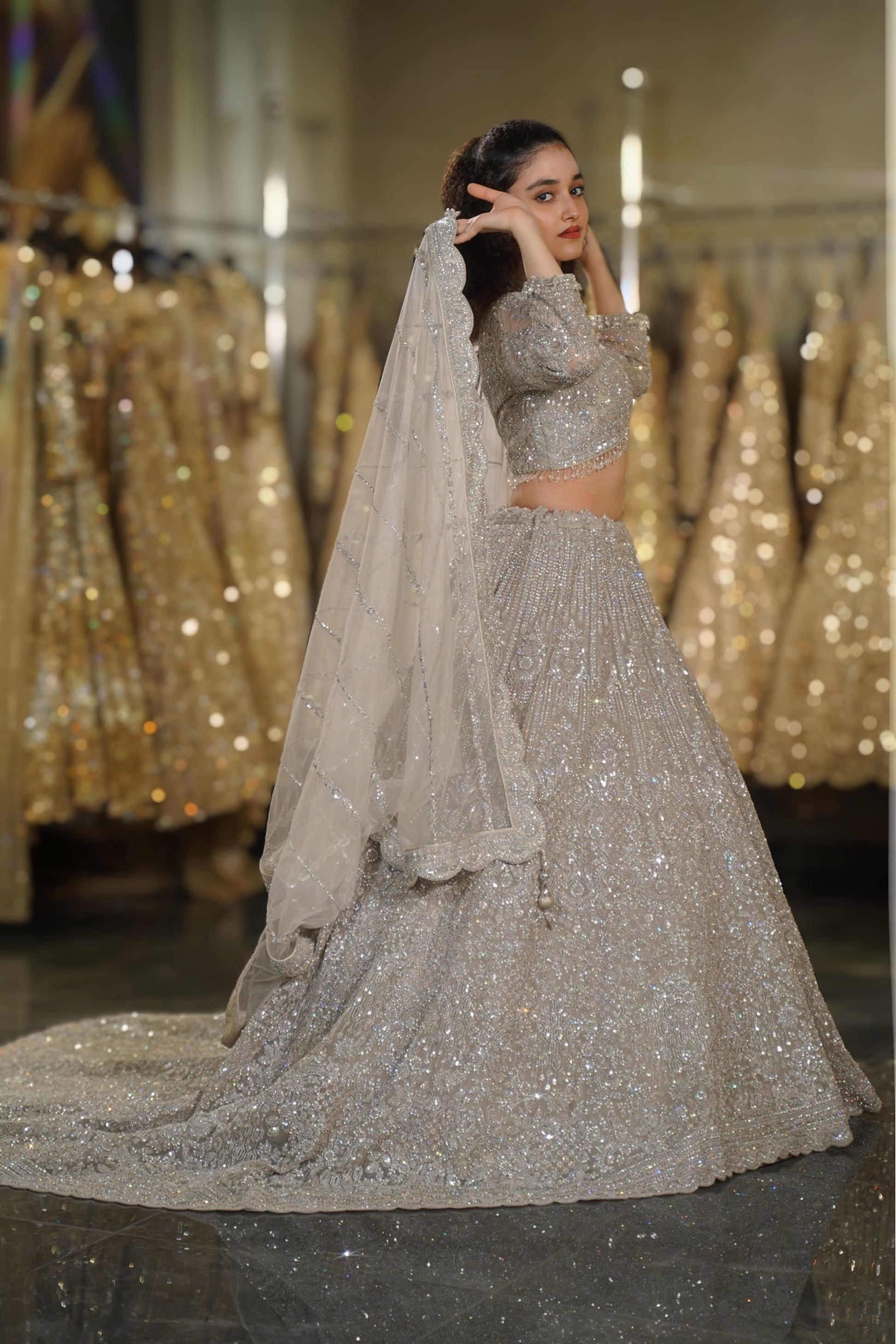 Platinum Silver Crystal & Linear Sequin Embroidered Lehenga Set