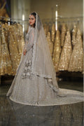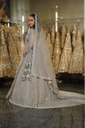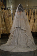 | Dupatta | Sheer silver net dupatta with a heavy scalloped embroidered border |