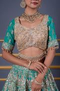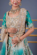 Seafoam Green & Beige Ombre Embroidered Bridal Lehenga